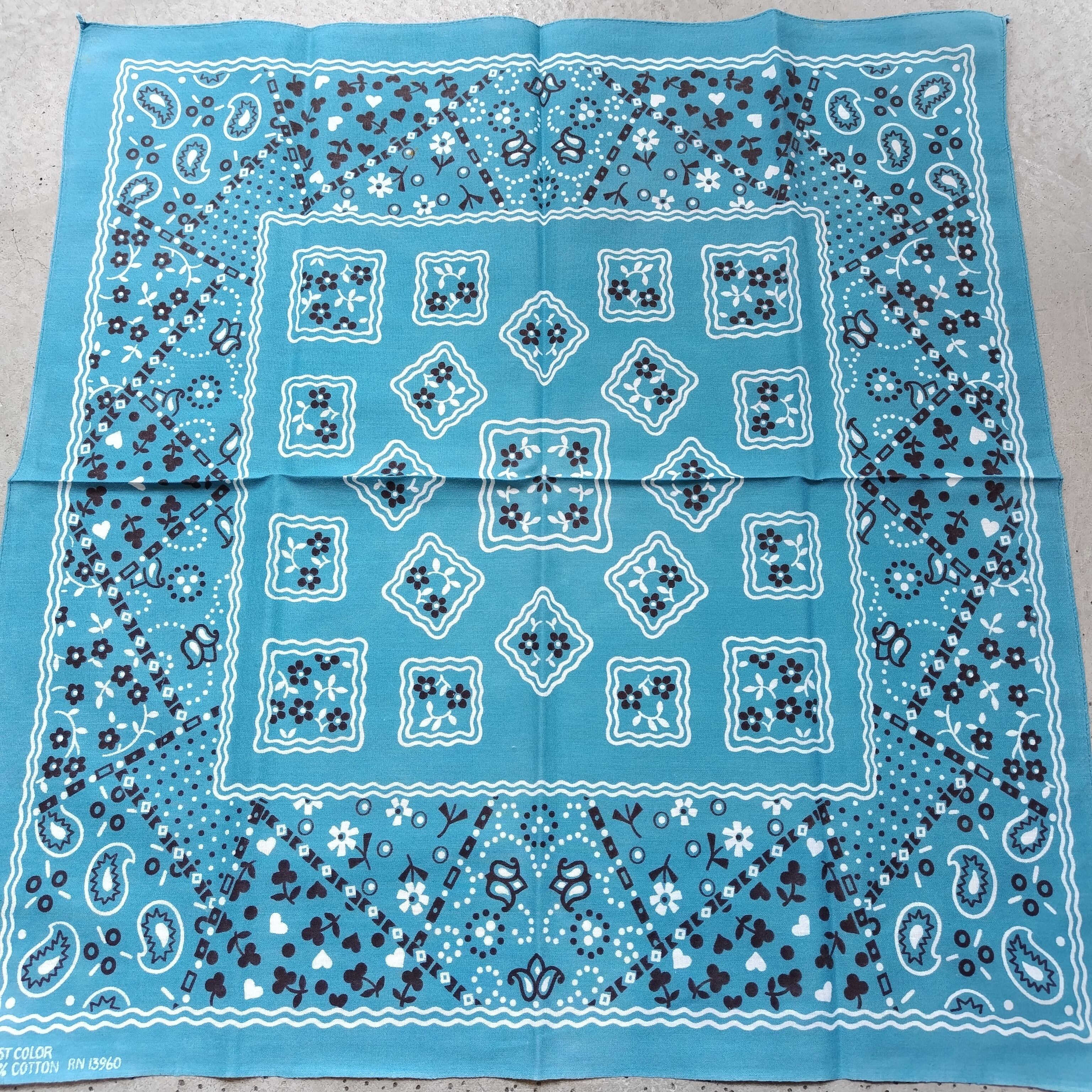 ライトターコイズ 70s ビンテージ クッキーバンダナ