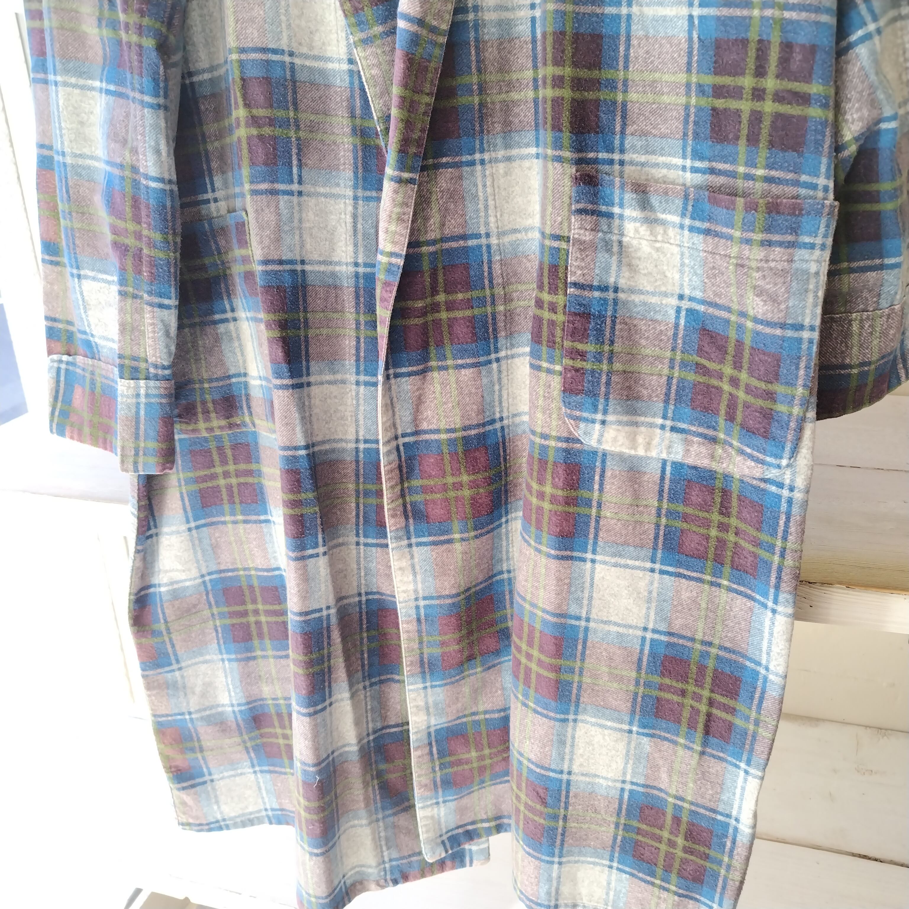 洗いこんだ感、裏地に若干シミがございますが表にはほぼみえません。雰囲気のいいネルガウンになります!!