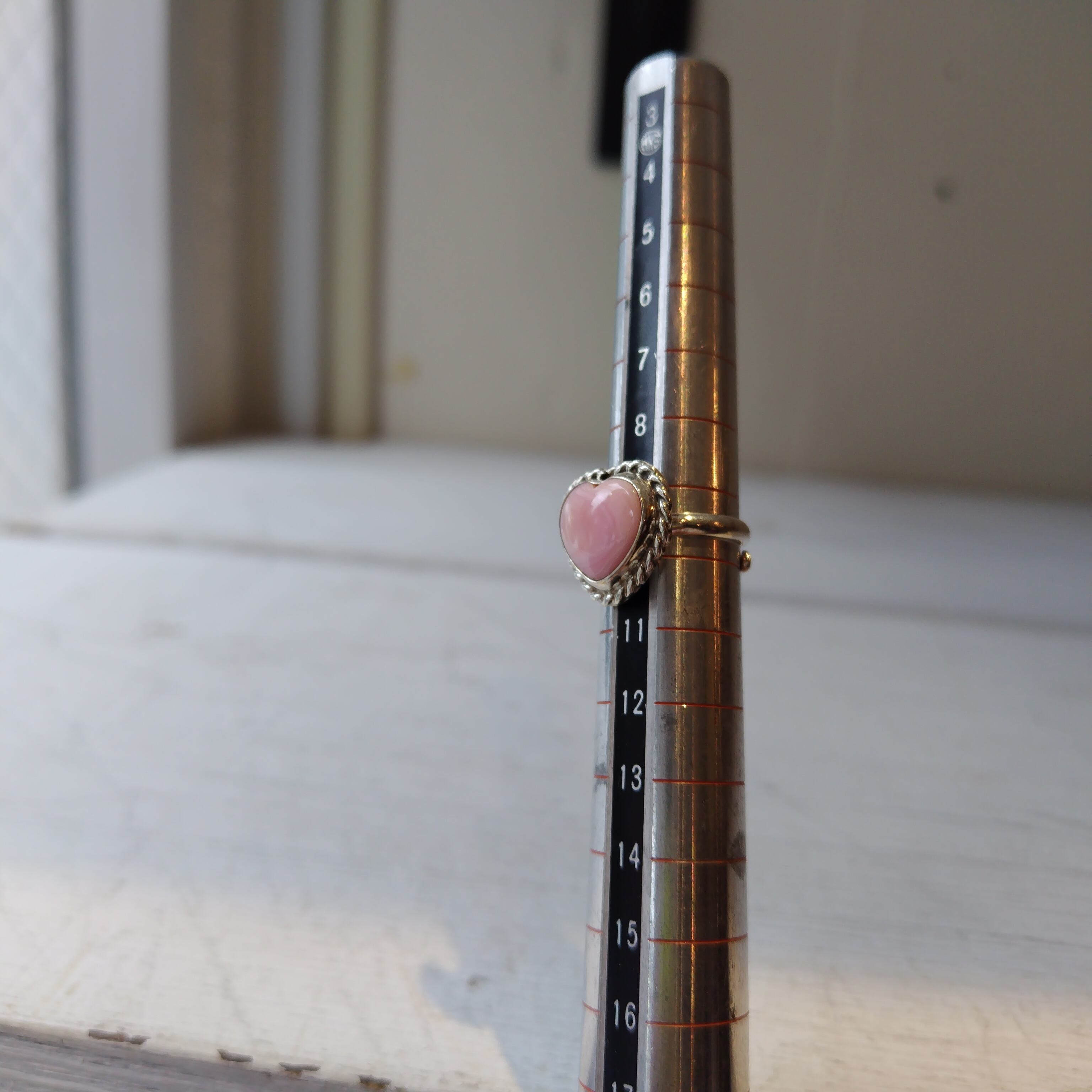 素晴らしい雰囲気の ナバホ PINK CONCH SHELL シルバー ハートリングになります!