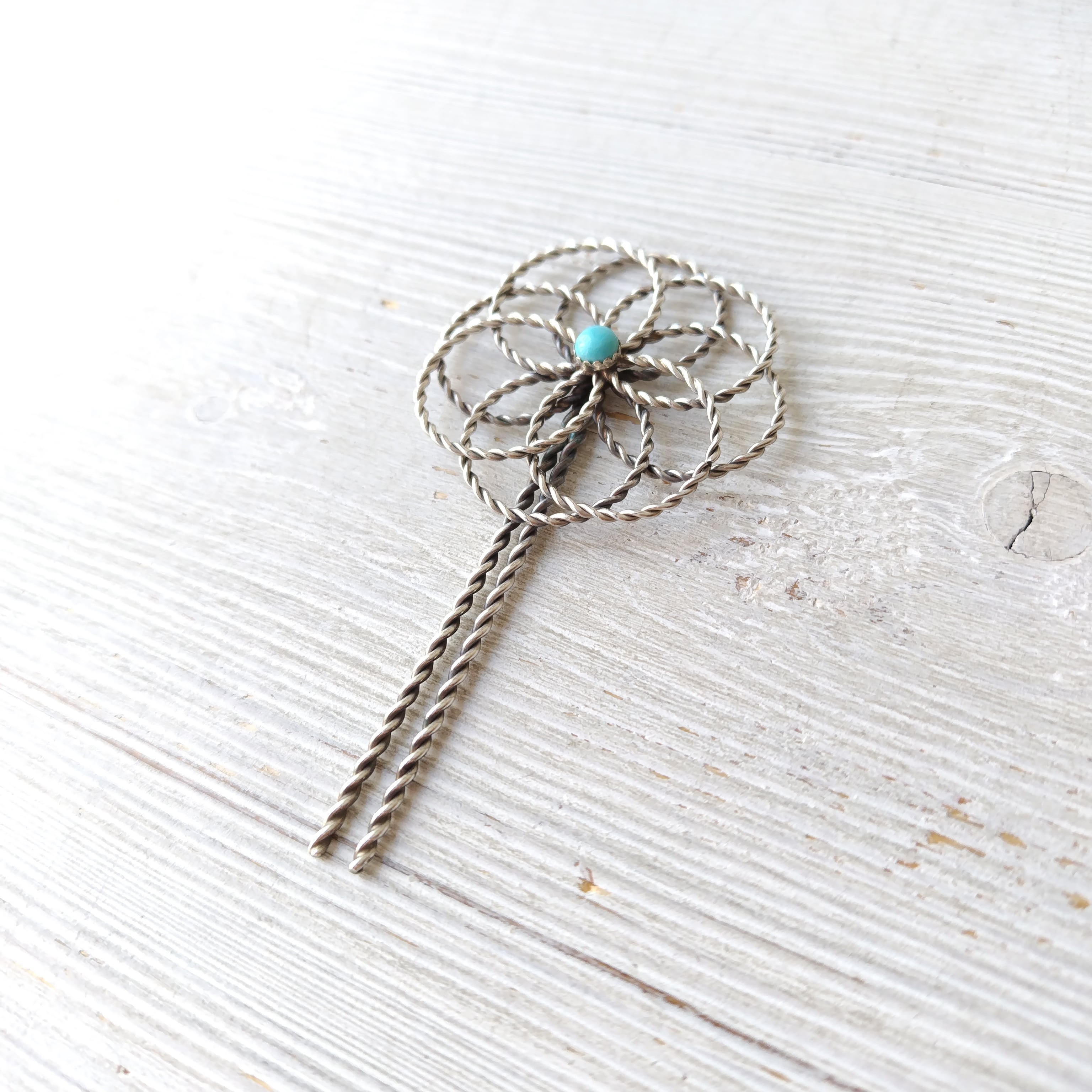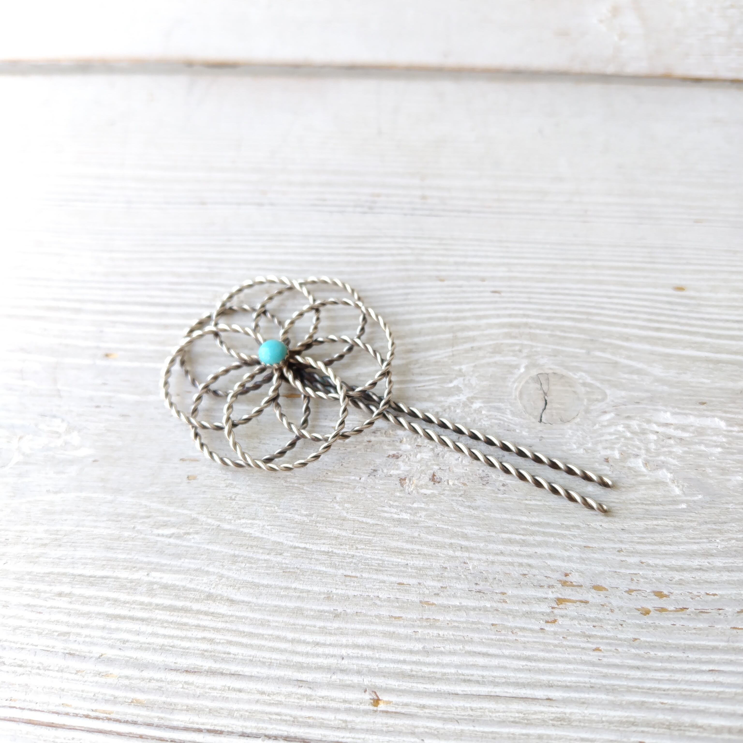ナバホ ターコイズ シルバー 2本足かんざし インディアンジュエリー