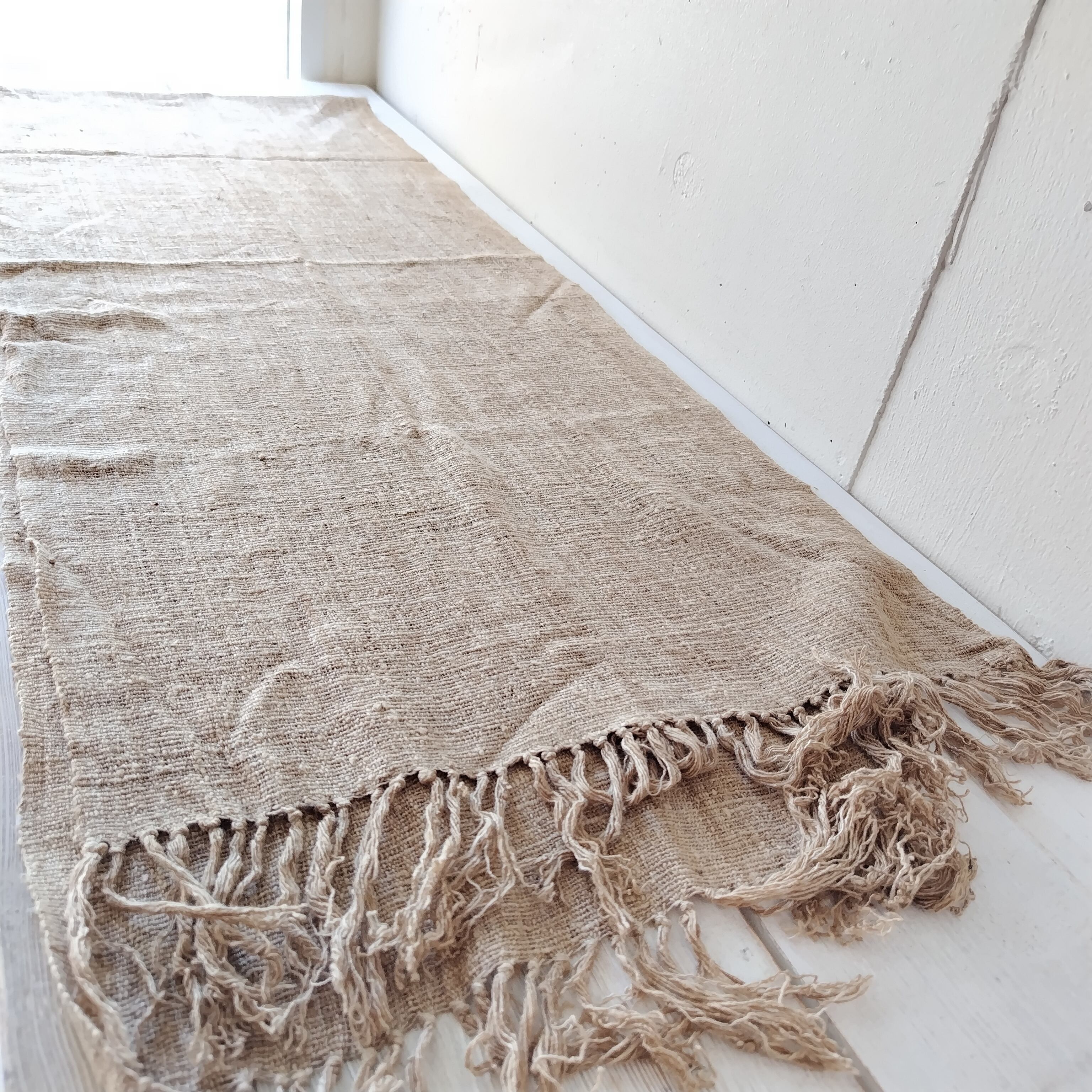 品種改良された家蚕と違い野生の蚕[野蚕]の繭を集めて手作業で紡績後、手織でストールに仕上げています。
