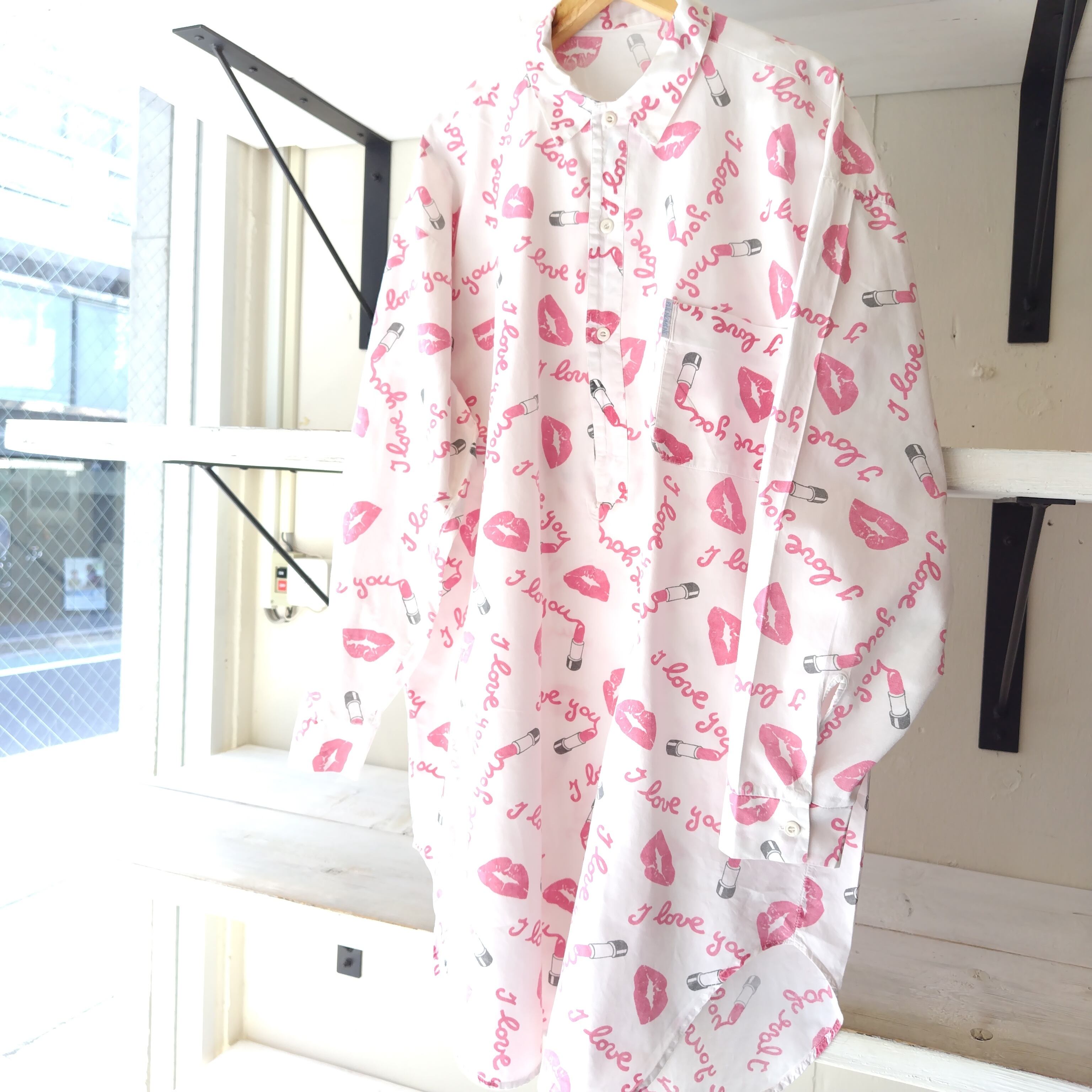 雰囲気、デザインのいいリップ柄 プルオーバーロングシャツになります!
