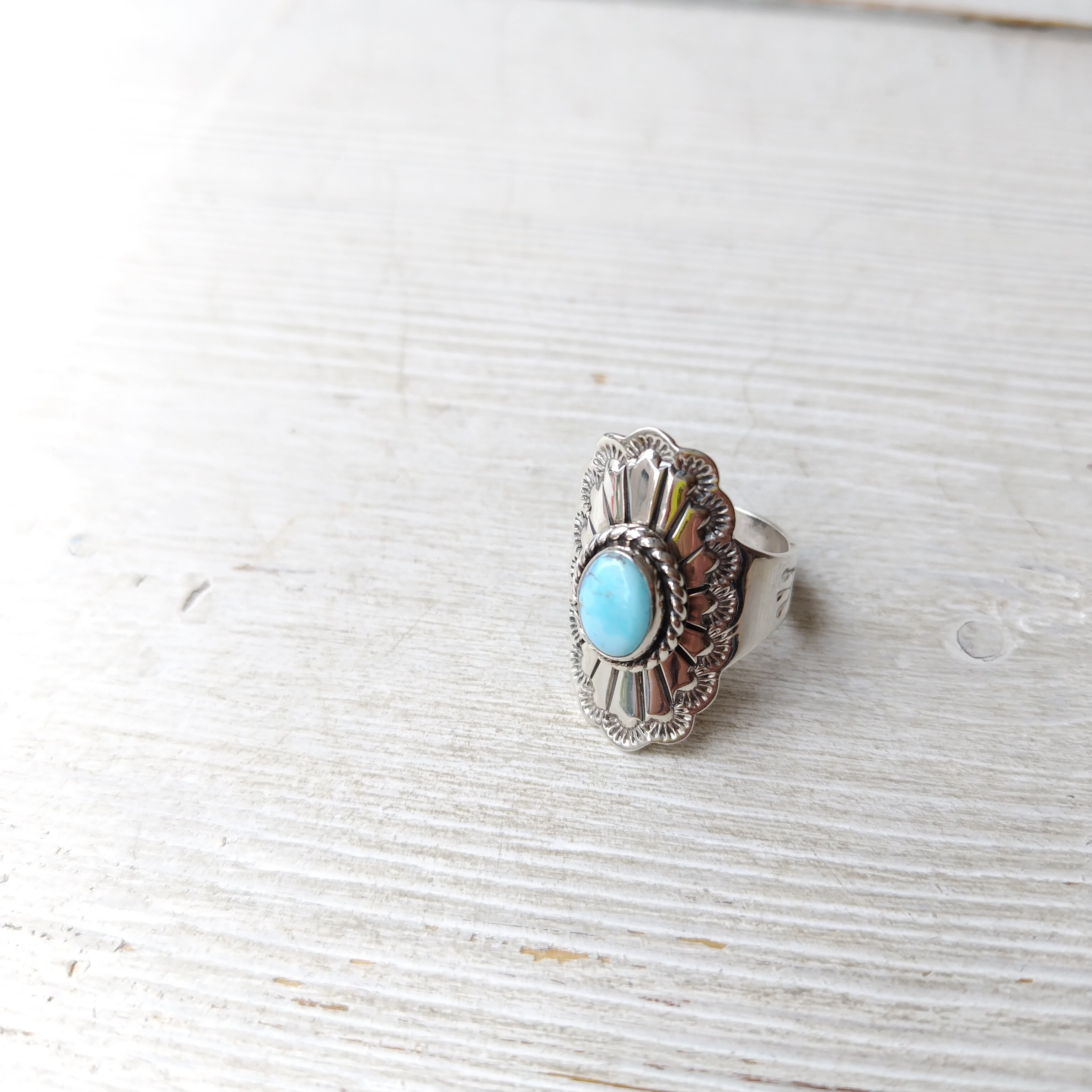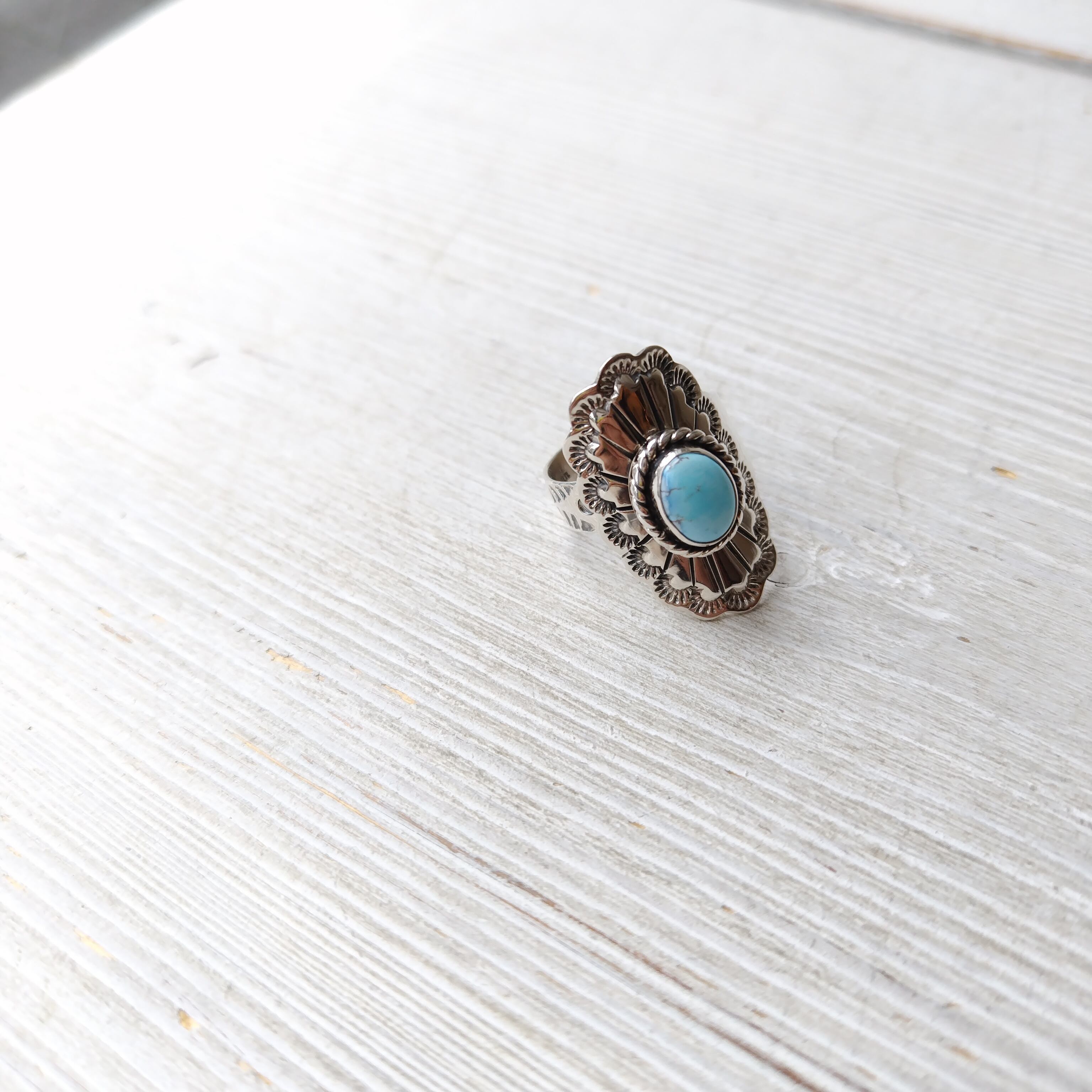 12号前後フリーサイズ ナバホ GOLDENHILL Turquoise シルバーリング インディアンジュエリー