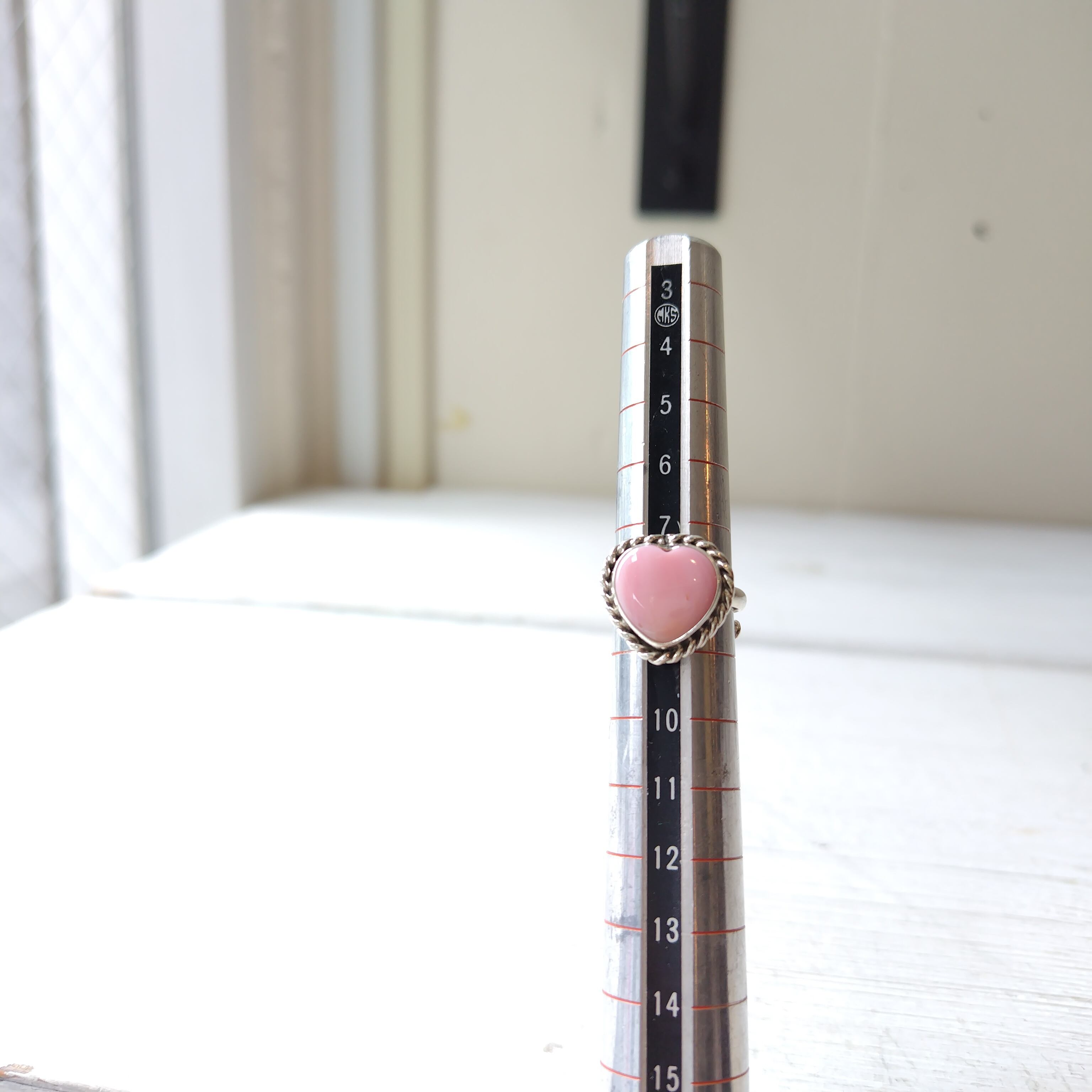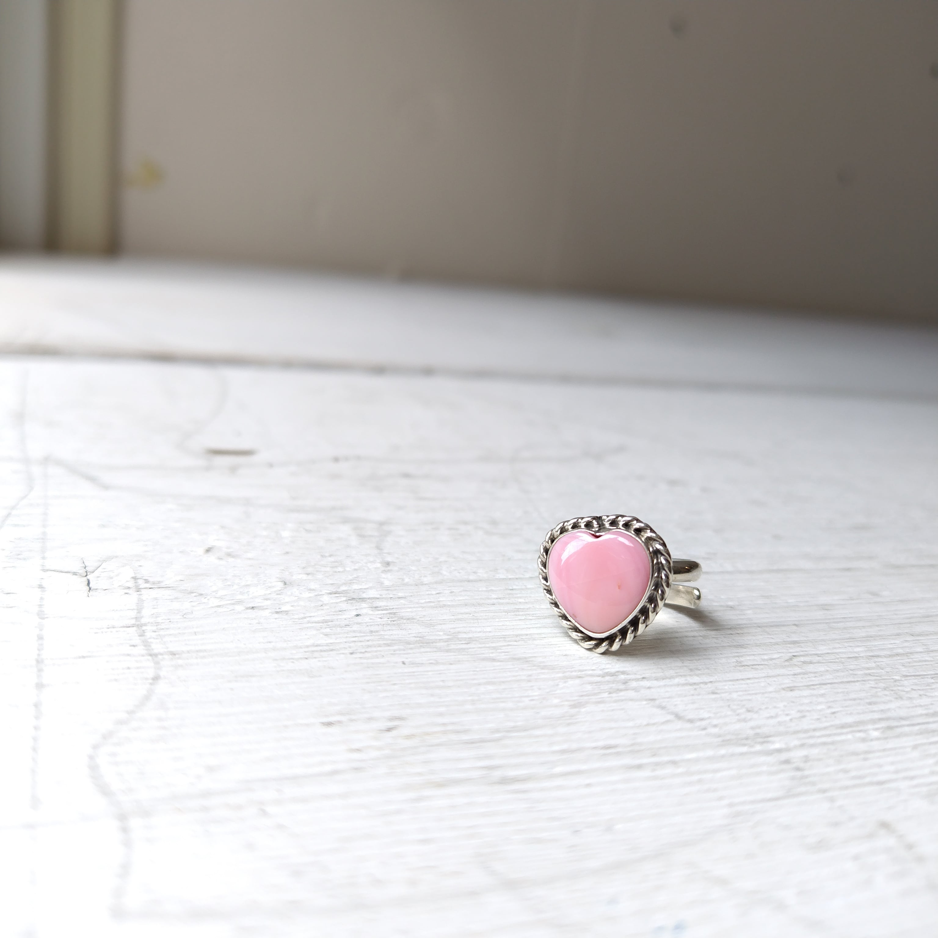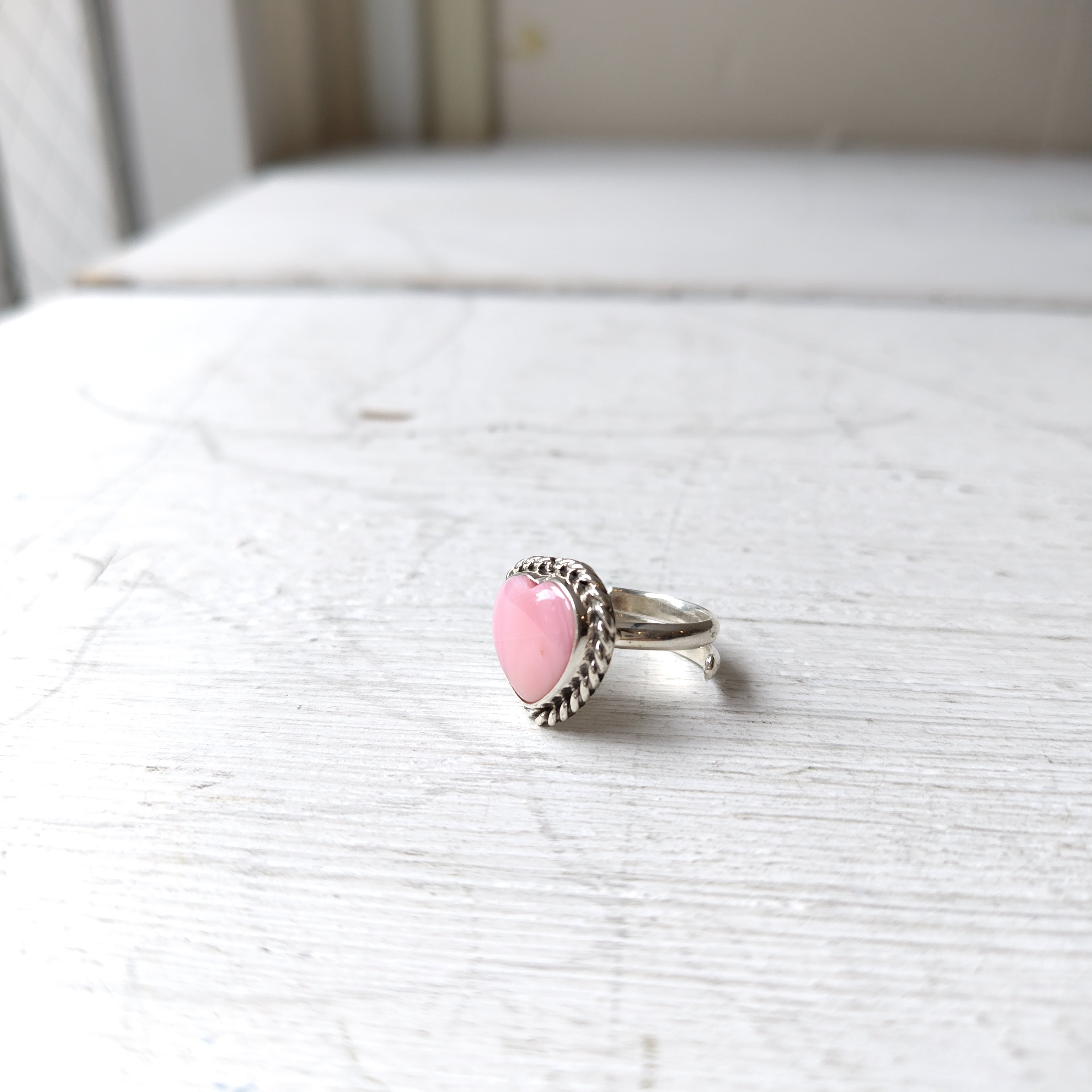 素晴らしい雰囲気の ナバホ PINK CONCH SHELL シルバー ハートリングになります!