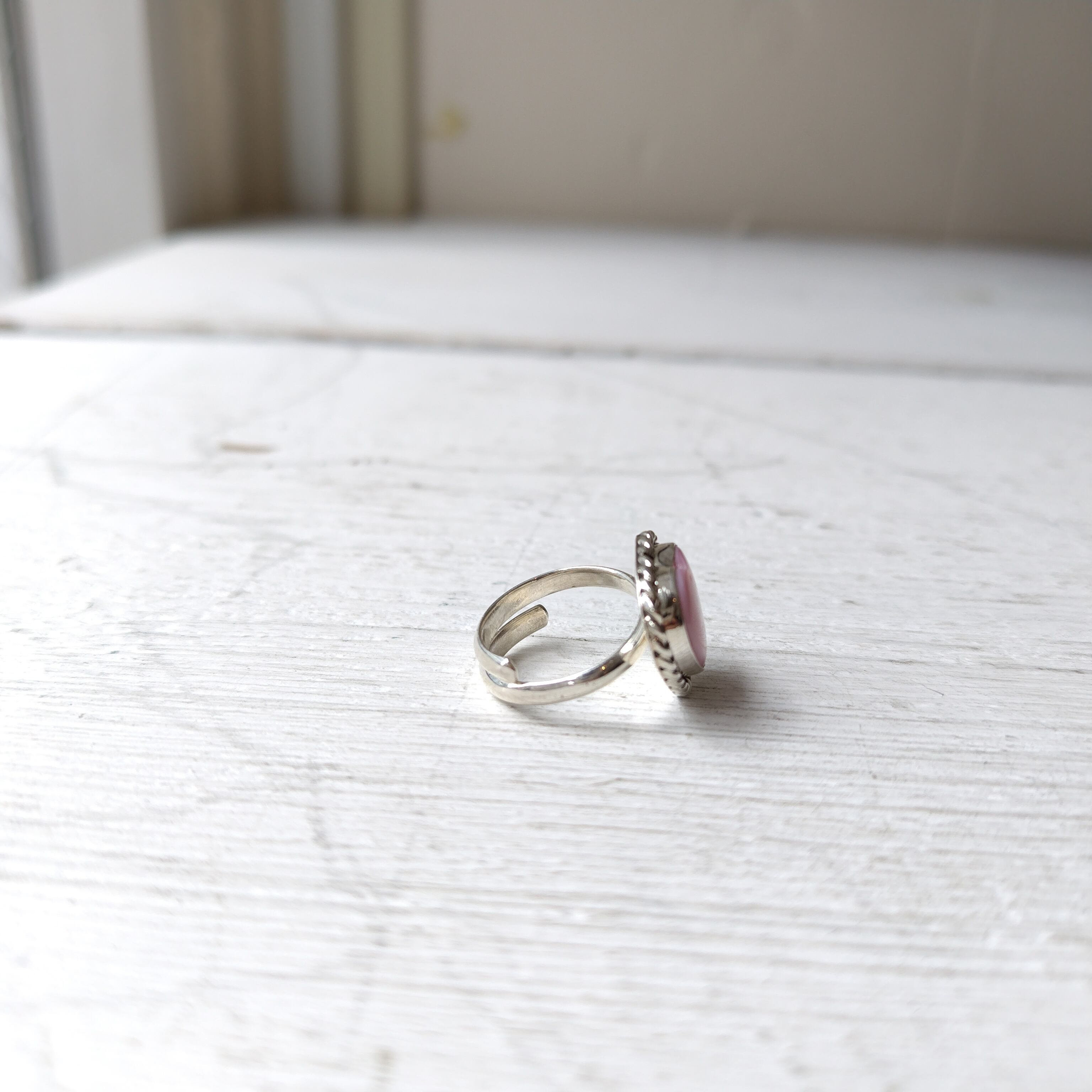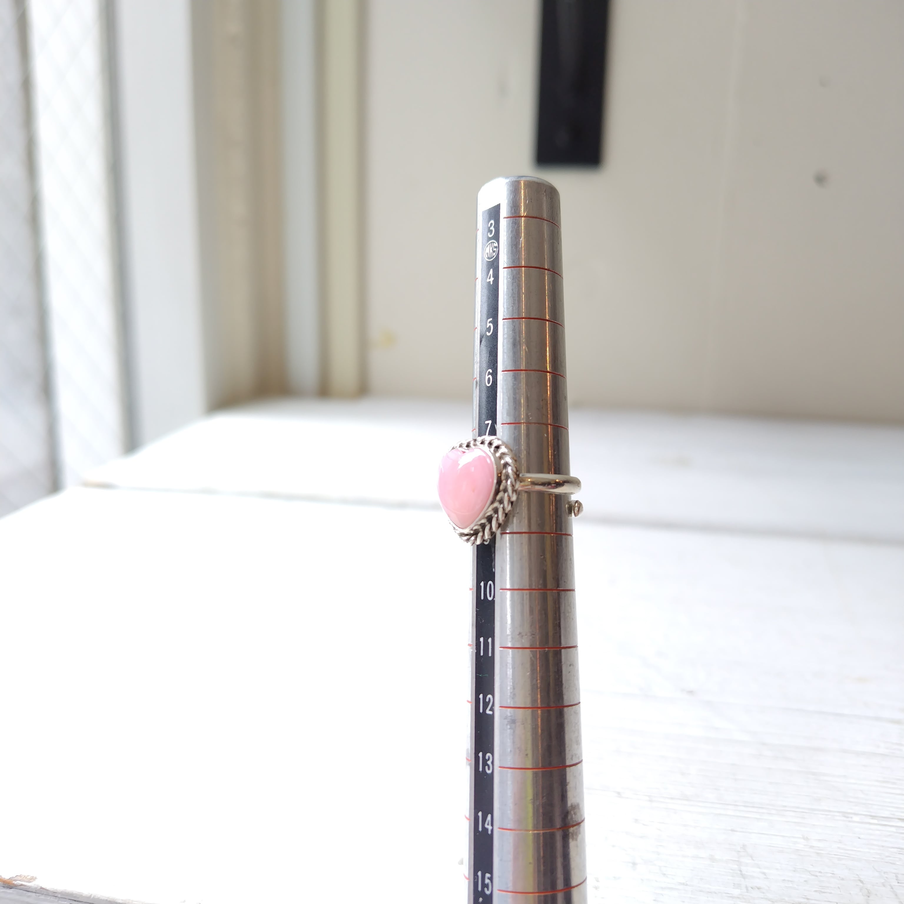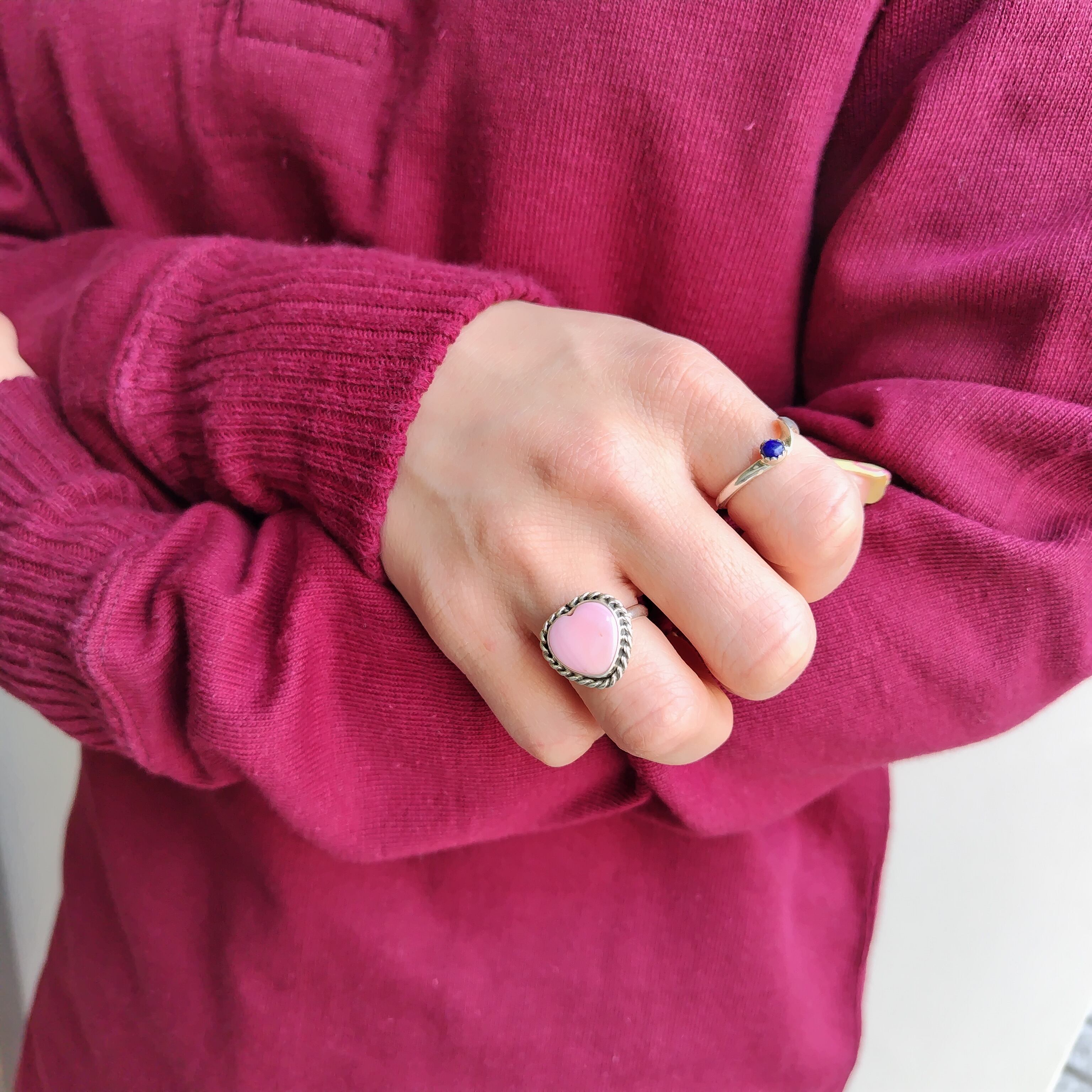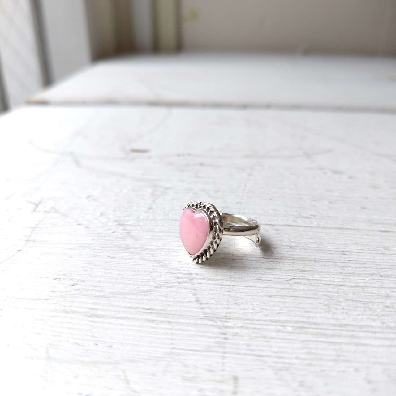素晴らしい雰囲気の ナバホ PINK CONCH SHELL シルバー ハートリングになります!
