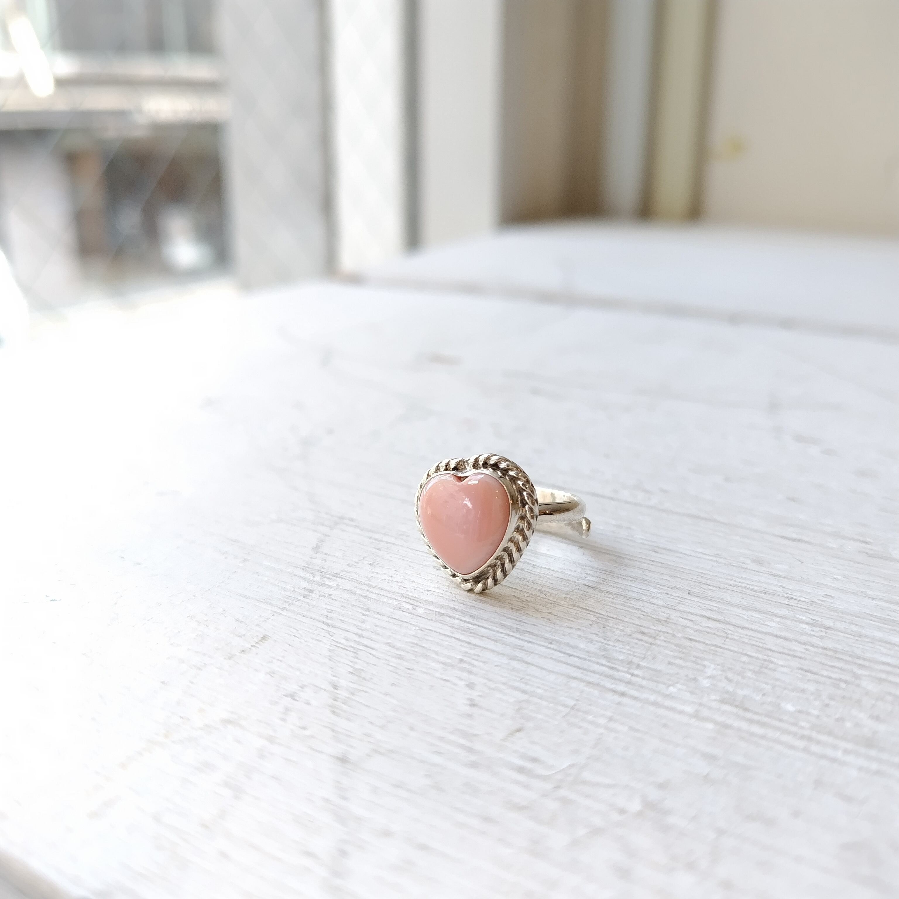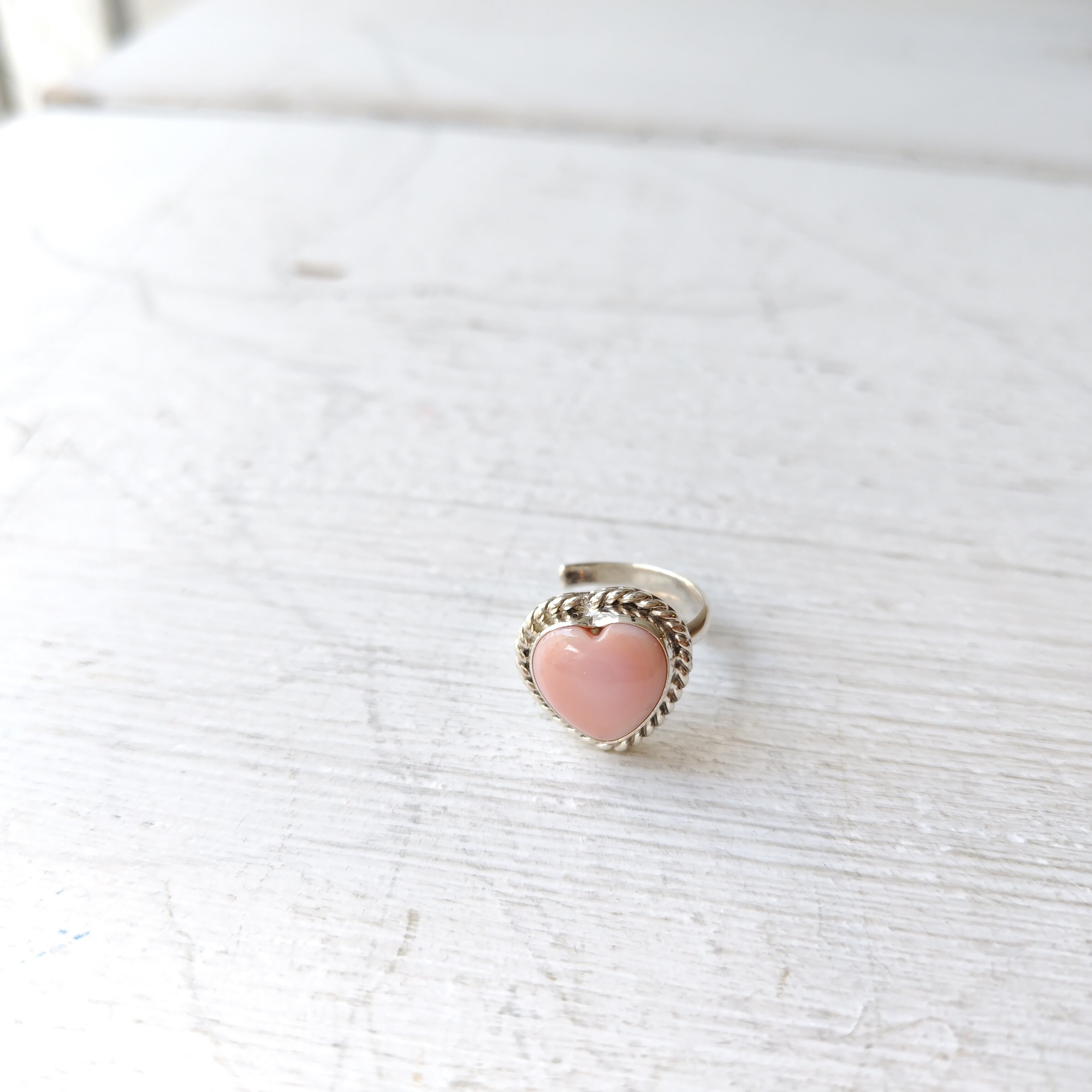 素晴らしい雰囲気の ナバホ PINK CONCH SHELL ハート シルバーリングになります!