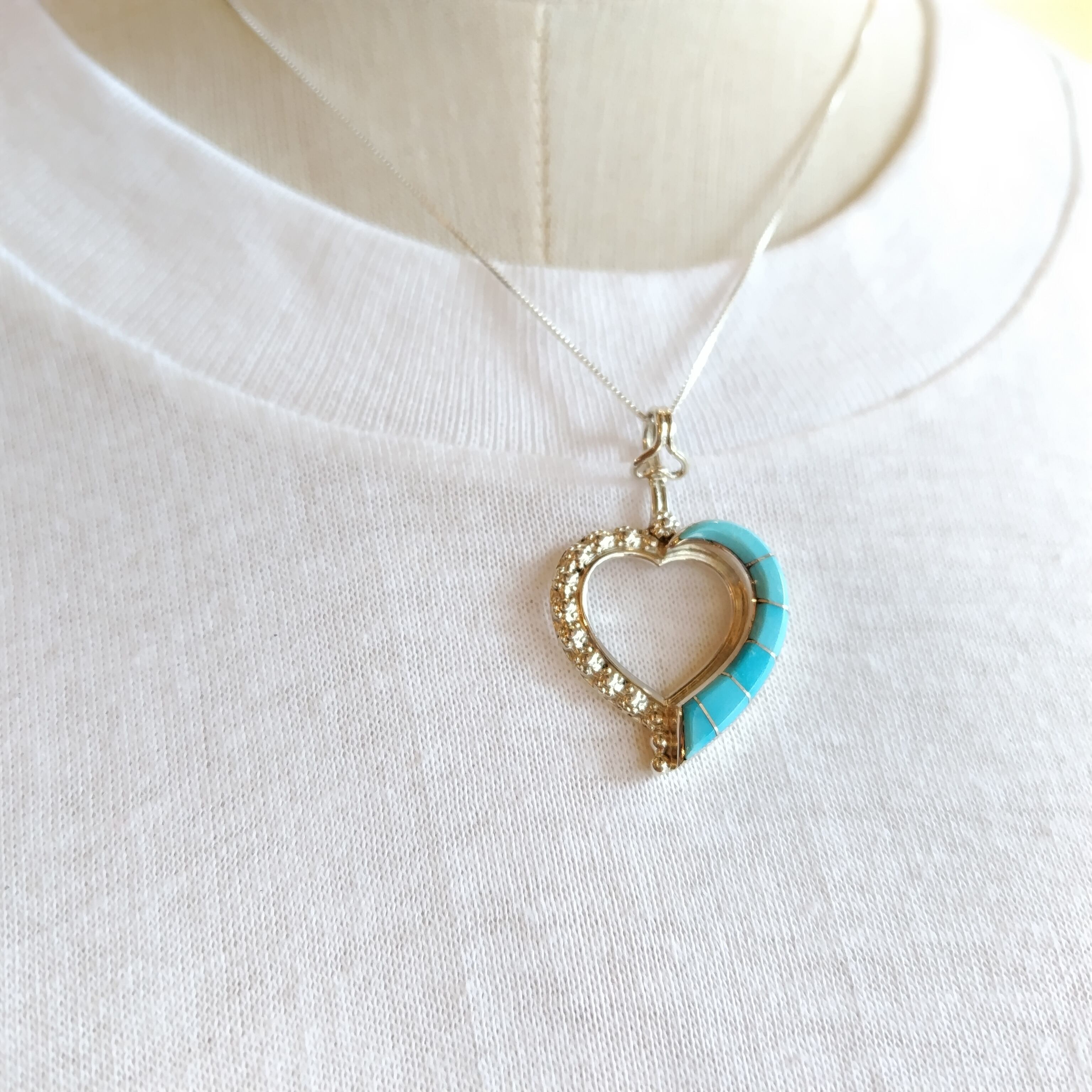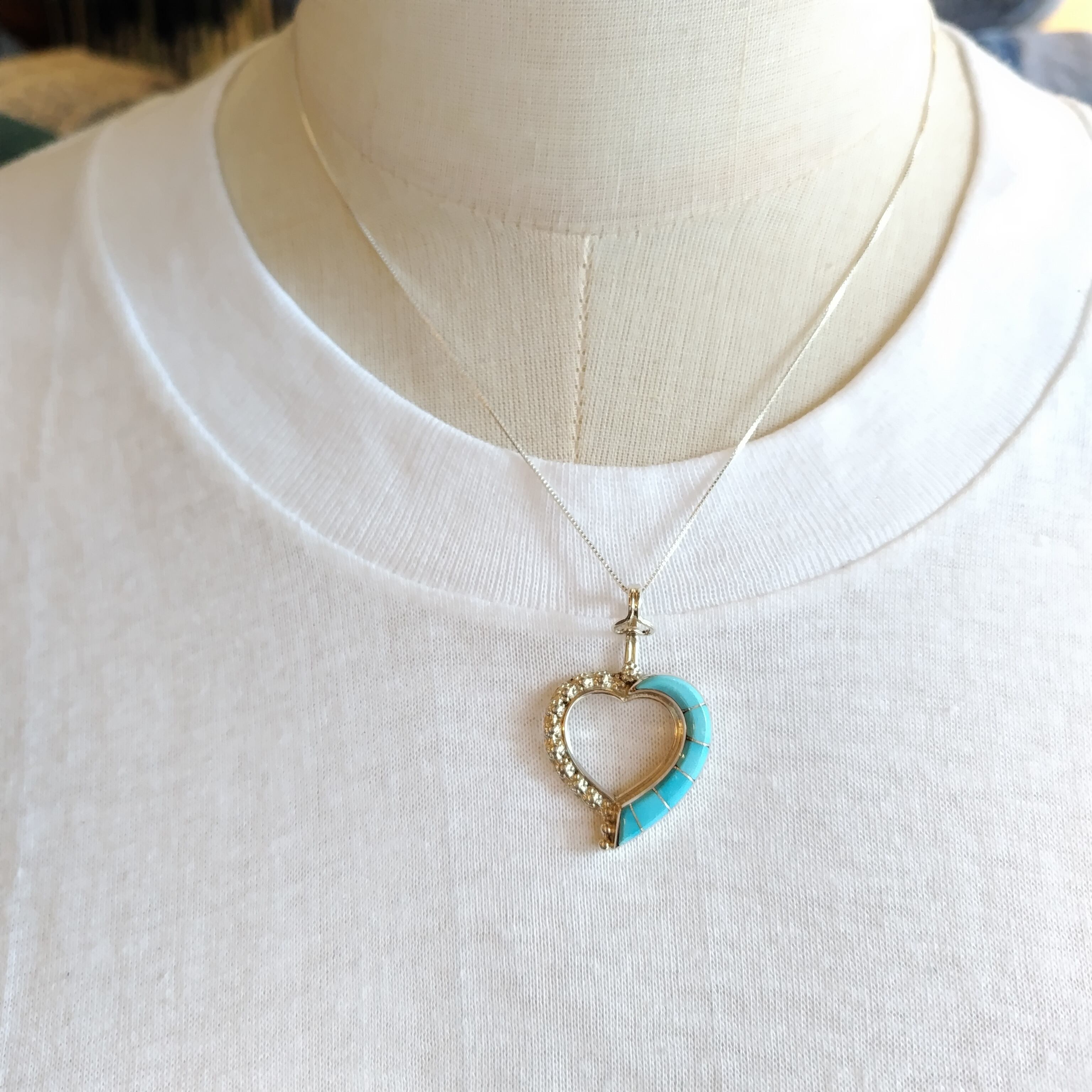 ZUNI インレイ ハート シルバーネックレス インディアンジュエリー
