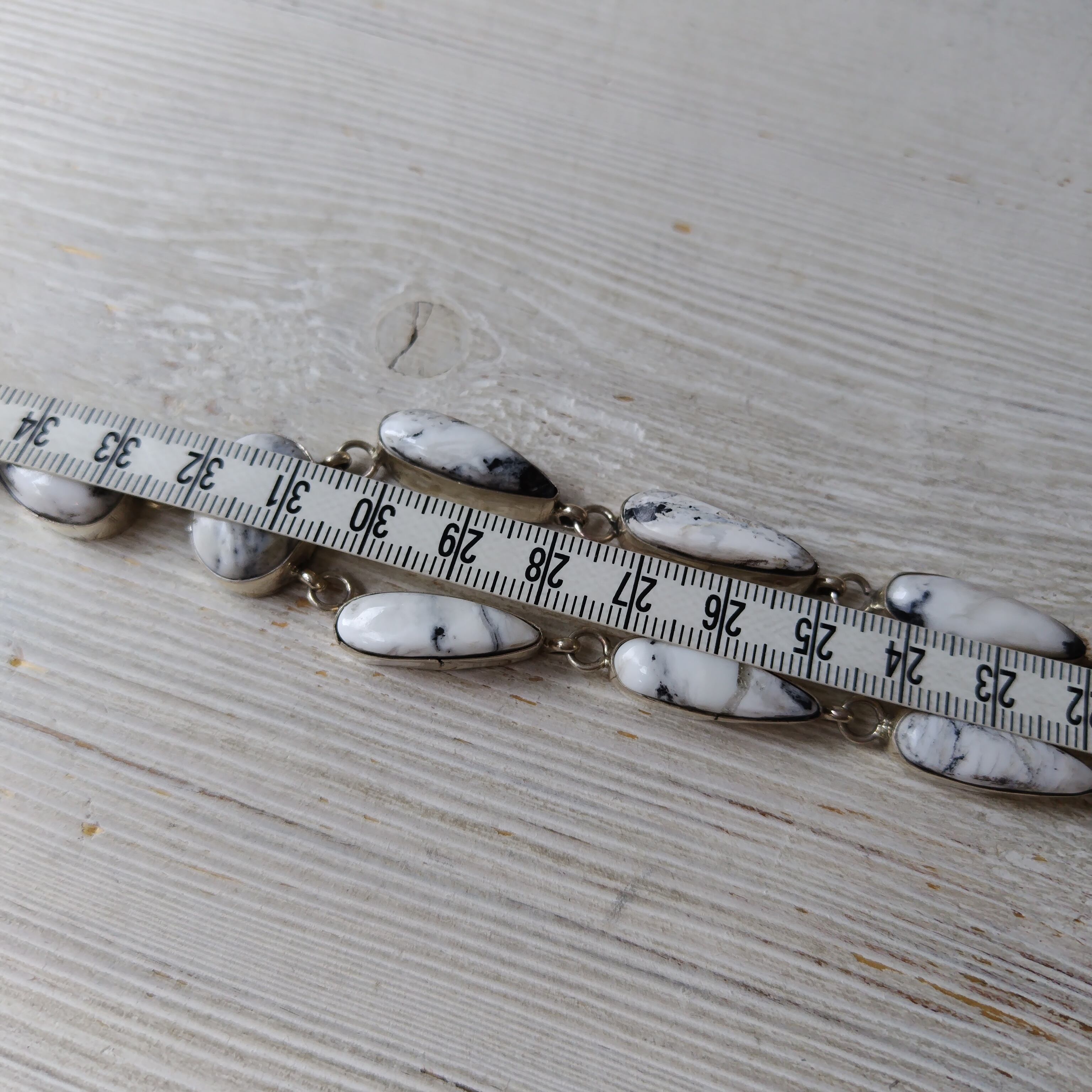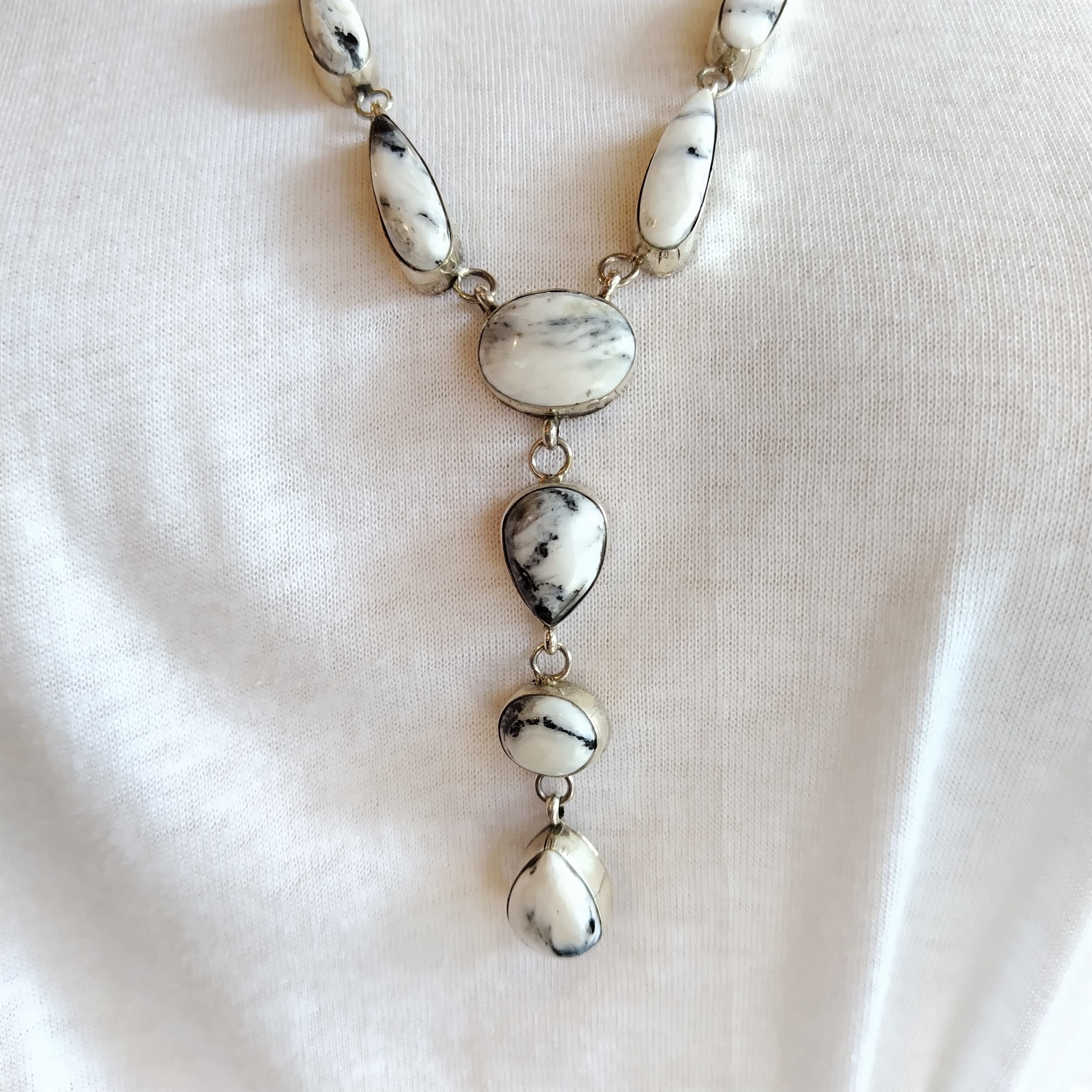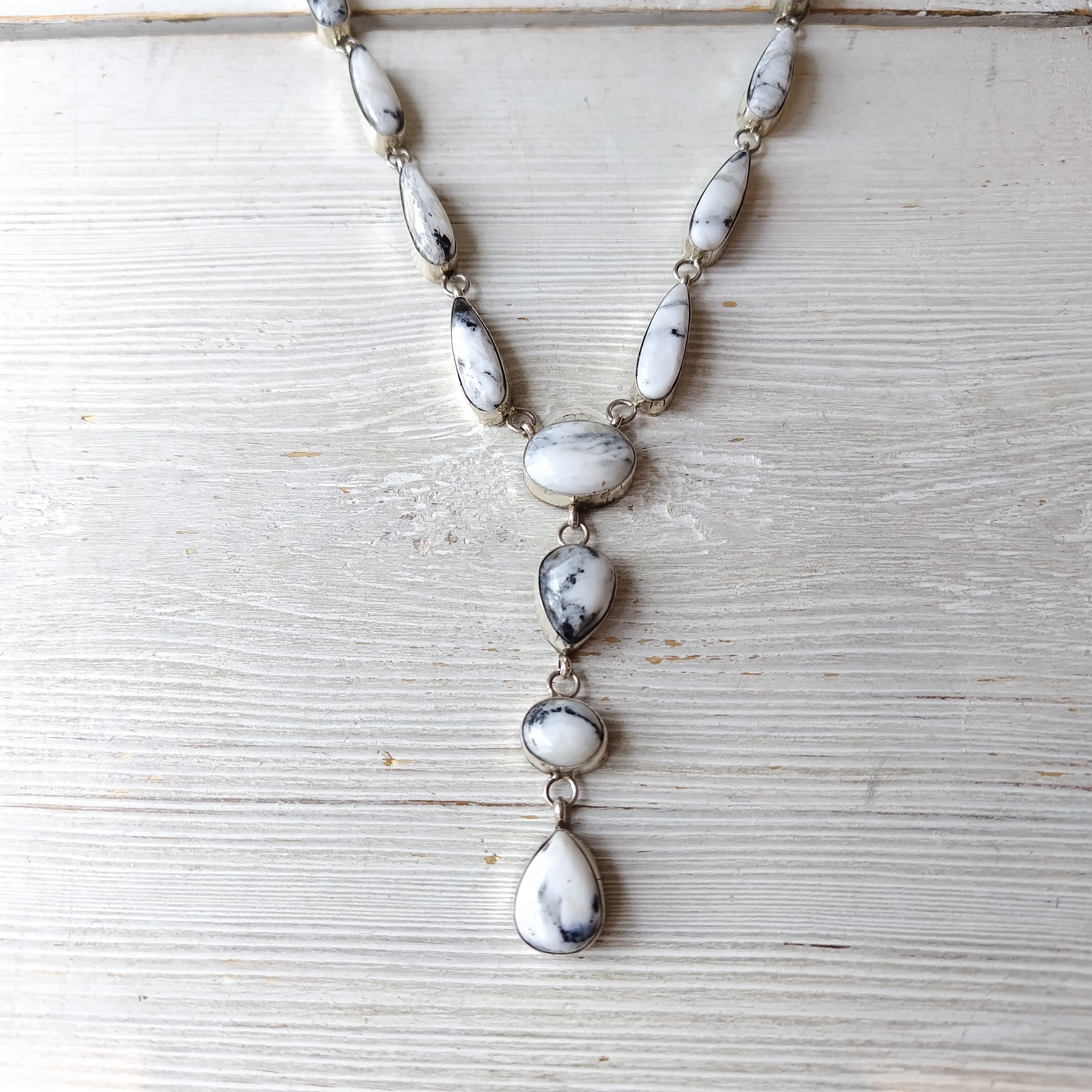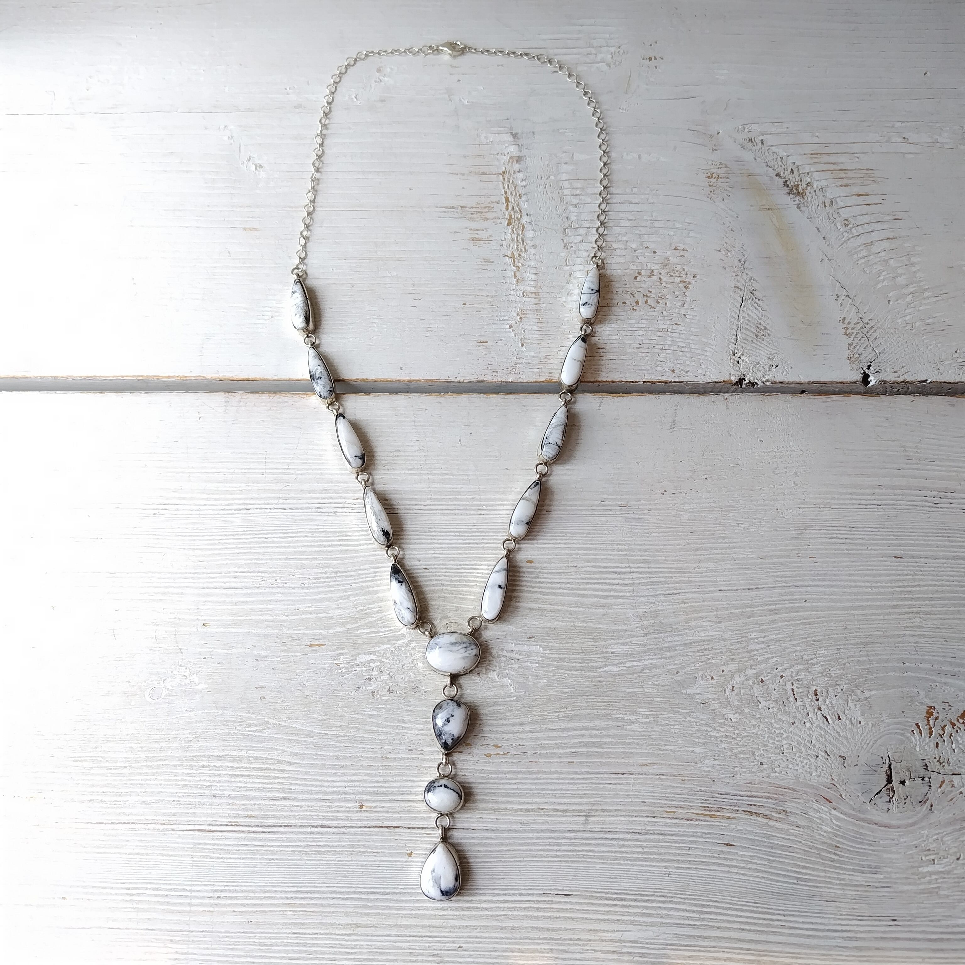 ナバホ ホワイトバッファロー シルバーネックレス Yスタイル 61cm + 8cm 90s デッドストック インディアンジュエリー