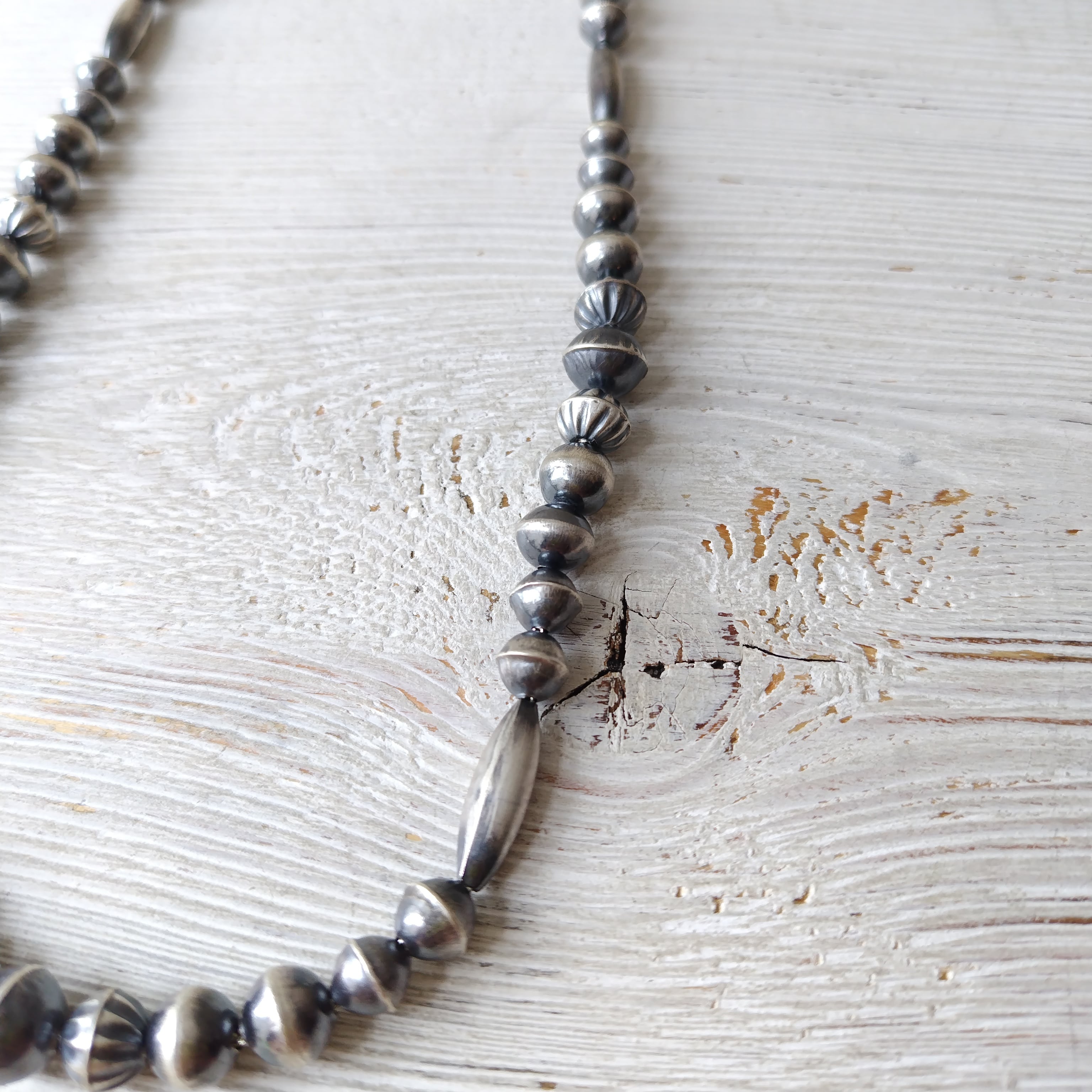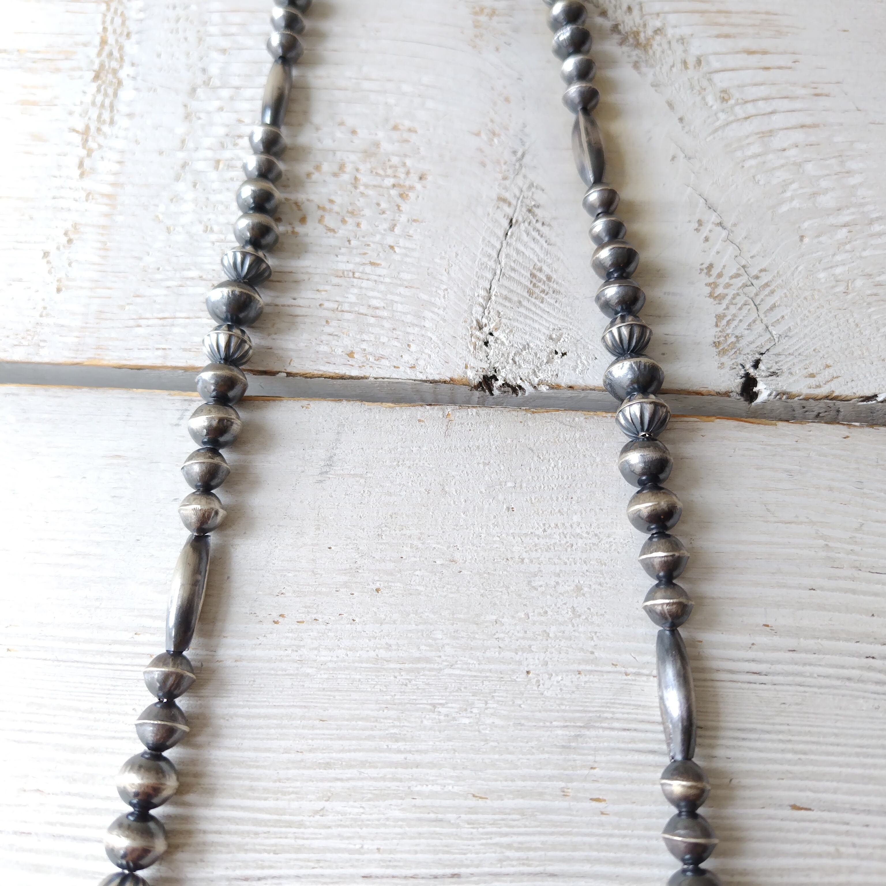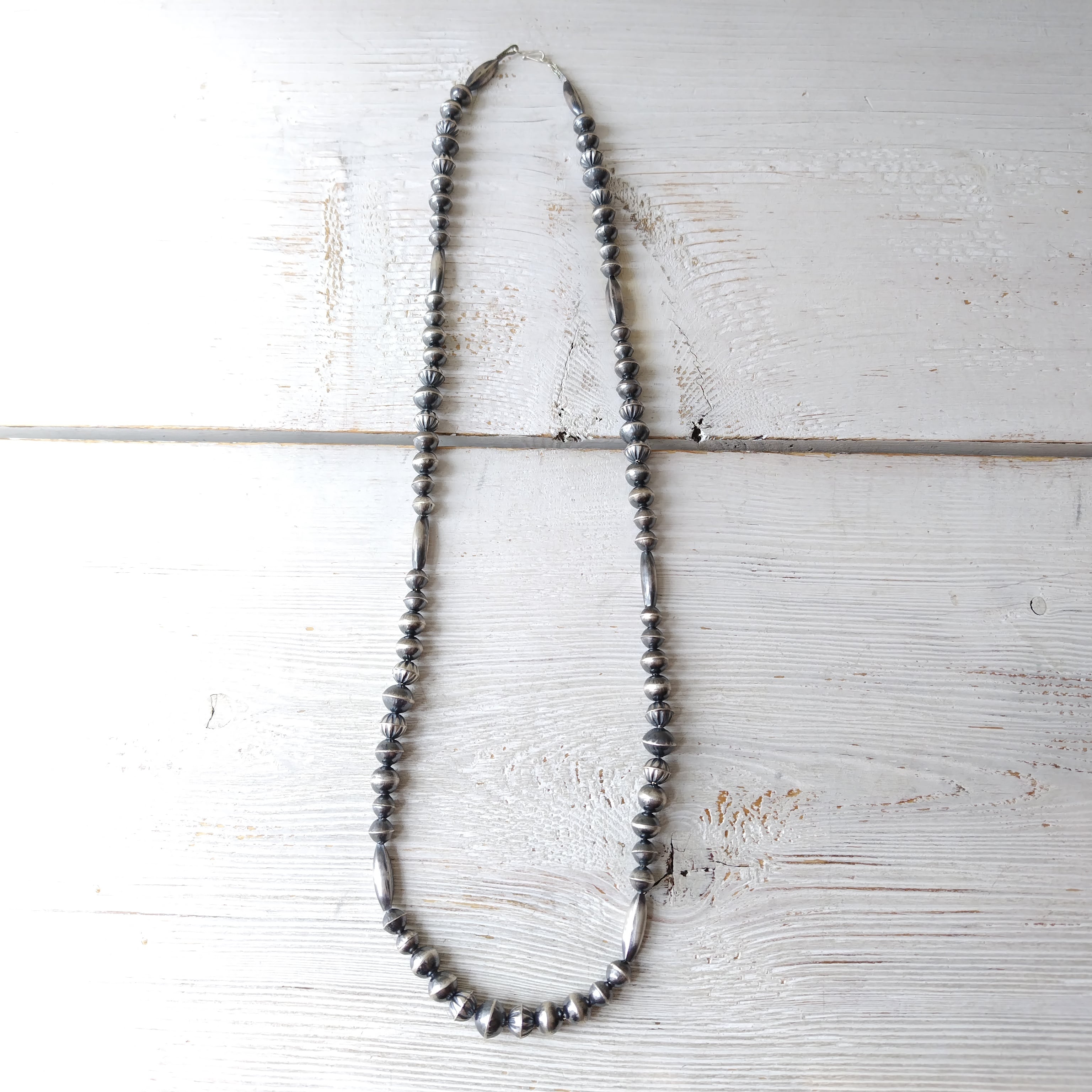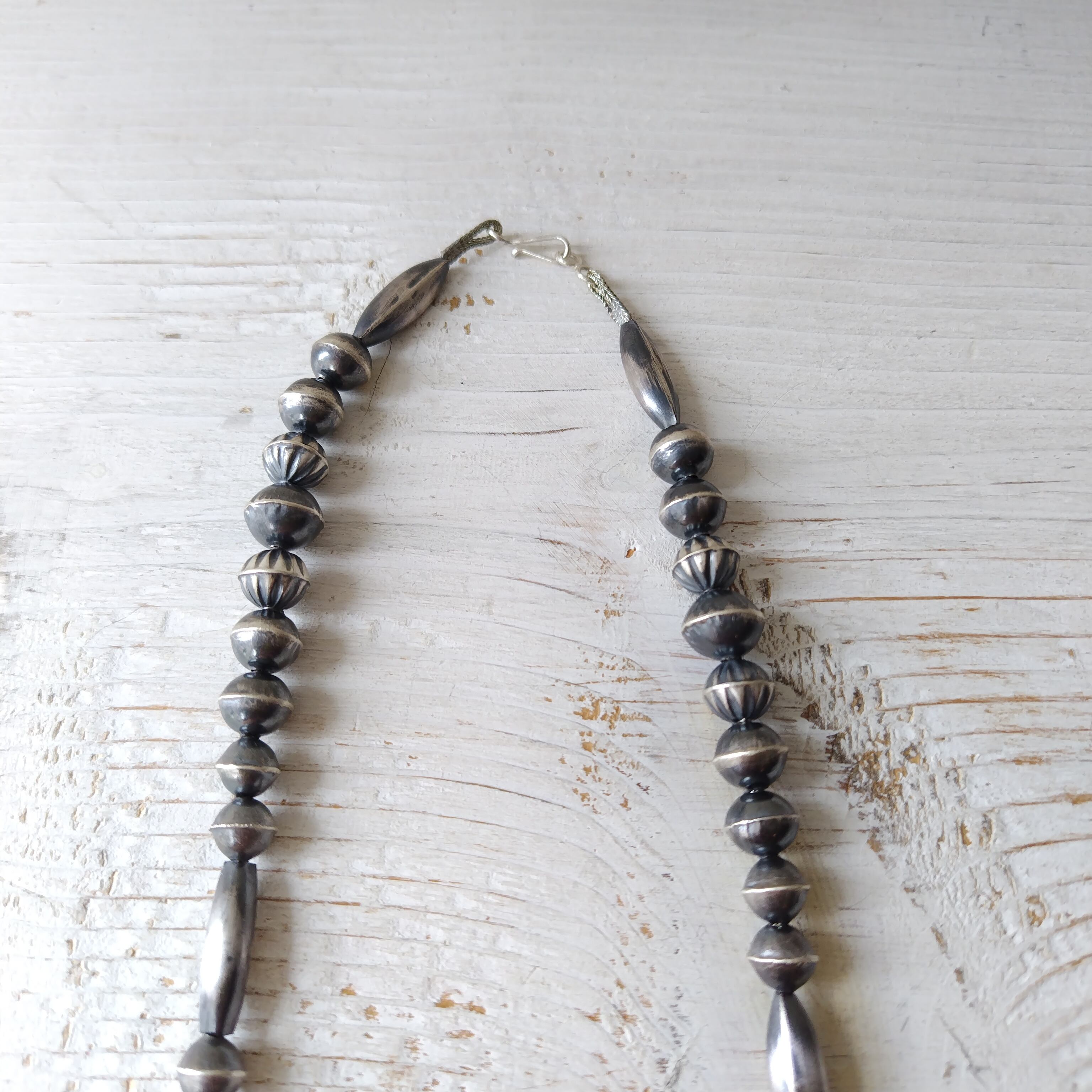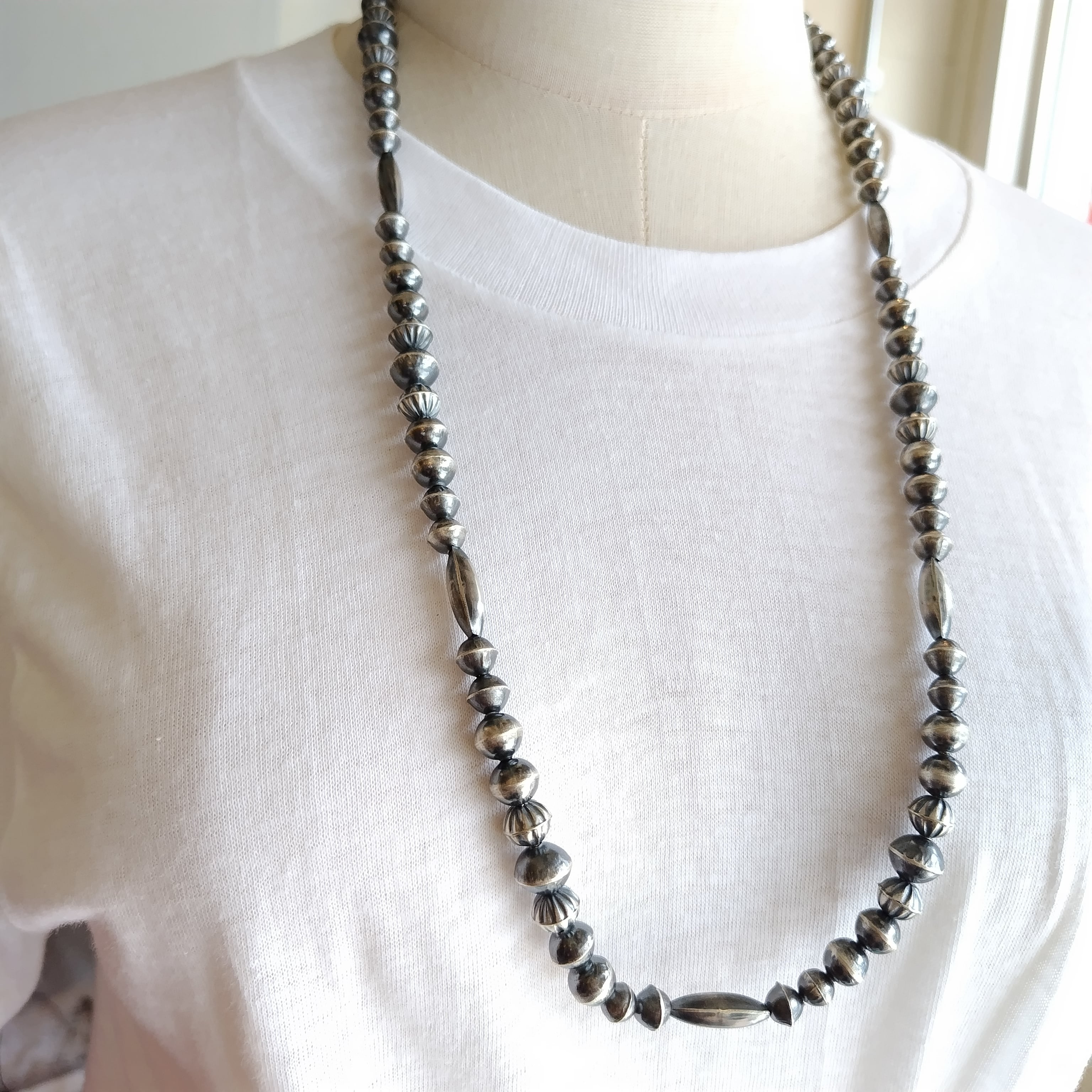 75cm 70s ビンテージ ナバホ シルバービーズネックレス インディアンジュエリー