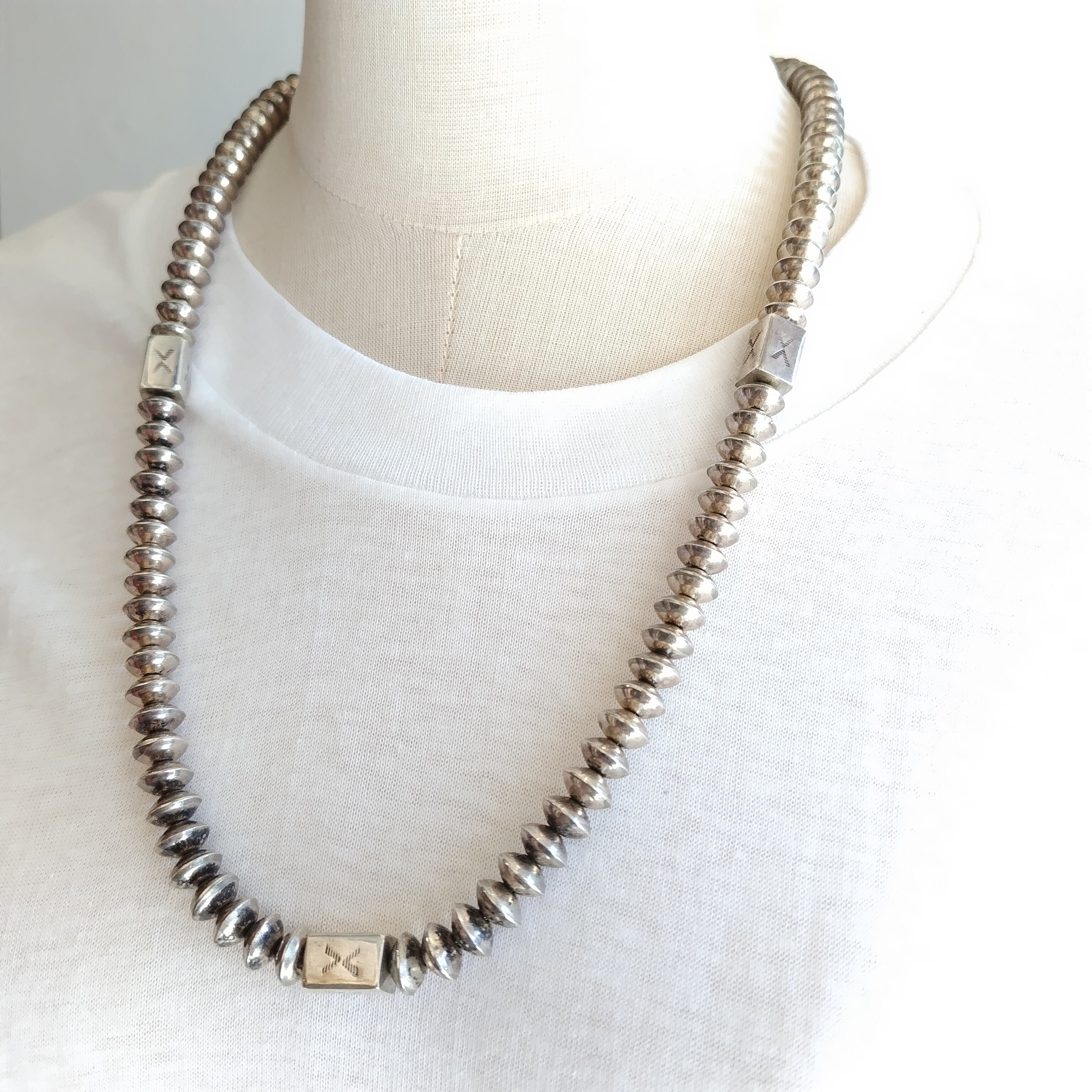 65cm 80s ナバホ シルバービーズネックレス インディアンジュエリー