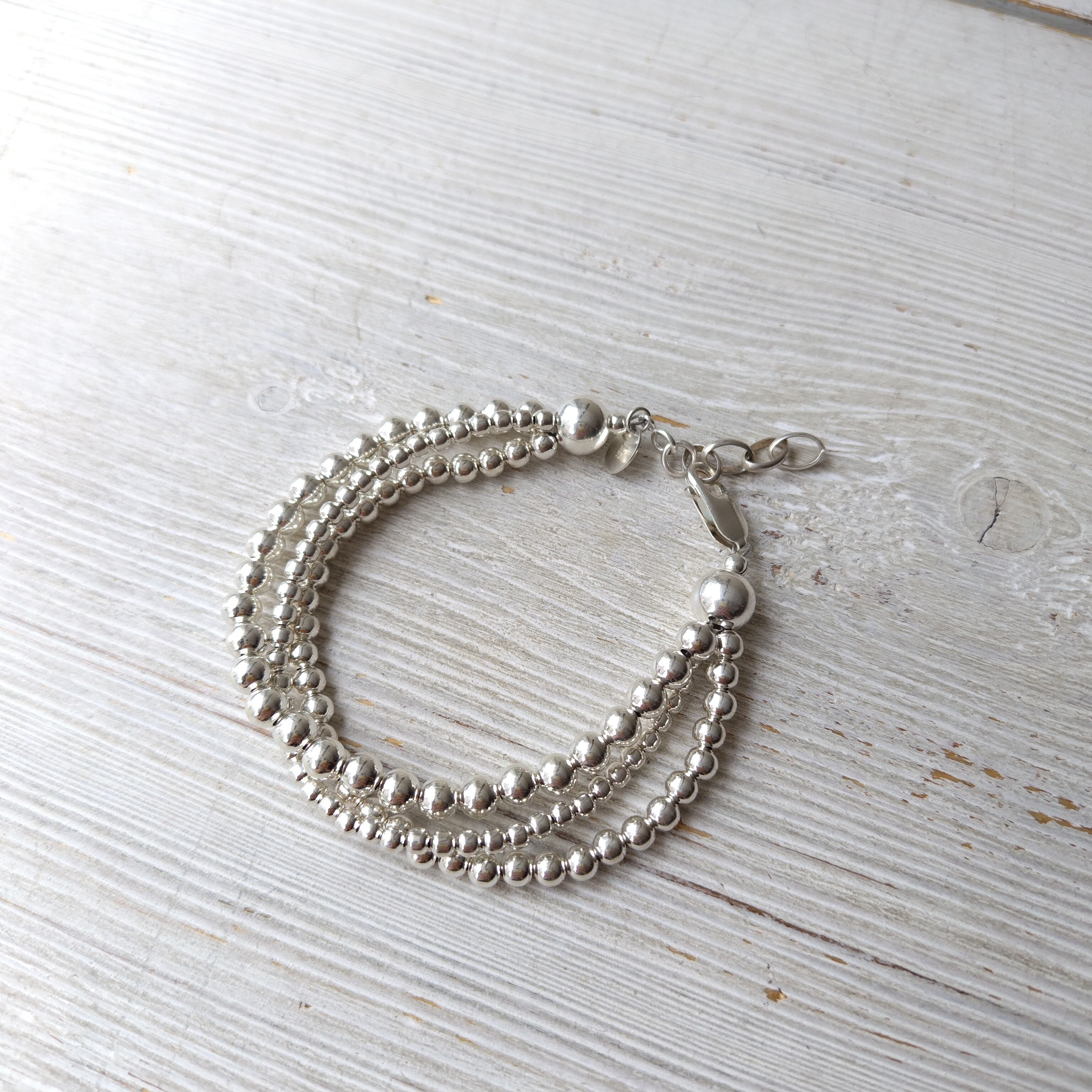 17.5cm+2cm 3連 ナバホパール シルバーブレスレット インディアンジュエリー
