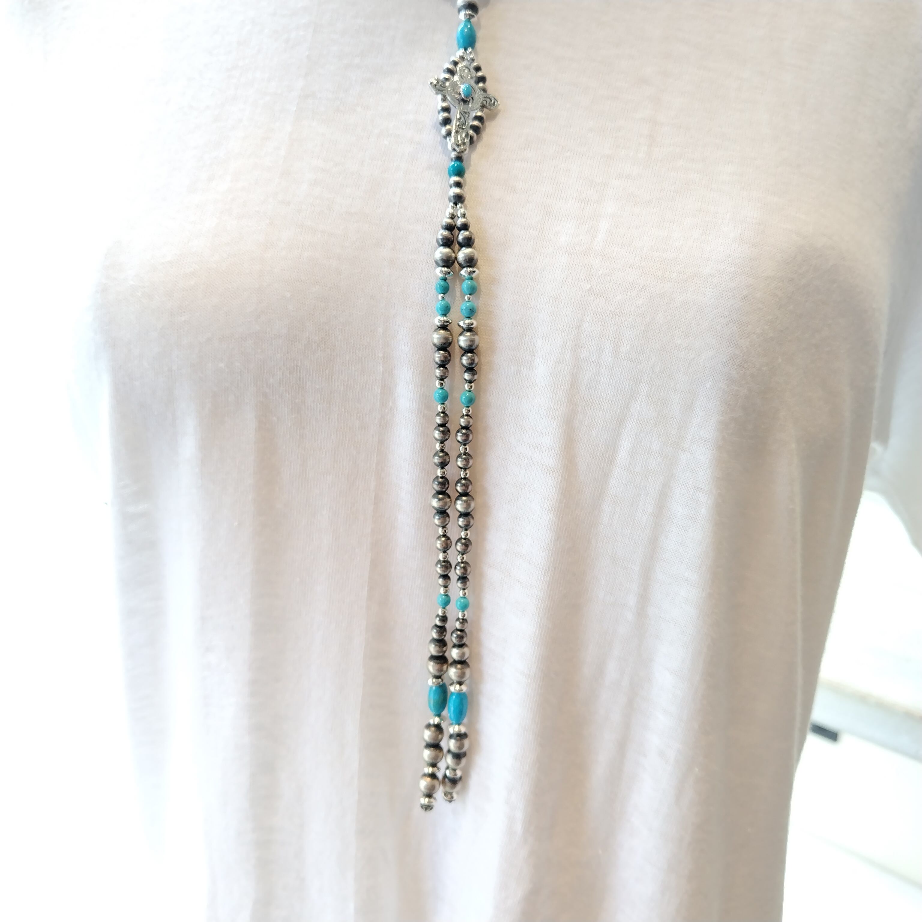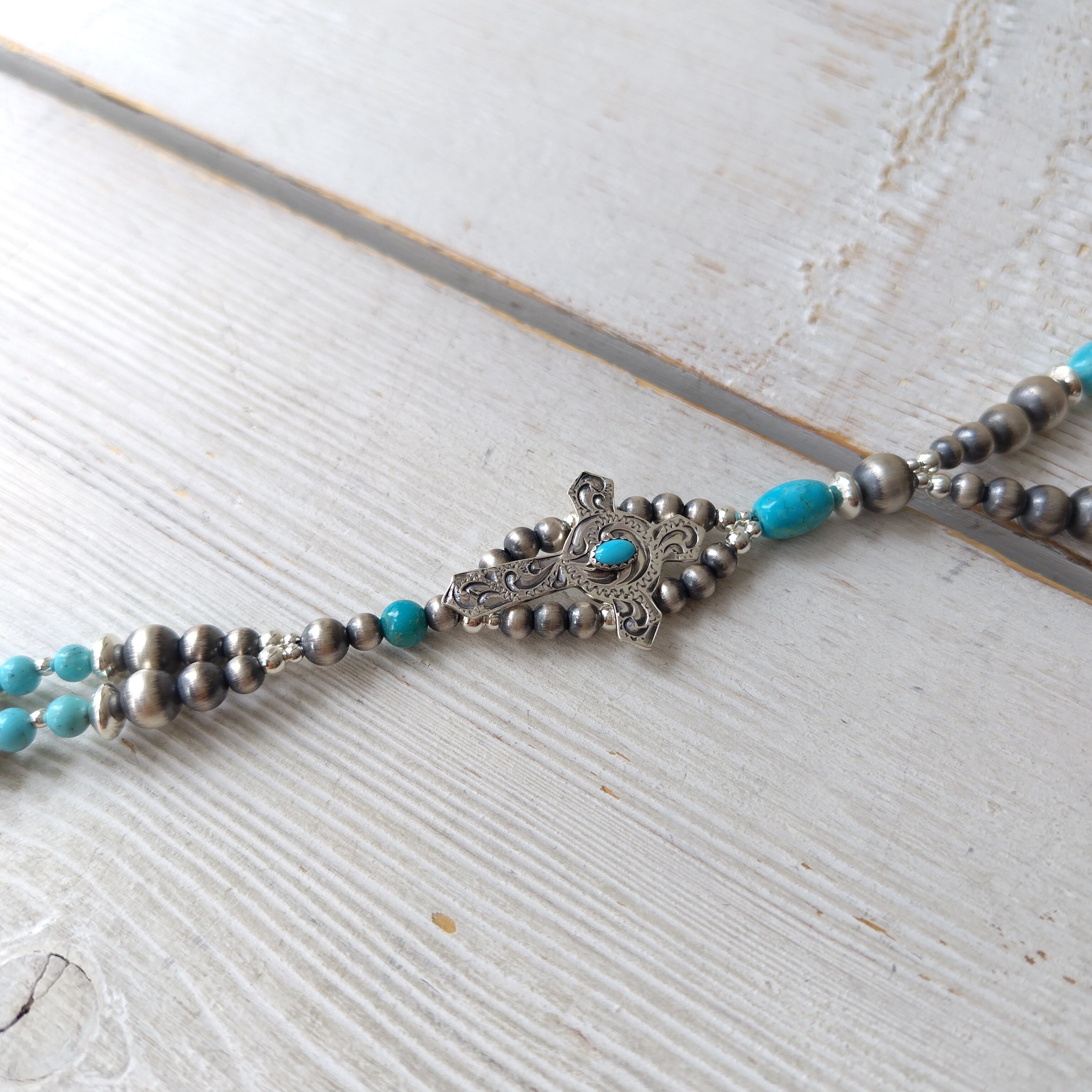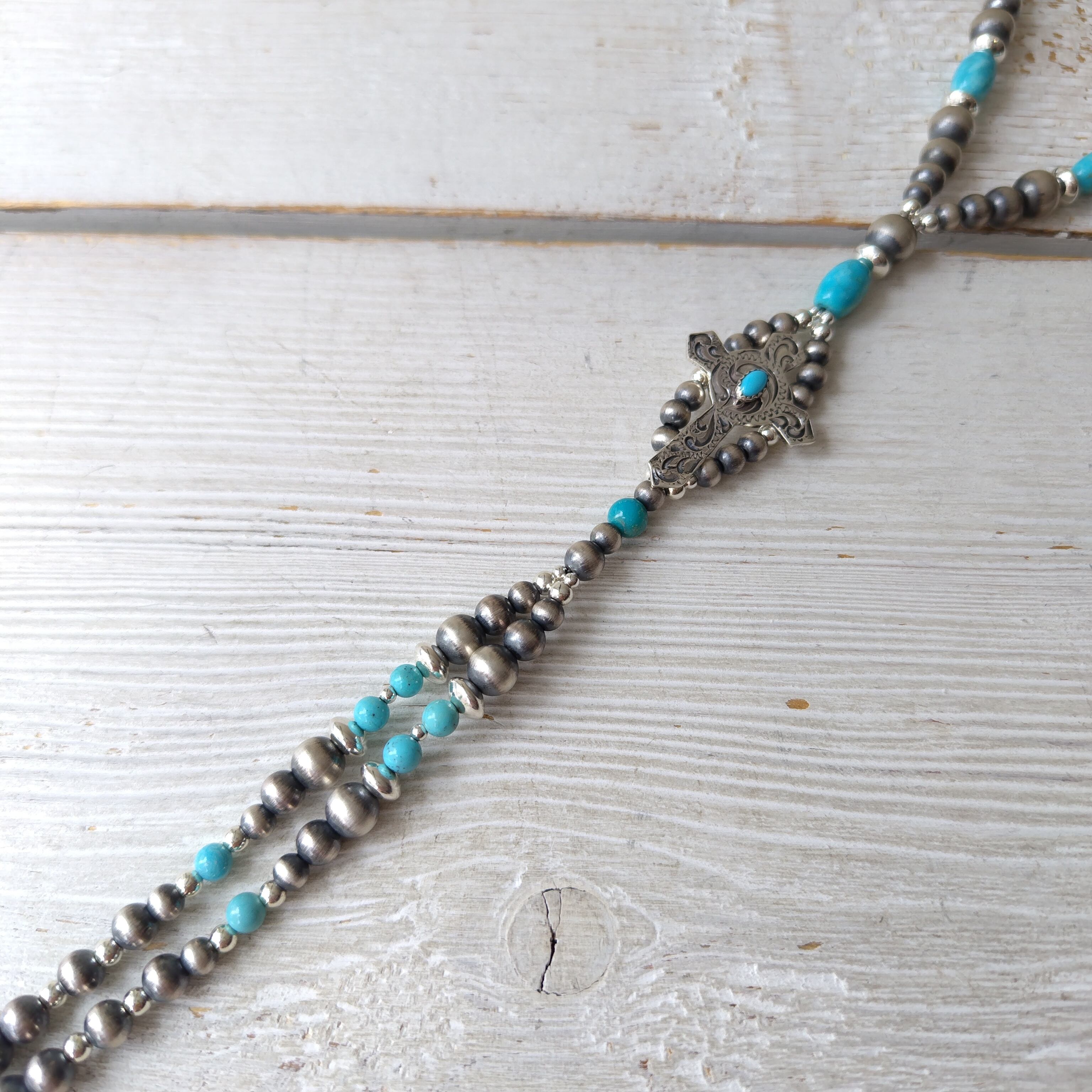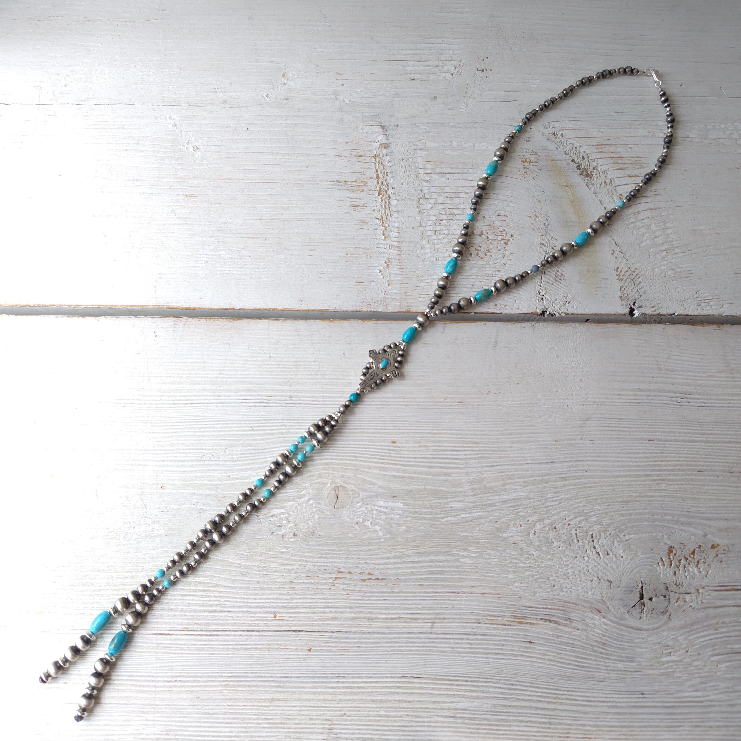 50cm + 24cm ナバホ Lucinda Sardo ターコイズ シルバーネックレス インディアンジュエリー