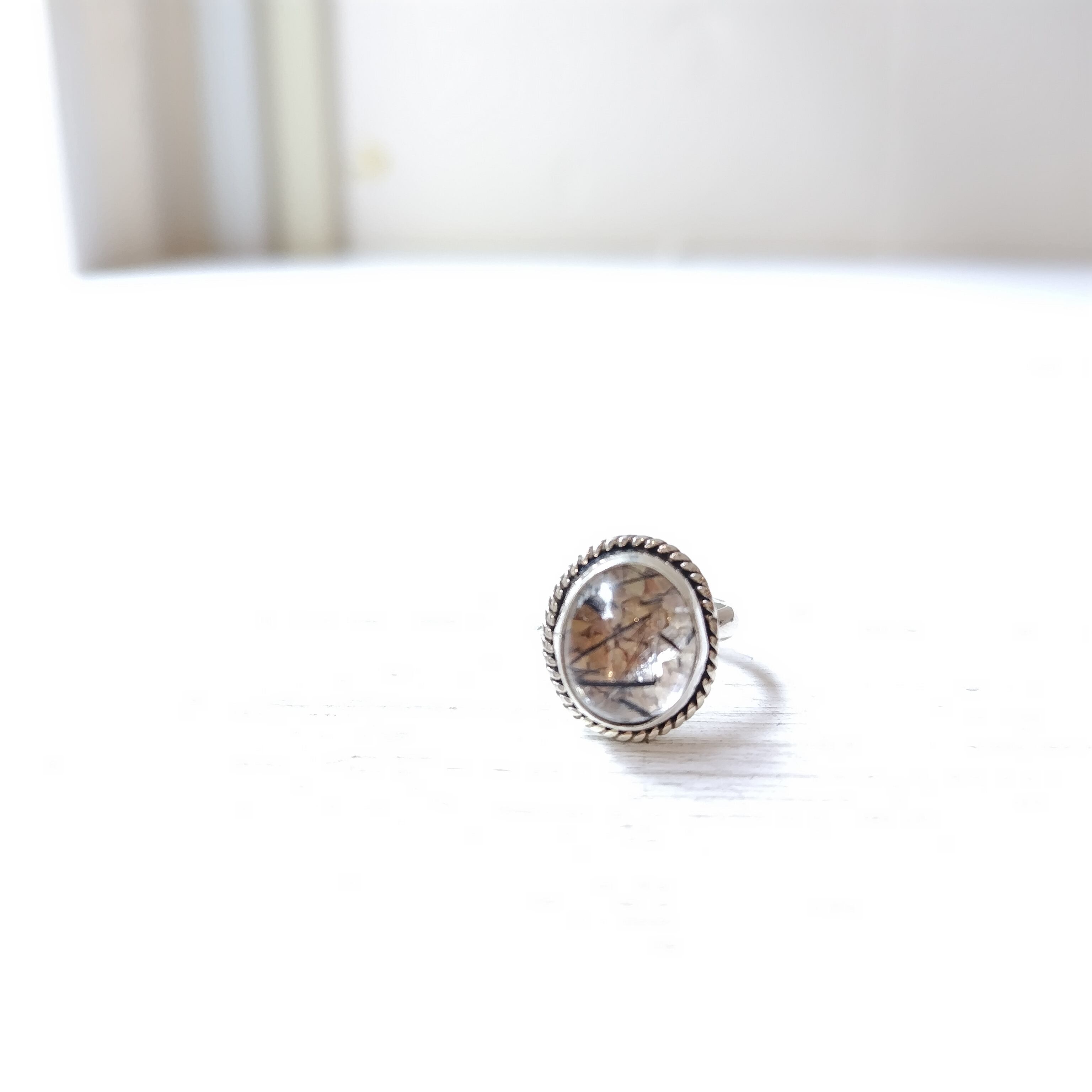 6号前後フリーサイズ ナバホ Rutile Quartz シルバーリング インディアンジュエリー