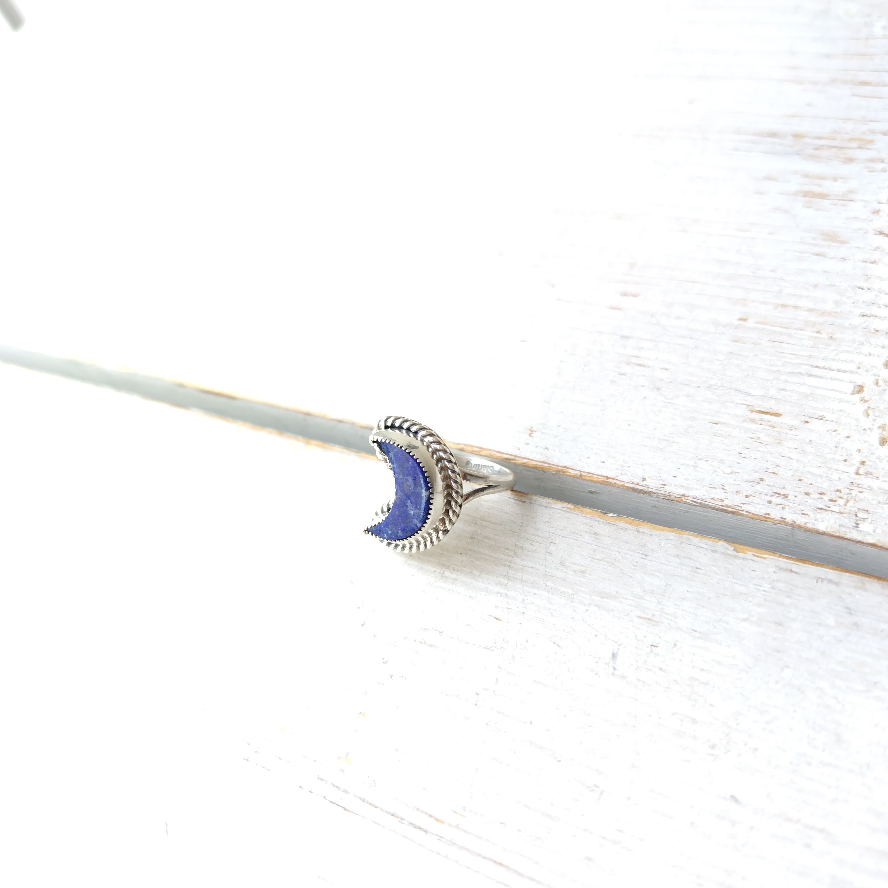 9.5号 フリーサイズ ナバホ ラピスラズリ Crescent Moon シルバーリング インディアンジュエリー