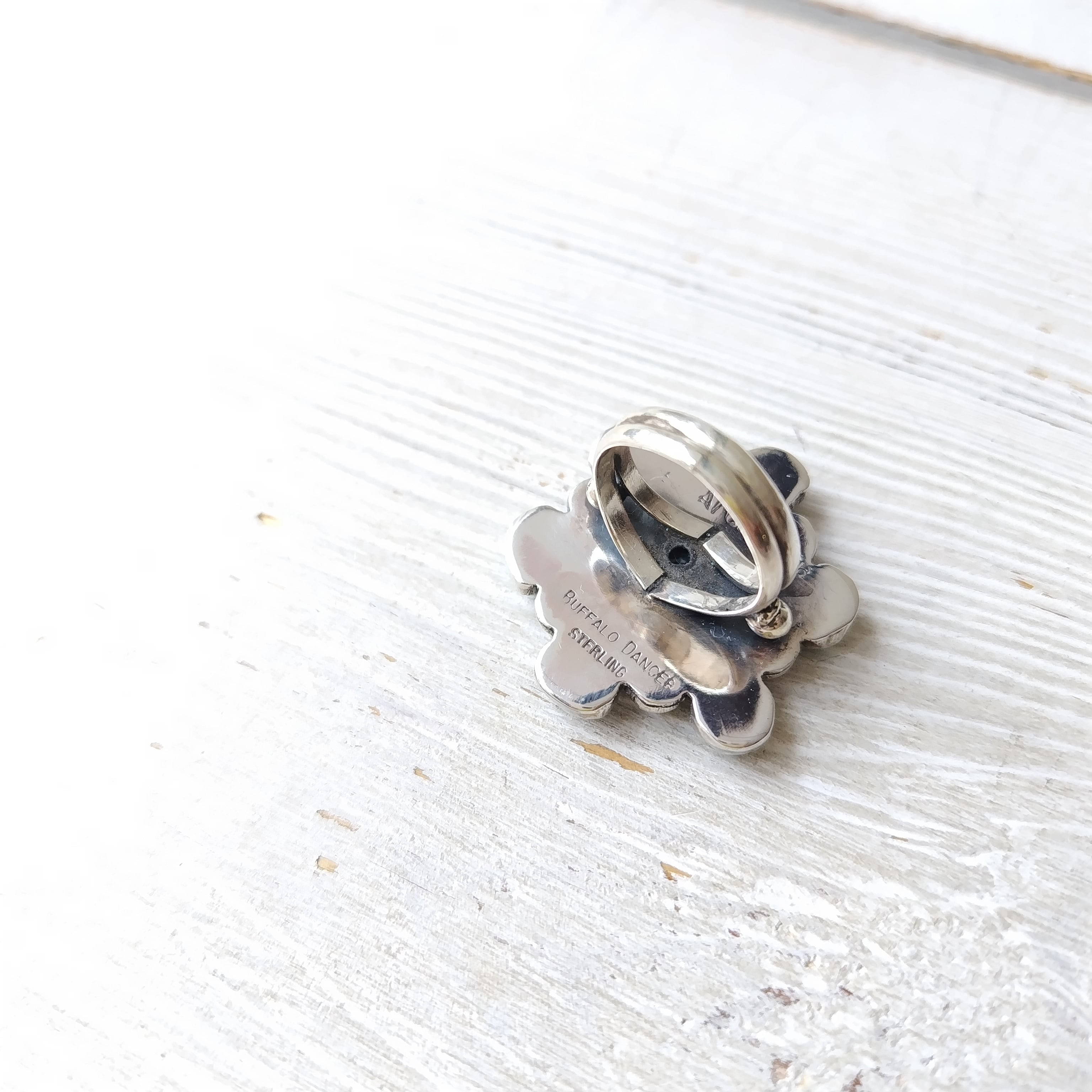 タオスプエブロ族 Lawrence Archuleta ターコイズ コインシルバーリング 10号 インディアンジュエリー