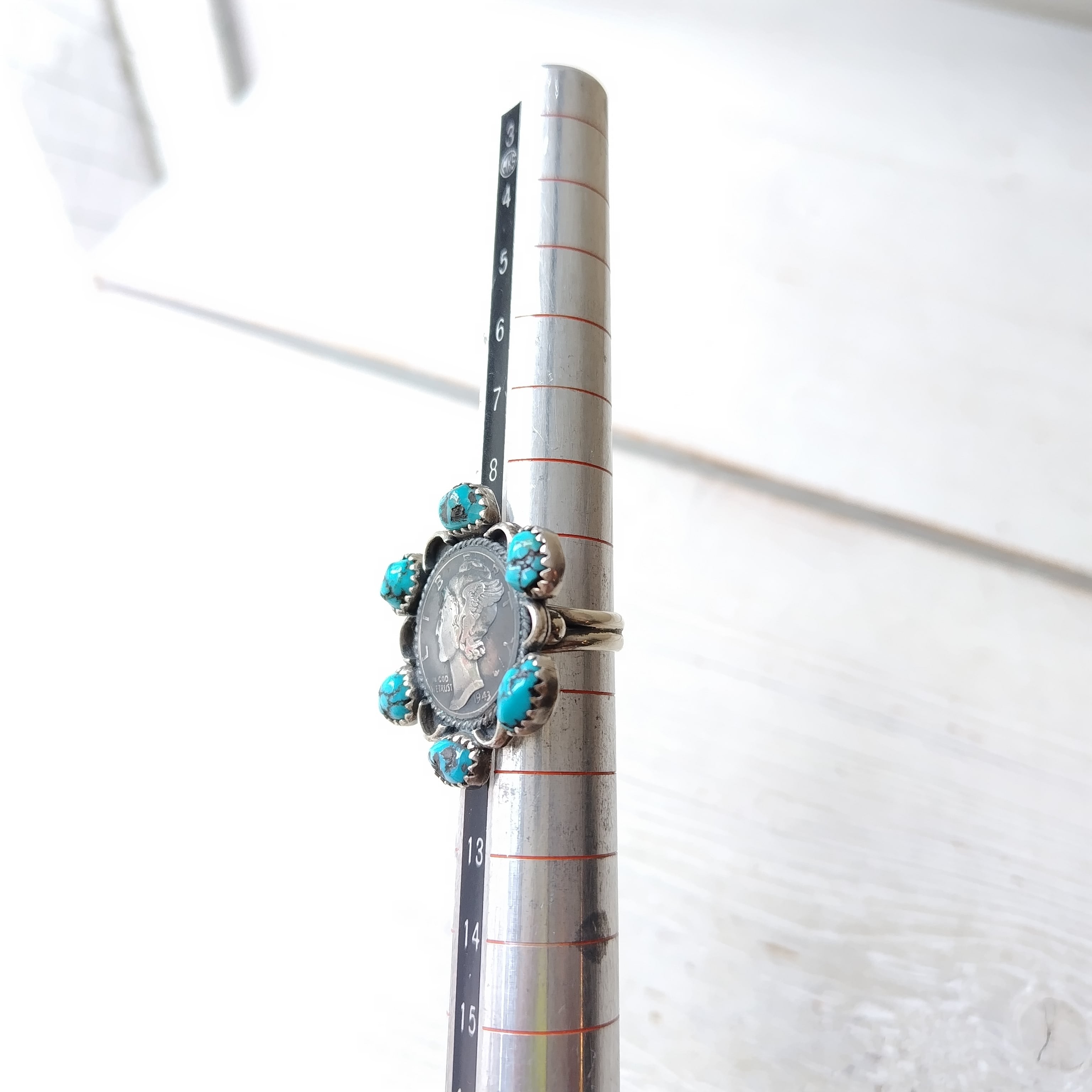 雰囲気のいい タオスプエブロ族 ターコイズ コインシルバーリングになります!