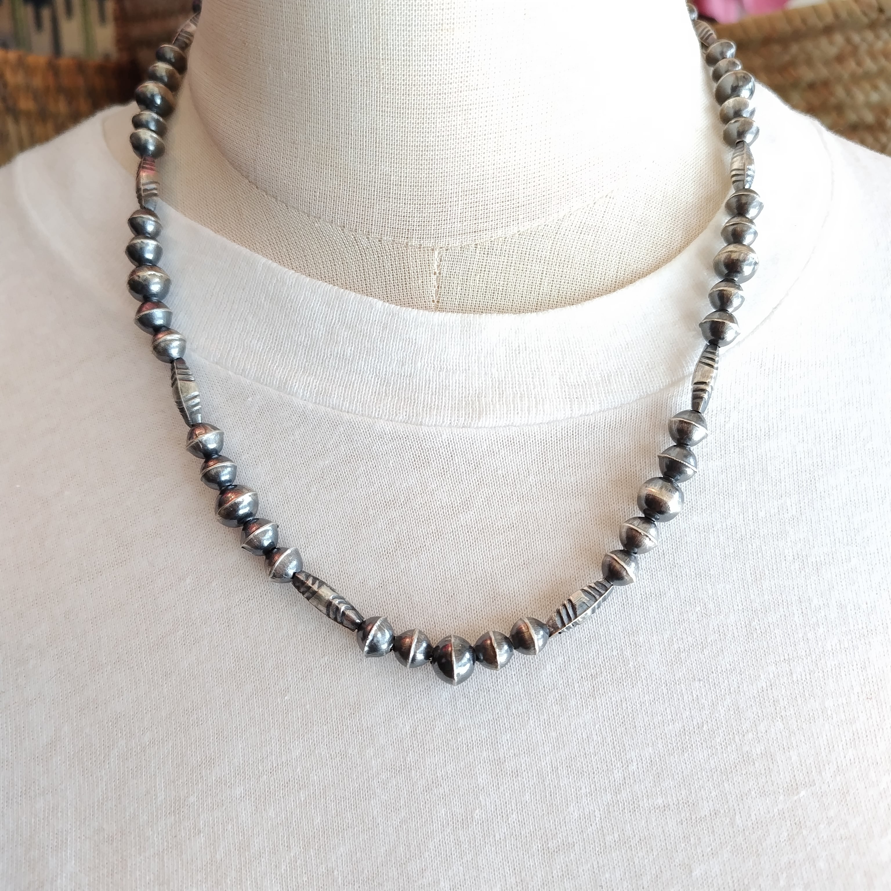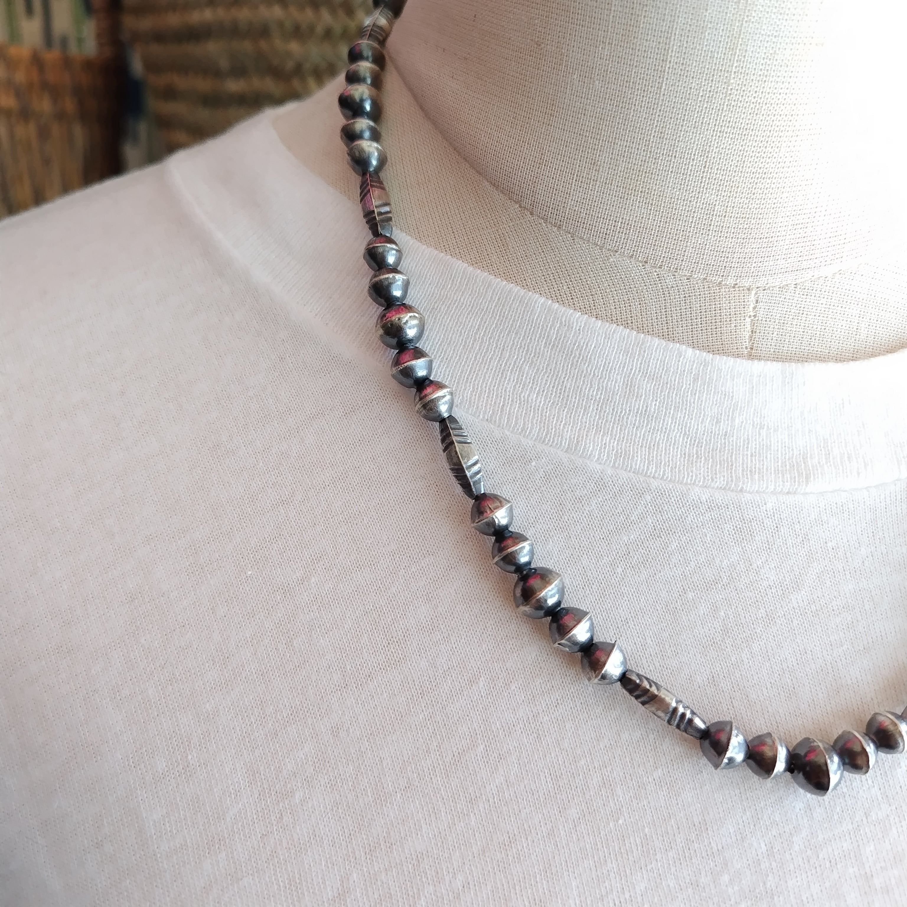 52cm 70s ビンテージ ナバホ シルバービーズネックレス インディアンジュエリー