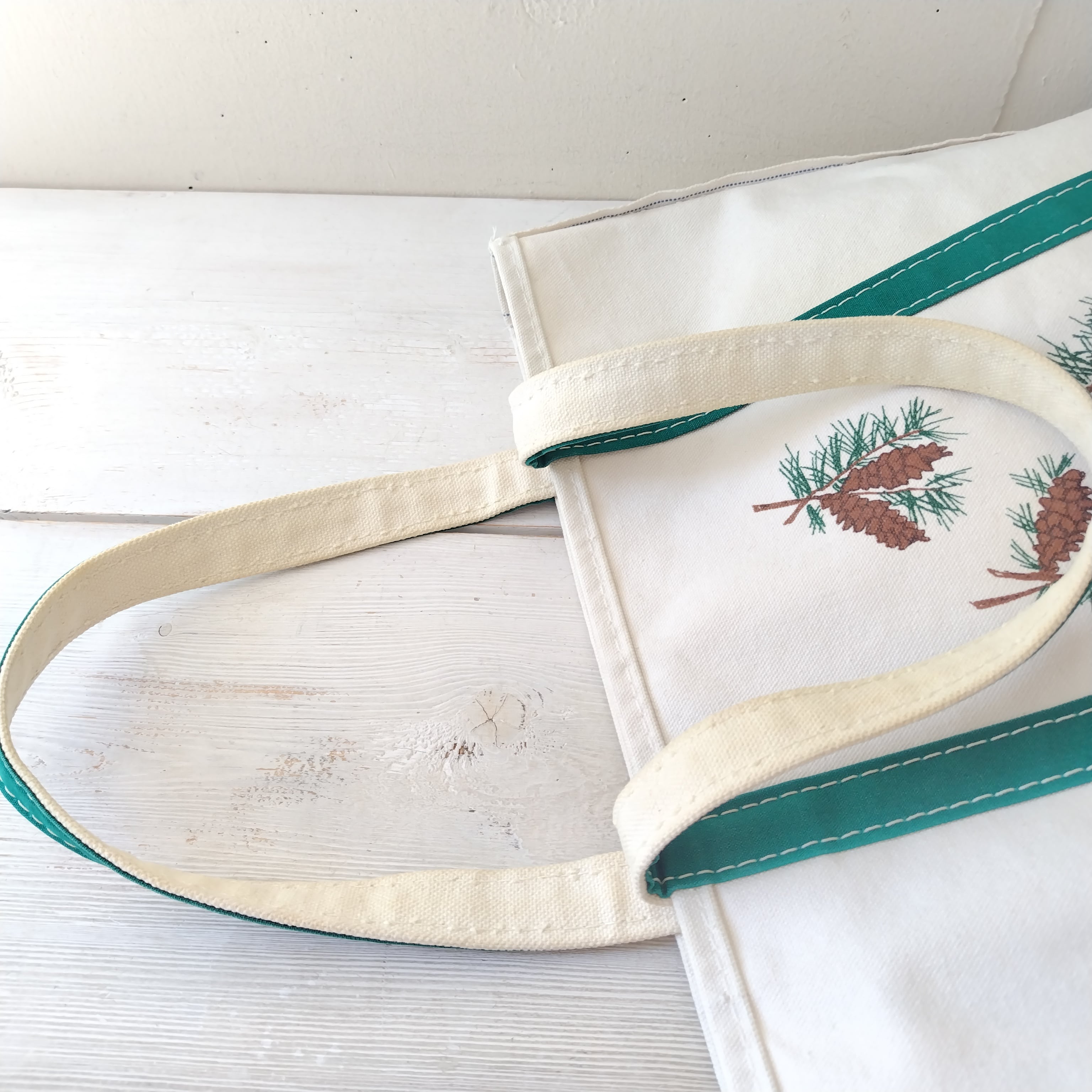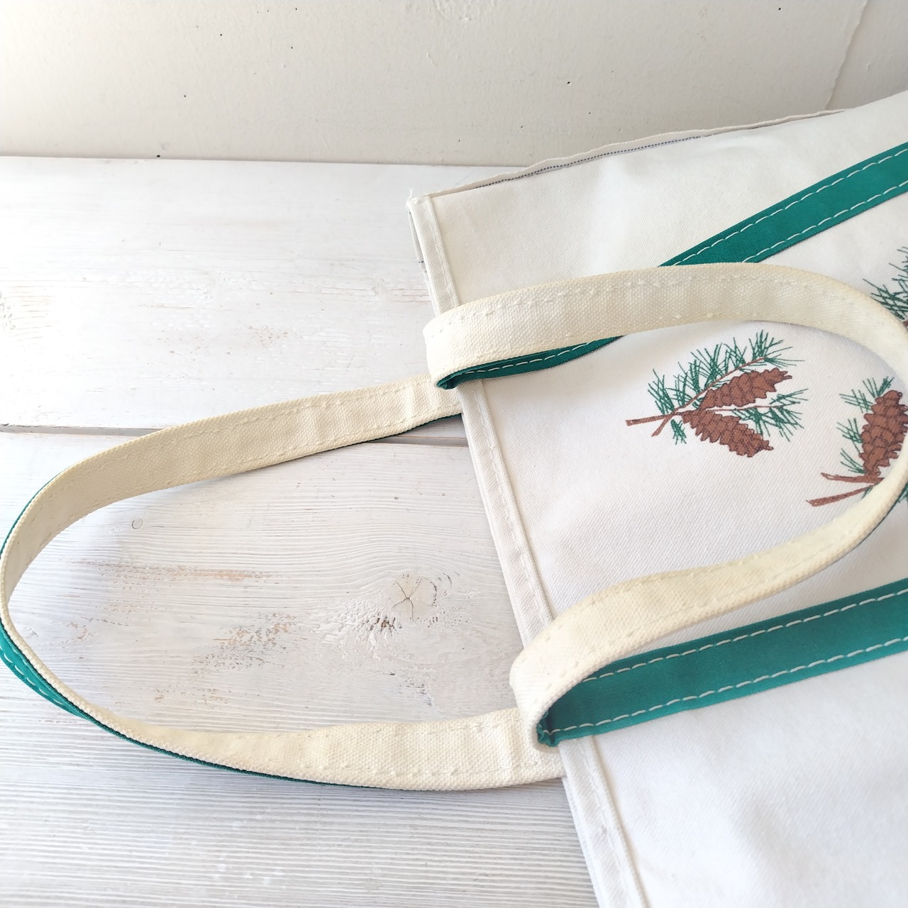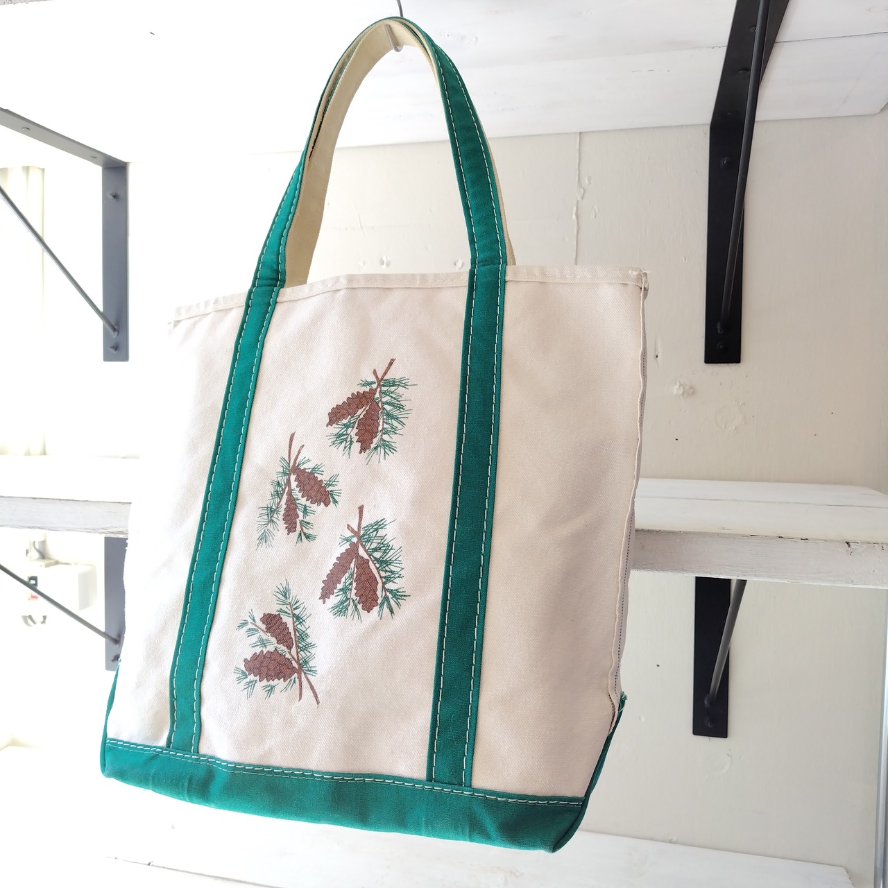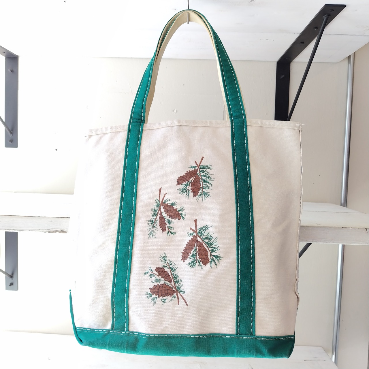希少 80s ギザタグ 両面 松ぼっくり L.L.Bean グリーンハンドル トートバッグ