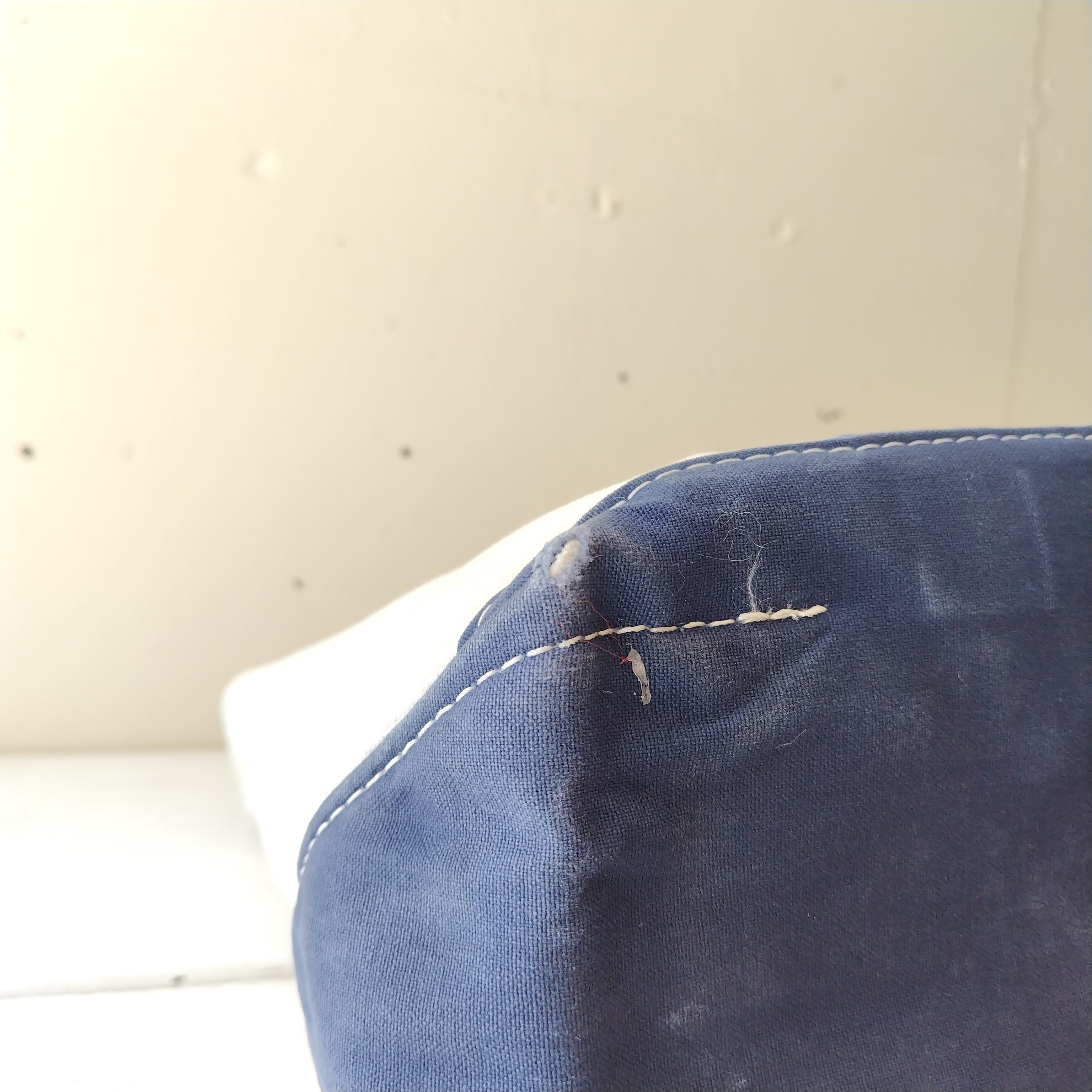 洗いこんだ感、微量の色うつりとくすみ、内側に微シミ、底に微量のスレと角に若干のダメージがございます。