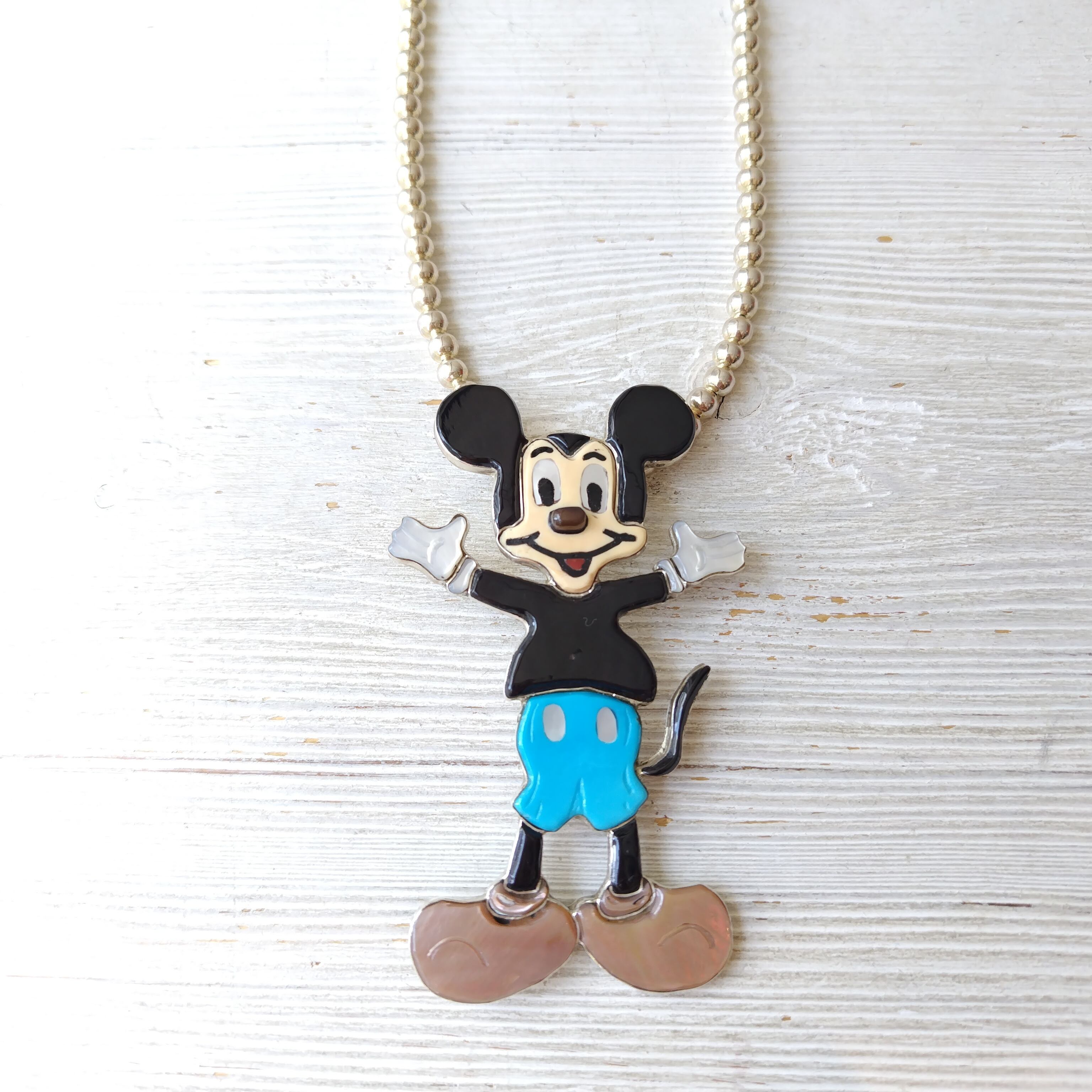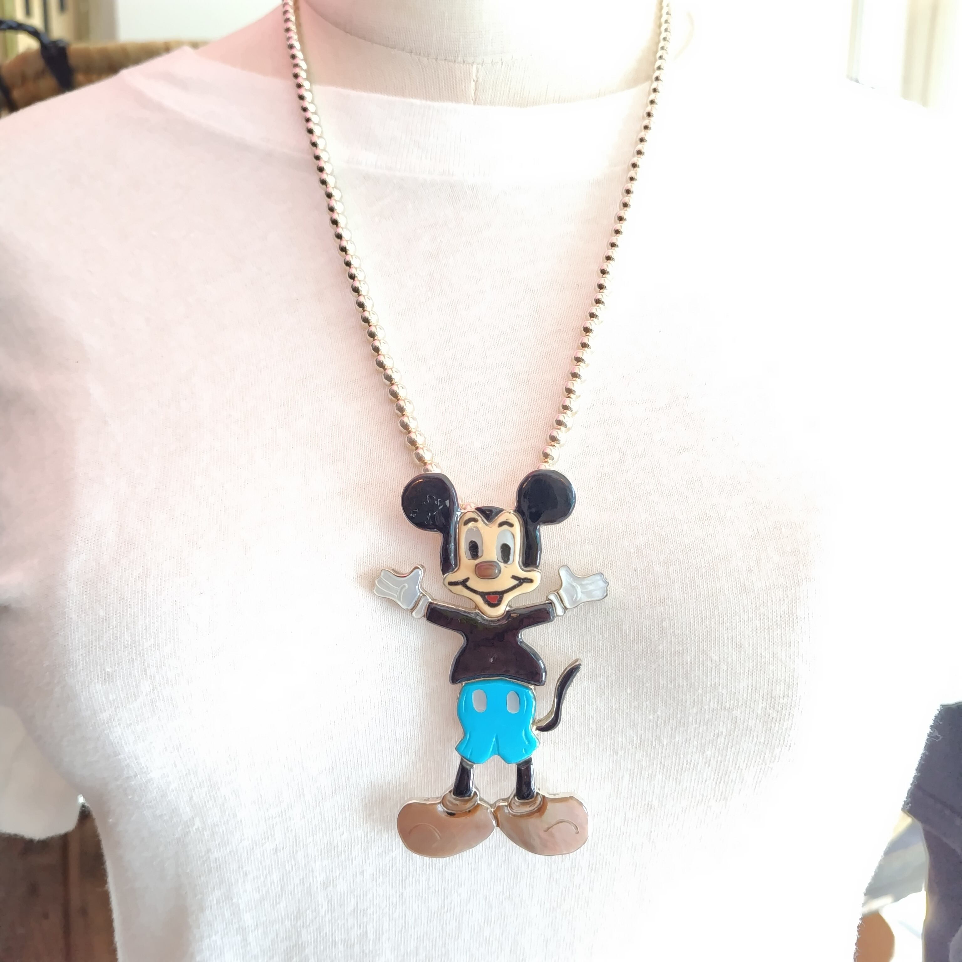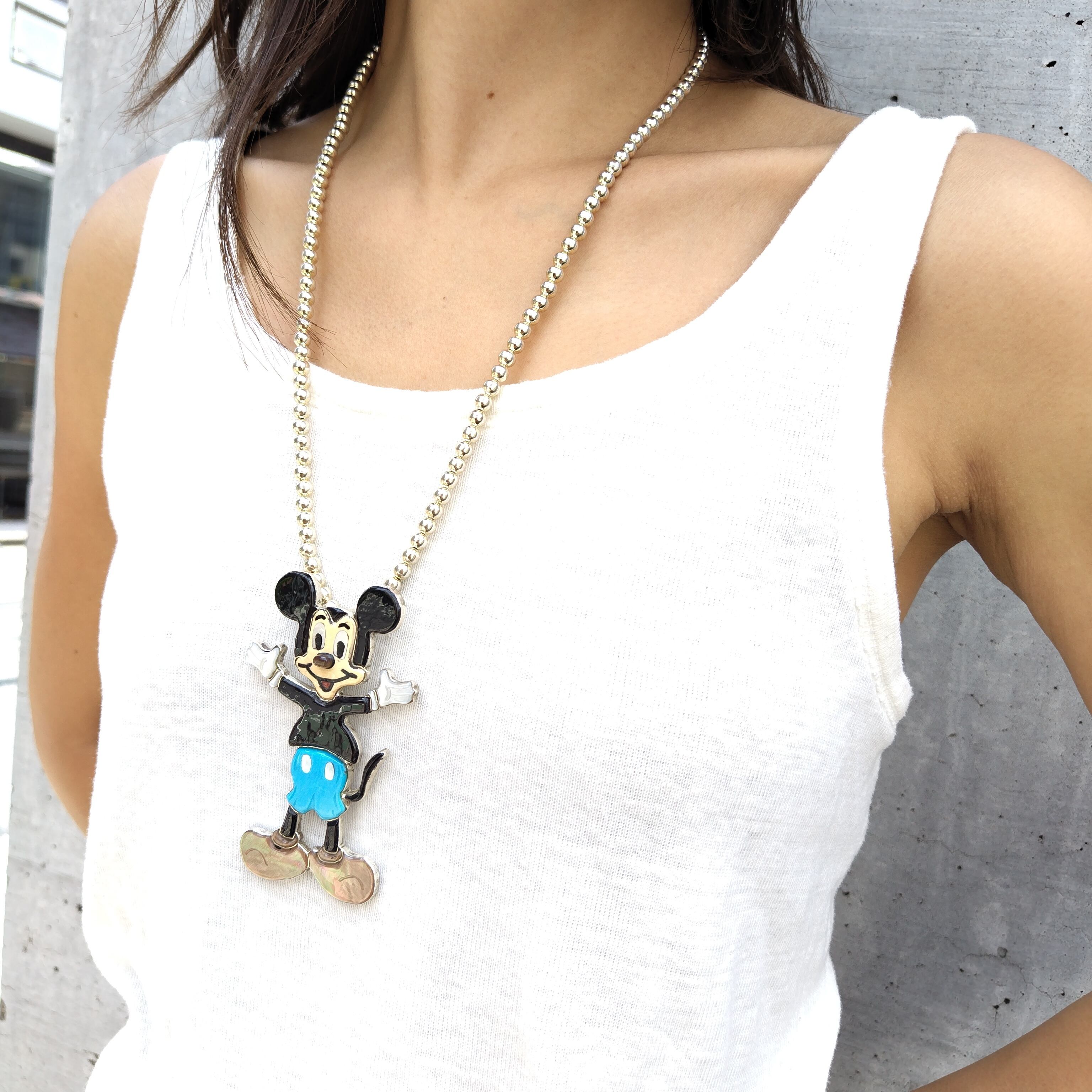 Big Size ZUNI Andrea Lonjose インレイ シルバー トップ +ブローチ ナバホパール シルバーネックレス 5mm玉 60cm セット