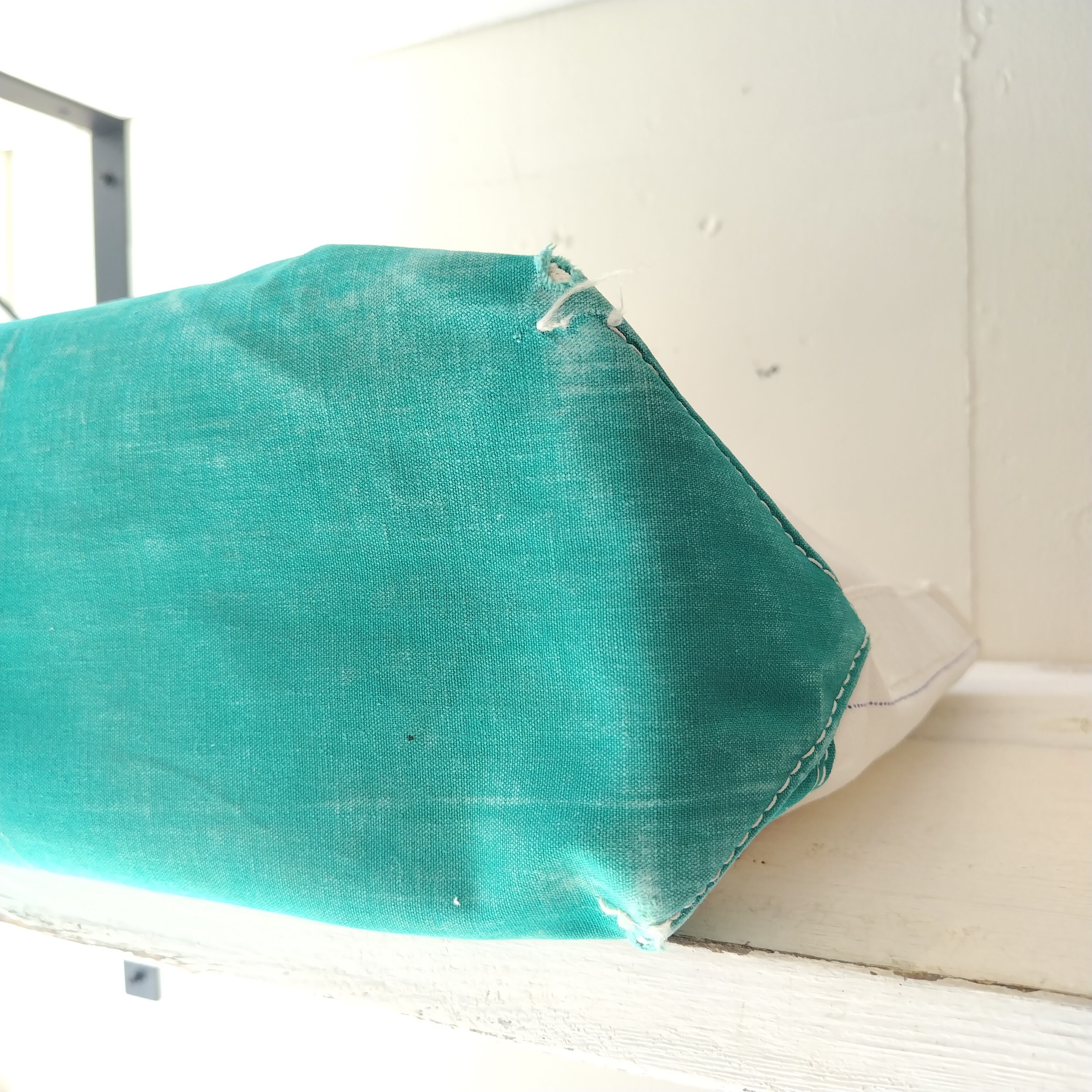 40年以上前のトートバッグになりますのでシミやクスミ、底角にダメージ、ハンドルにダメージなどございます。
