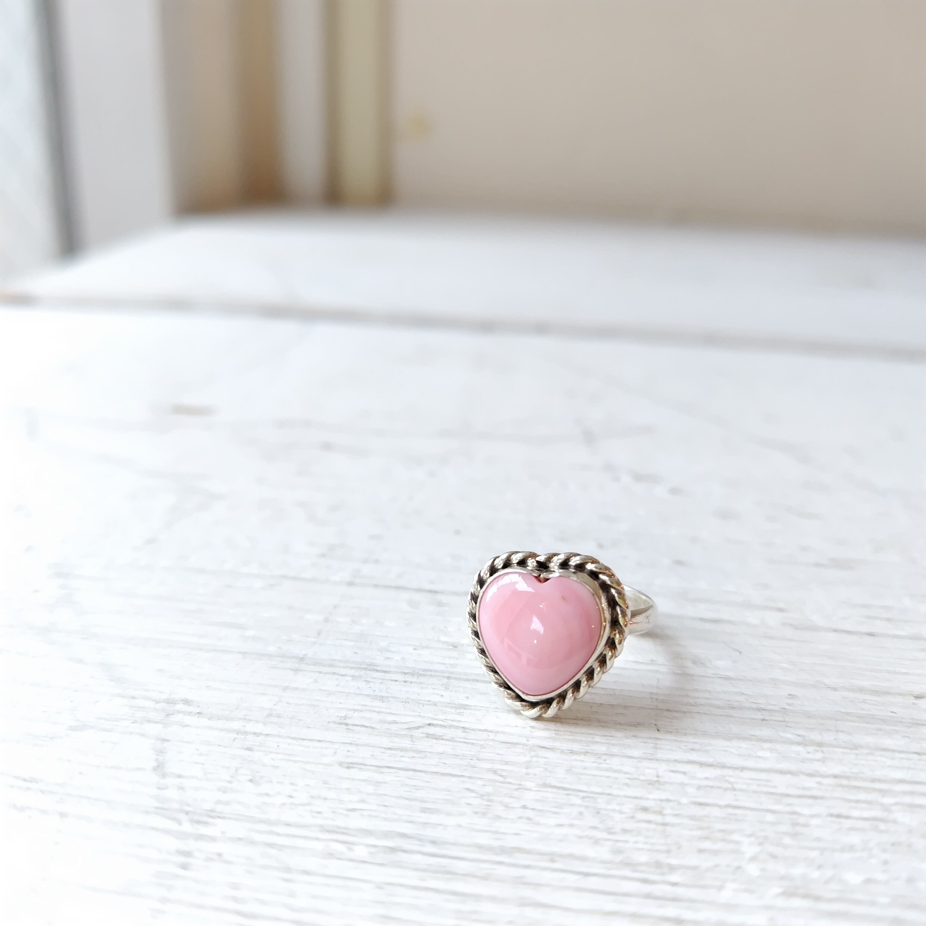 素晴らしい雰囲気の ナバホ PINK CONCH SHELL ハート シルバーリングになります!
