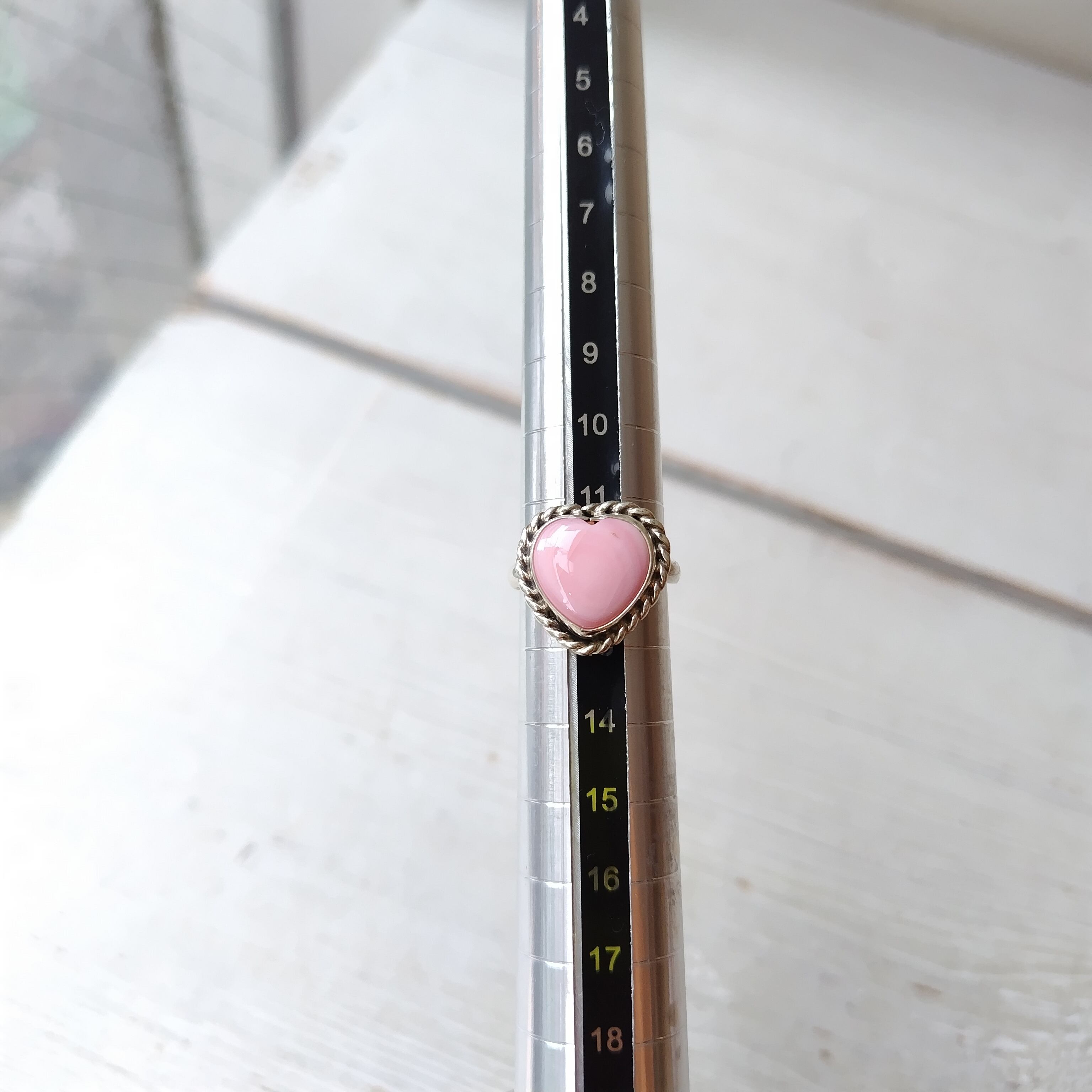 12号前後フリーサイズ ナバホ PINK CONCH SHELL ハート シルバーリング インディアンジュエリー 1