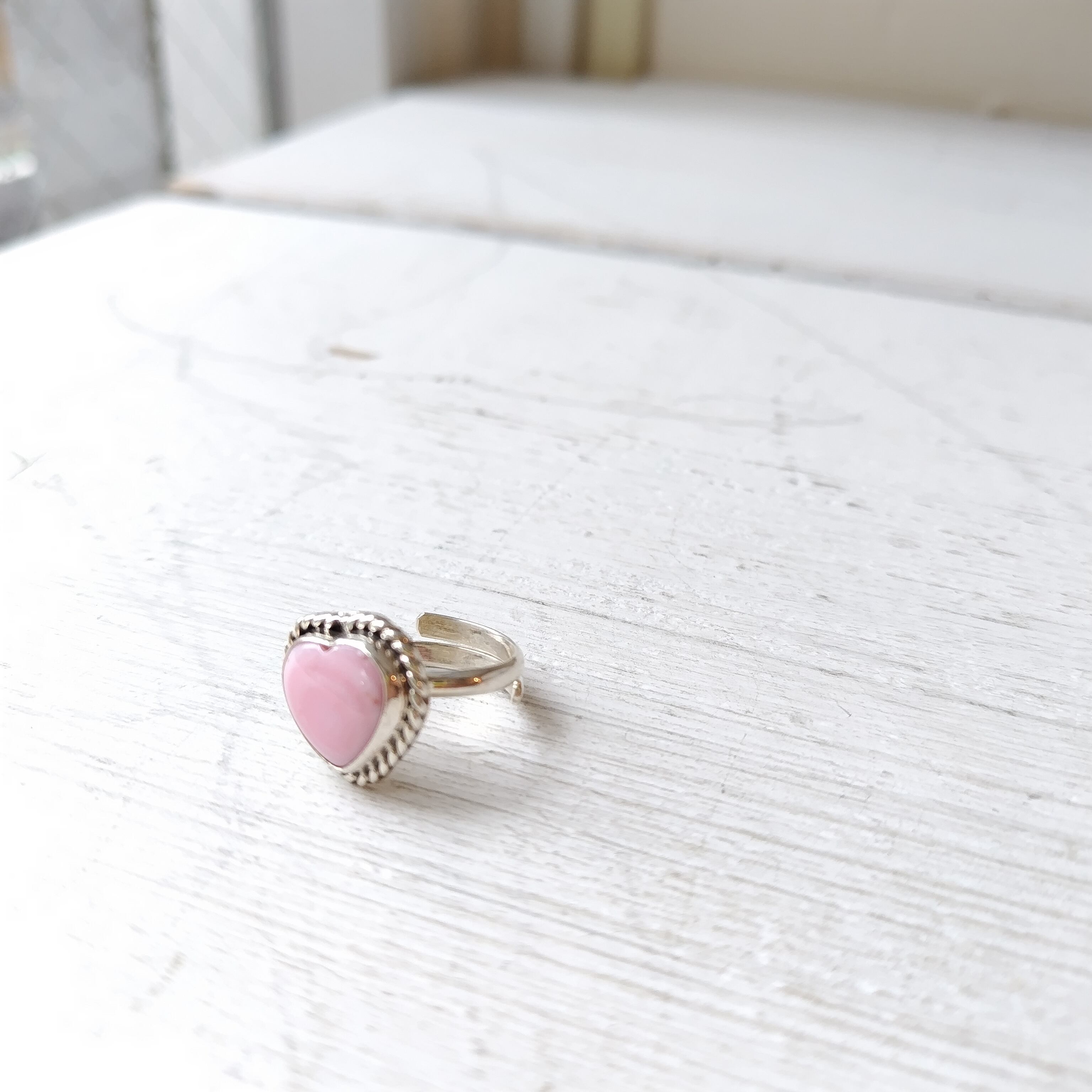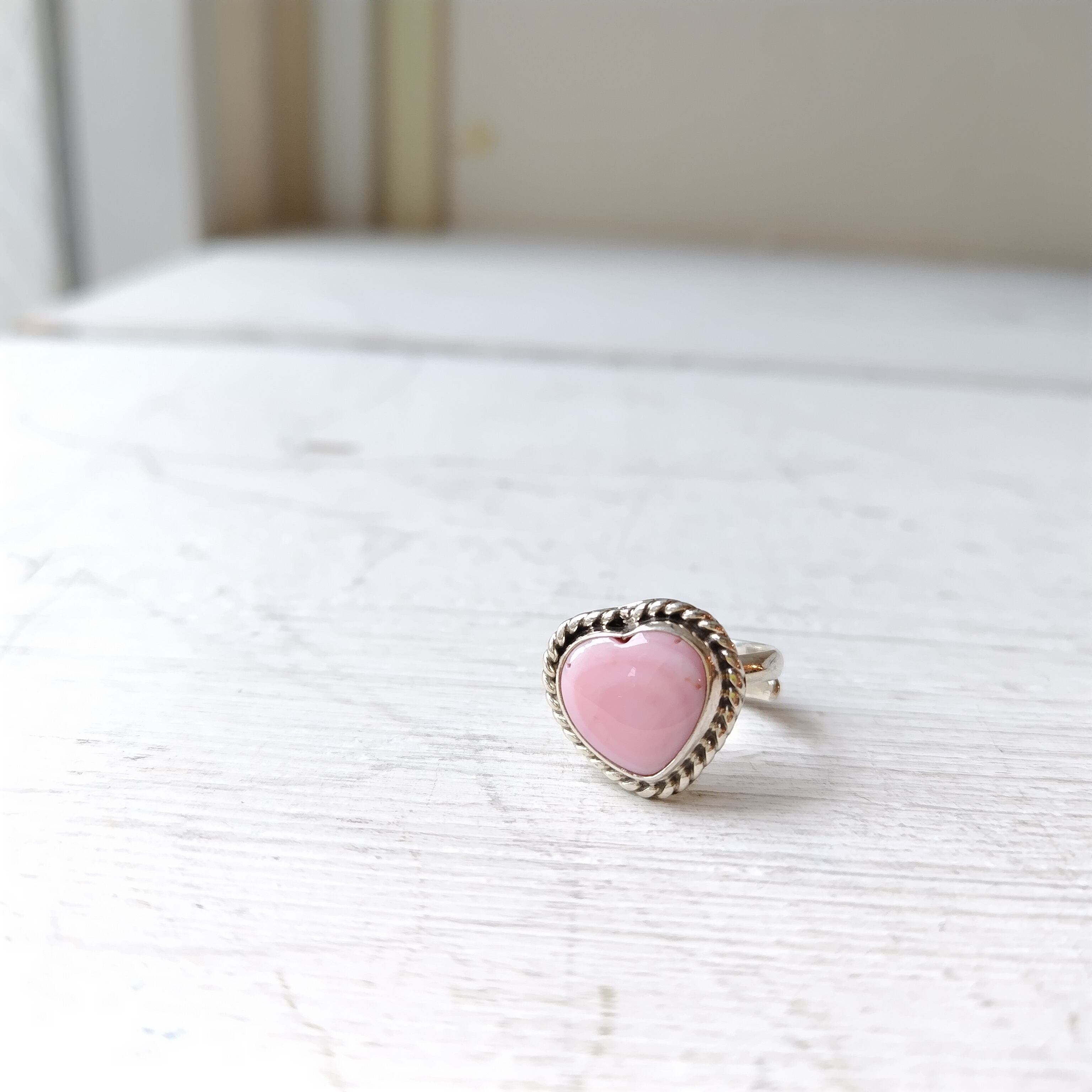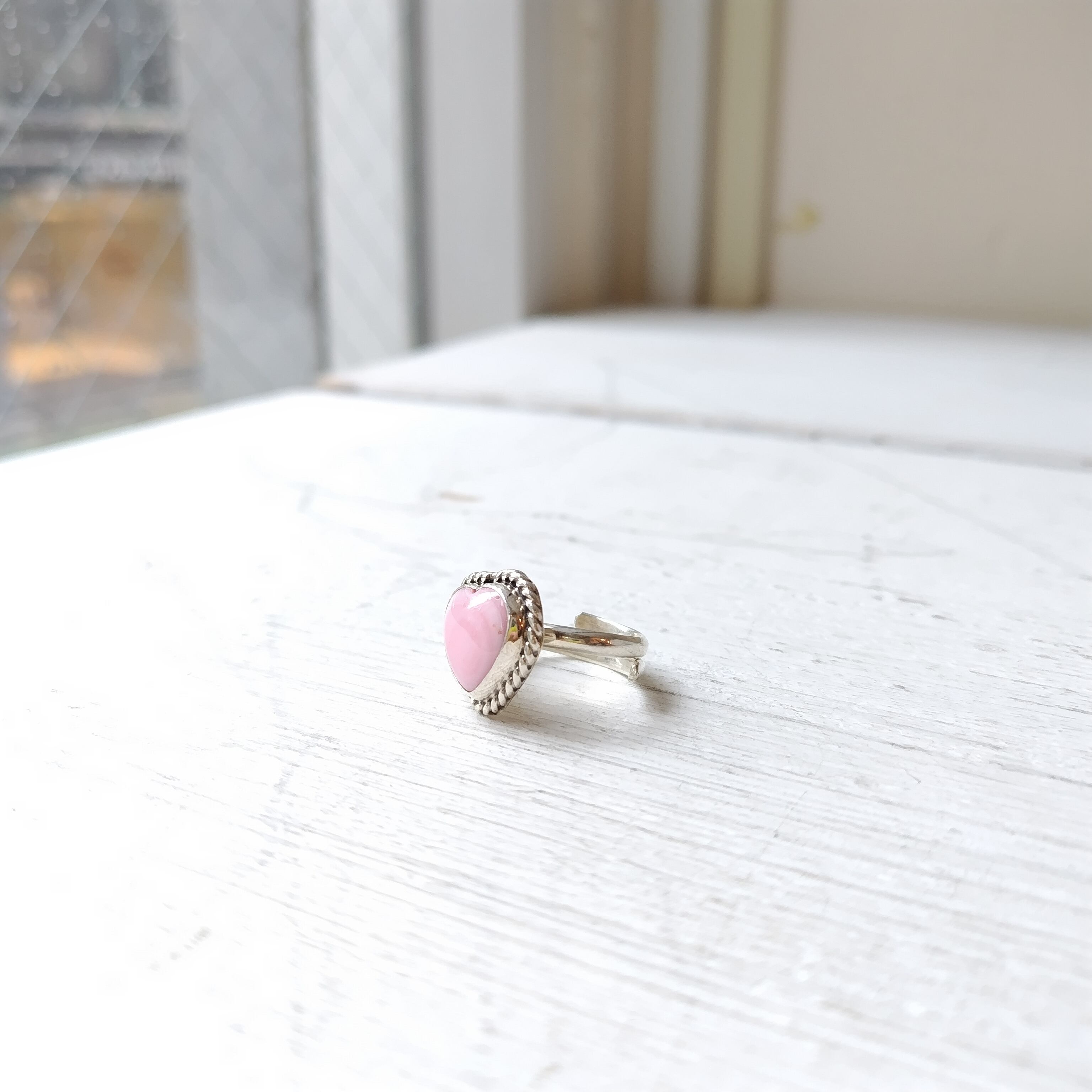 10号前後 フリーサイズ ナバホ PINK CONCH SHELL ハート シルバーリング インディアンジュエリー 2
