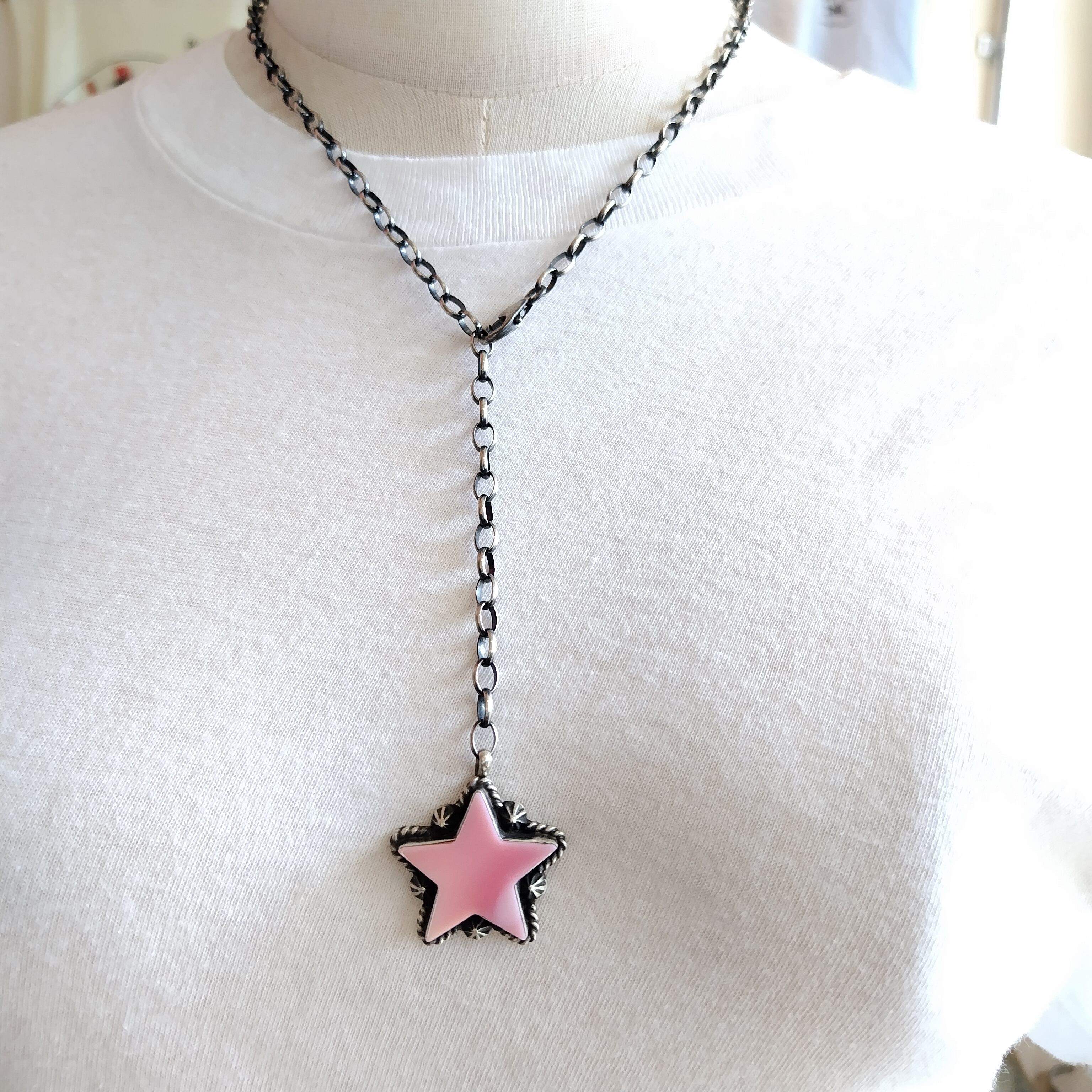 ナバホ PINK CONCH SHELL フリーYスタイル ハート シルバーネックレス インディアンジュエリー