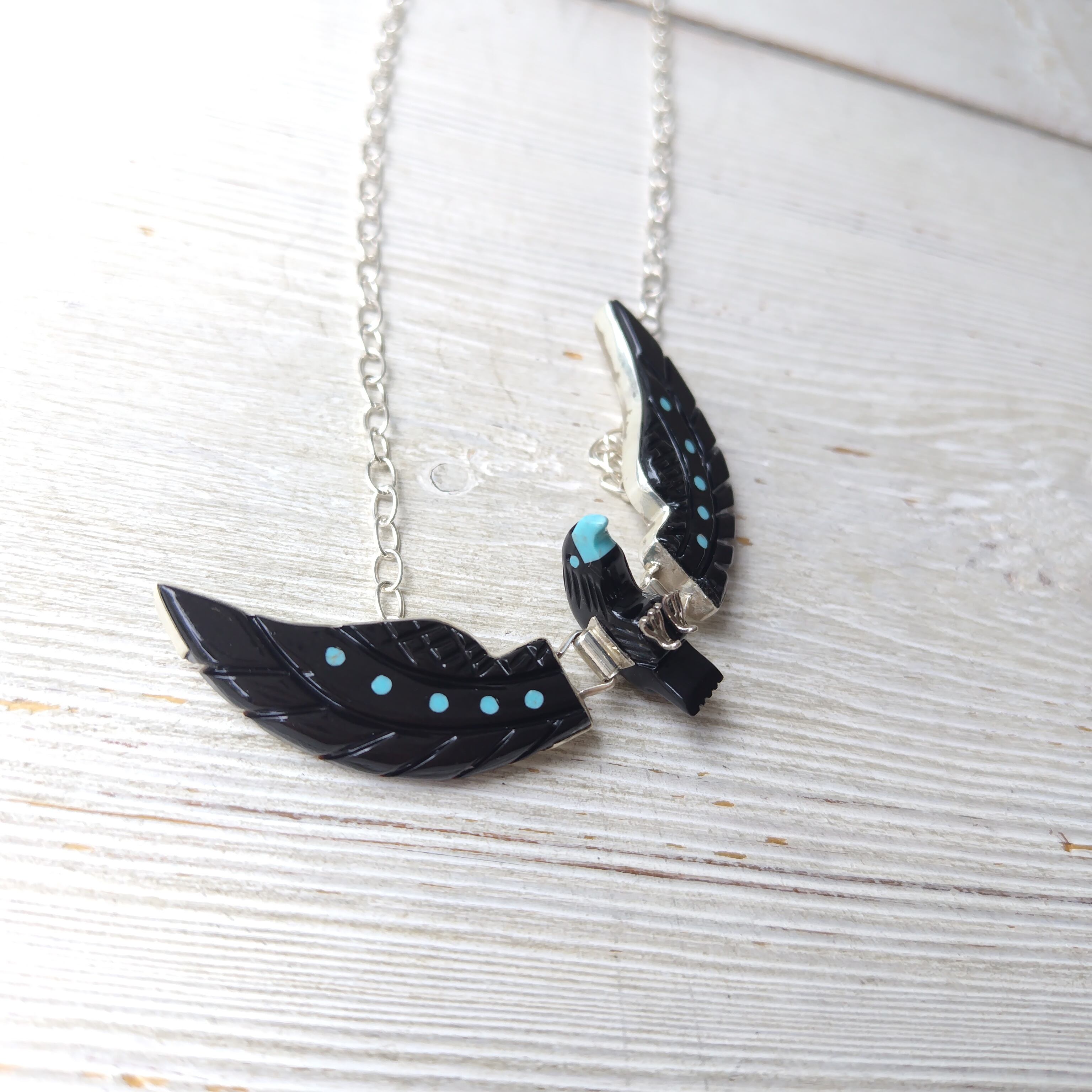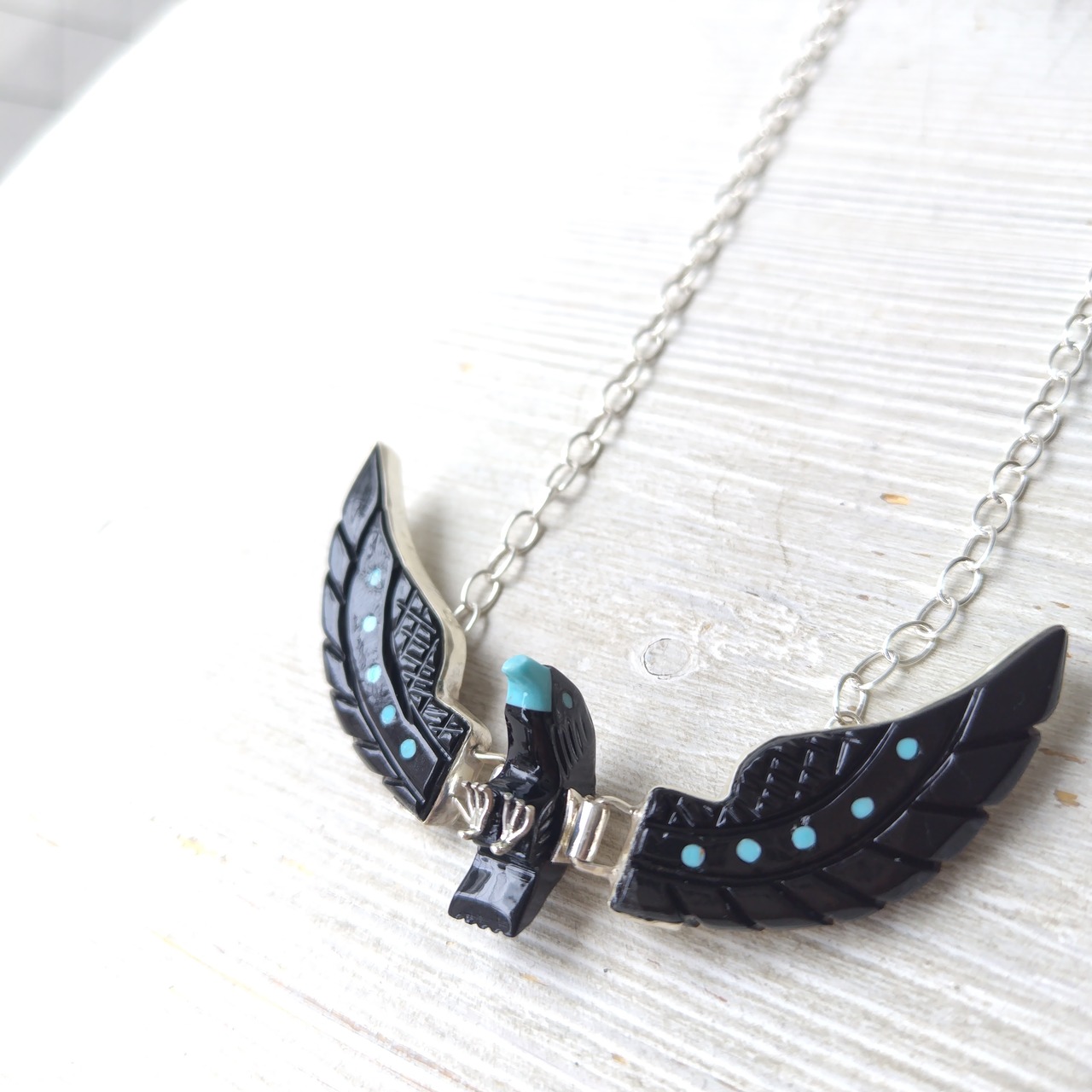 雰囲気最高のナバホ ジェット x ターコイズ イーグルシルバーネックレスになります!