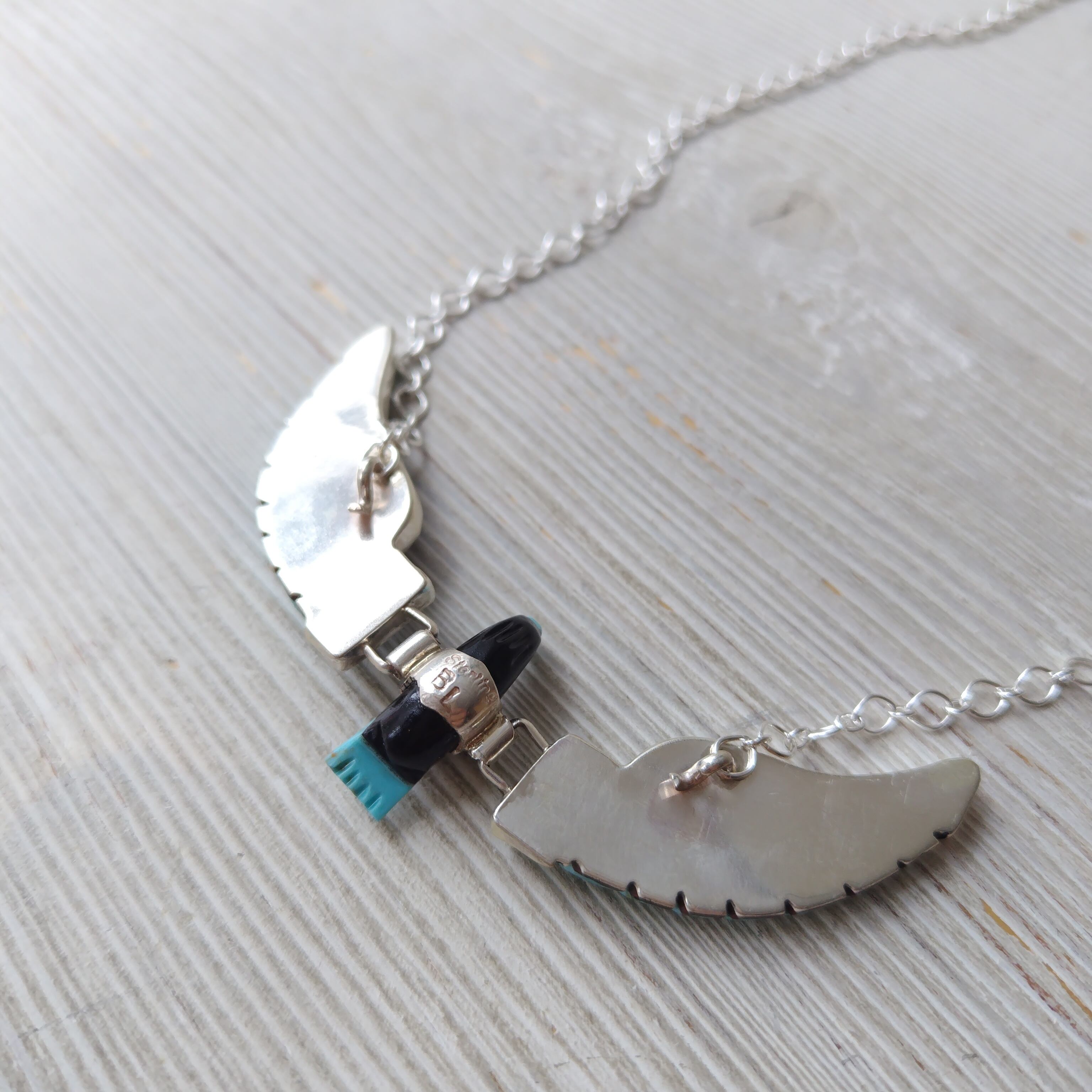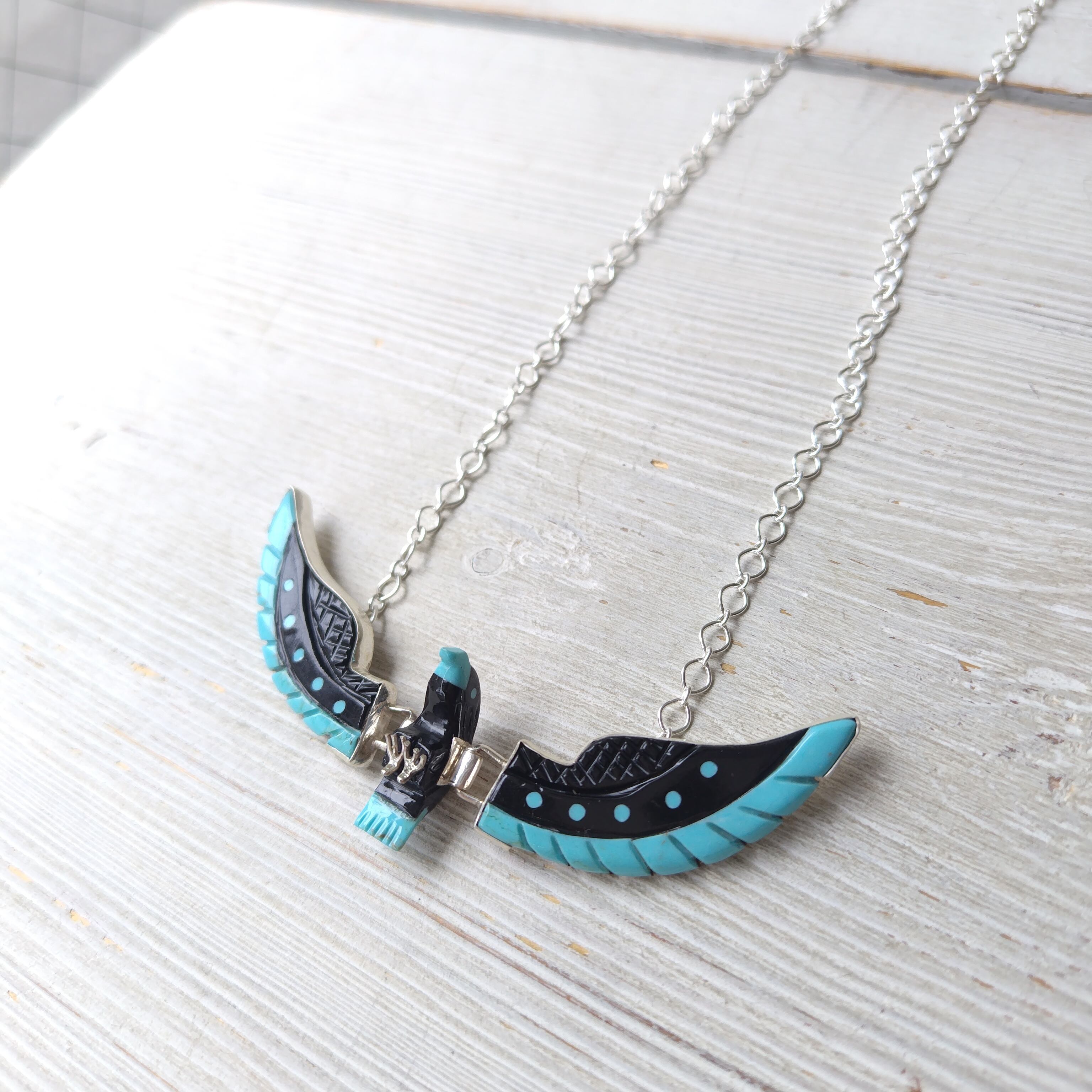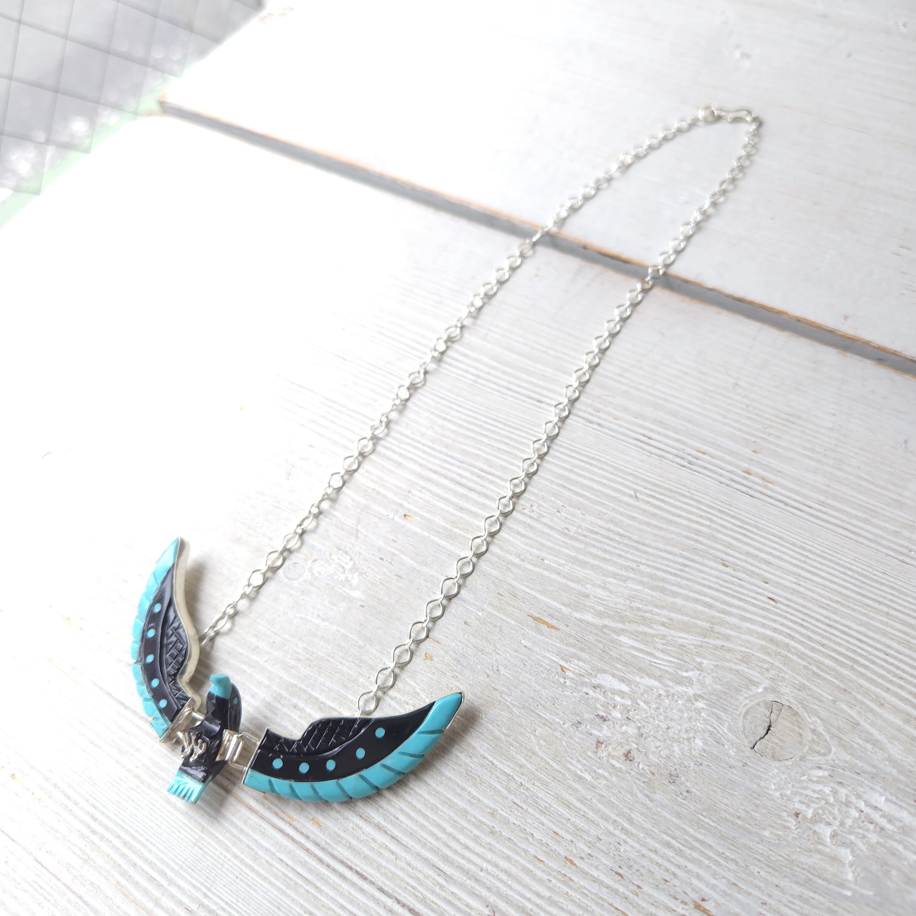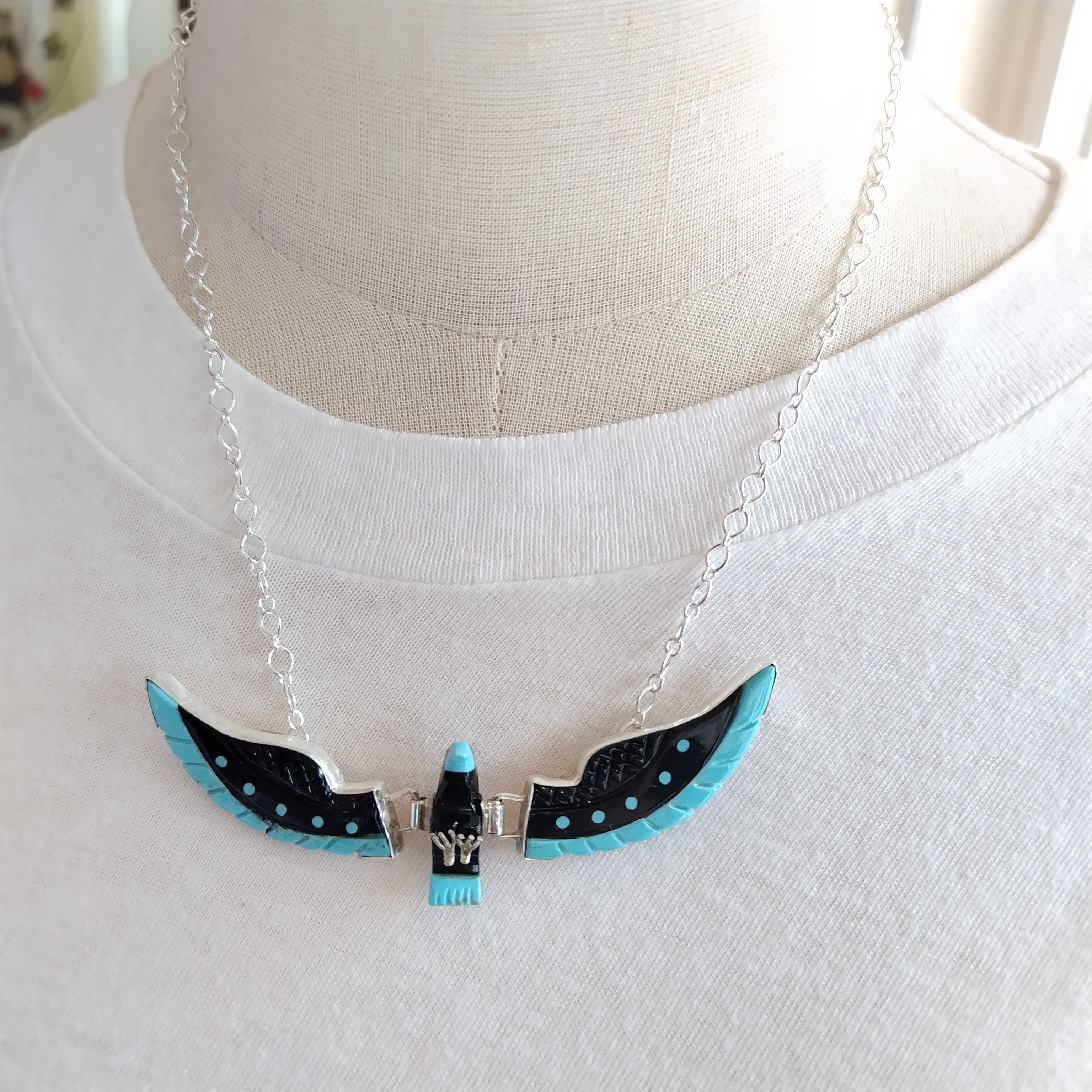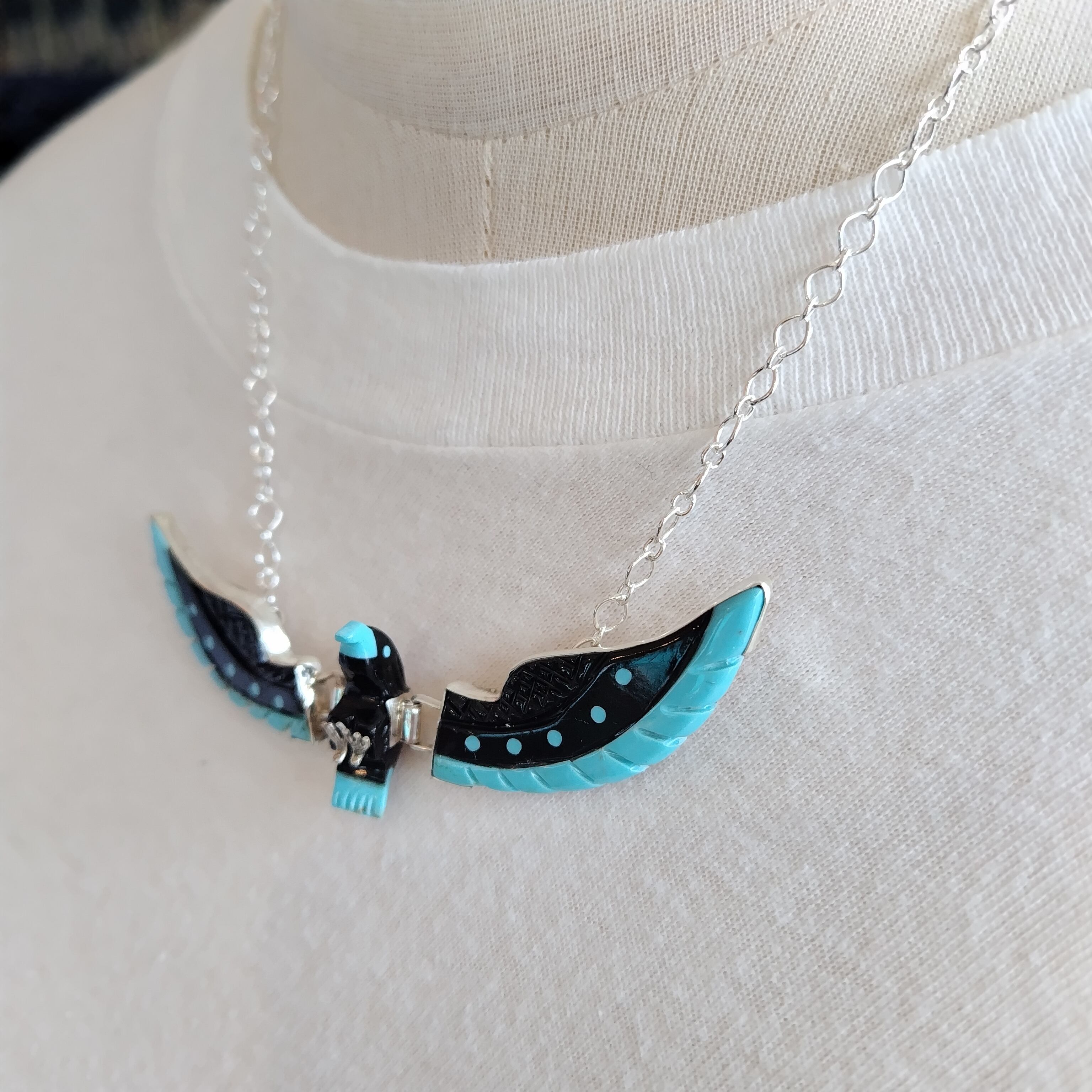 雰囲気最高のナバホ ジェット x ターコイズ イーグルシルバーネックレスになります!