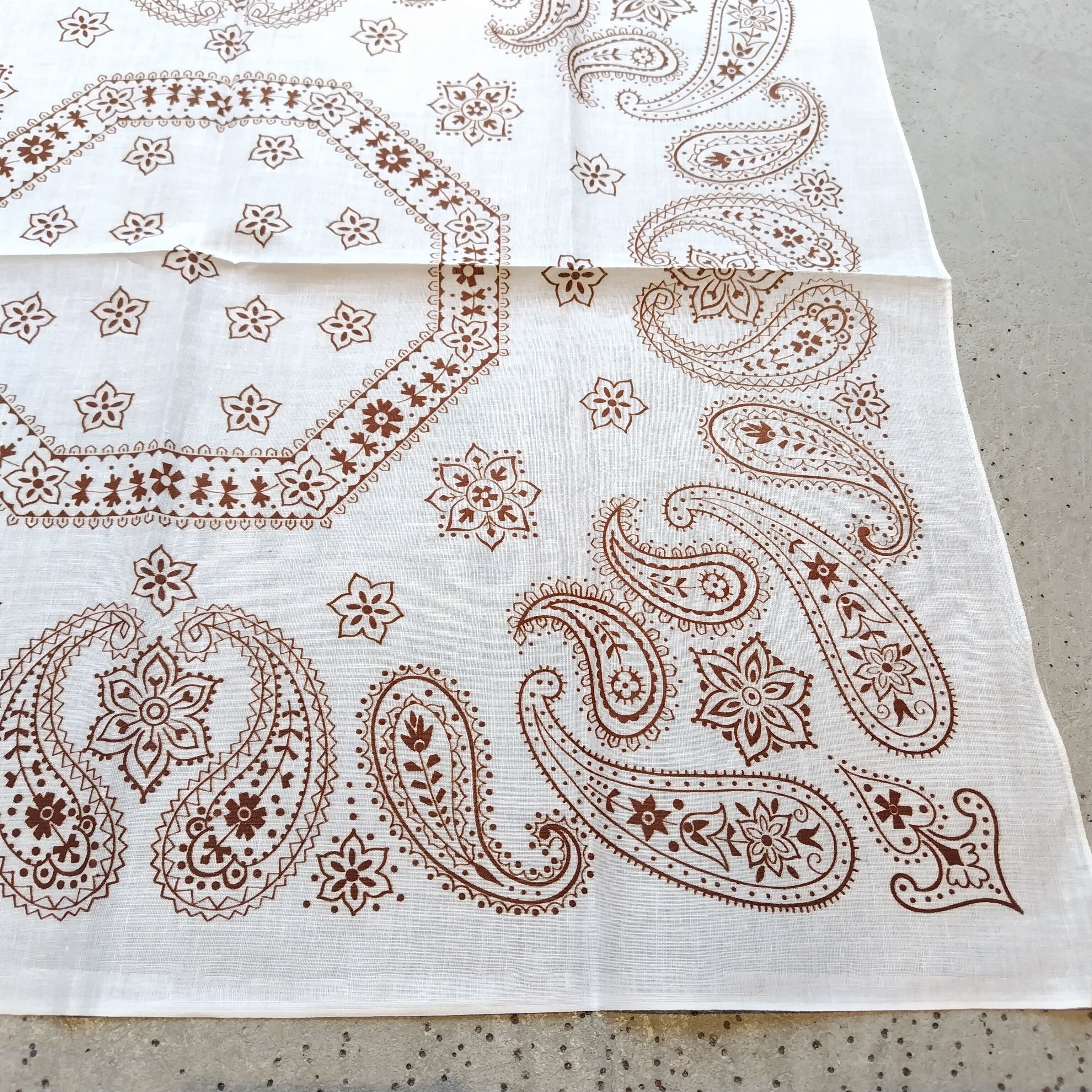 希少 NOS レアカラー ビンテージ エレファントブランド ホワイト x ブラウン バンダナ