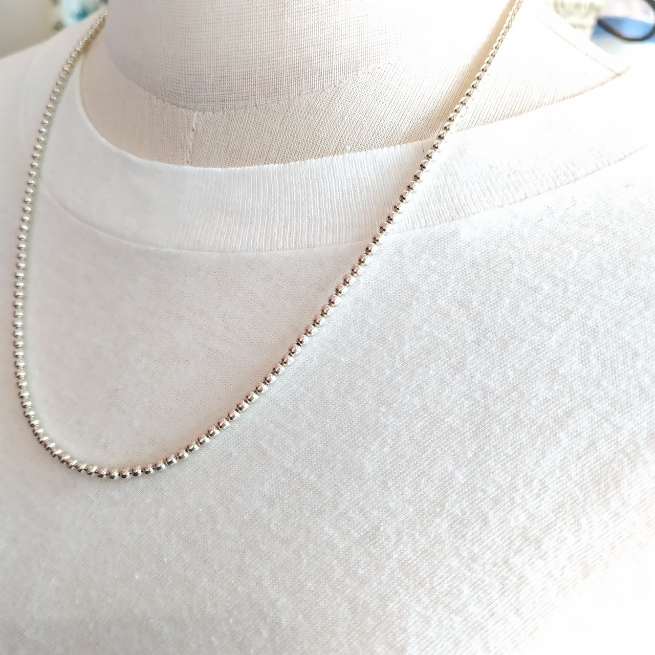 3mm玉 55cm ナバホパール シルバーネックレス インディアンジュエリー