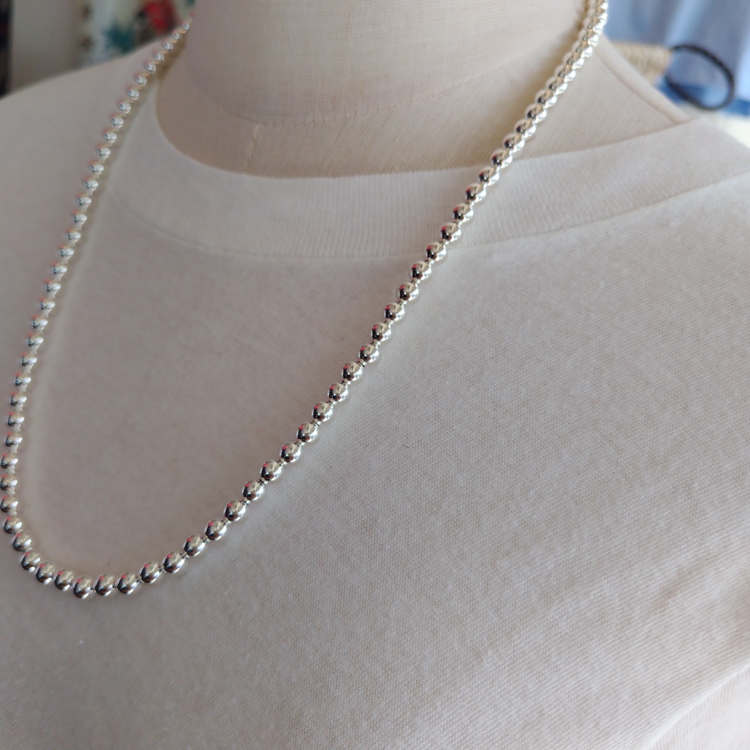 6mm玉 60cm ナバホパール シルバーネックレス インディアンジュエリー