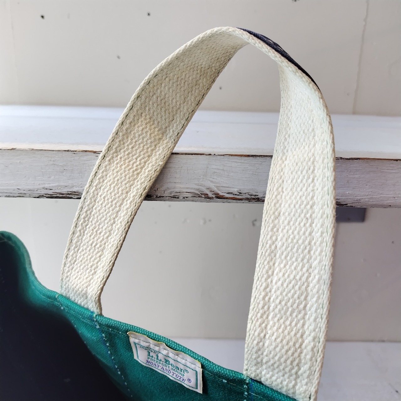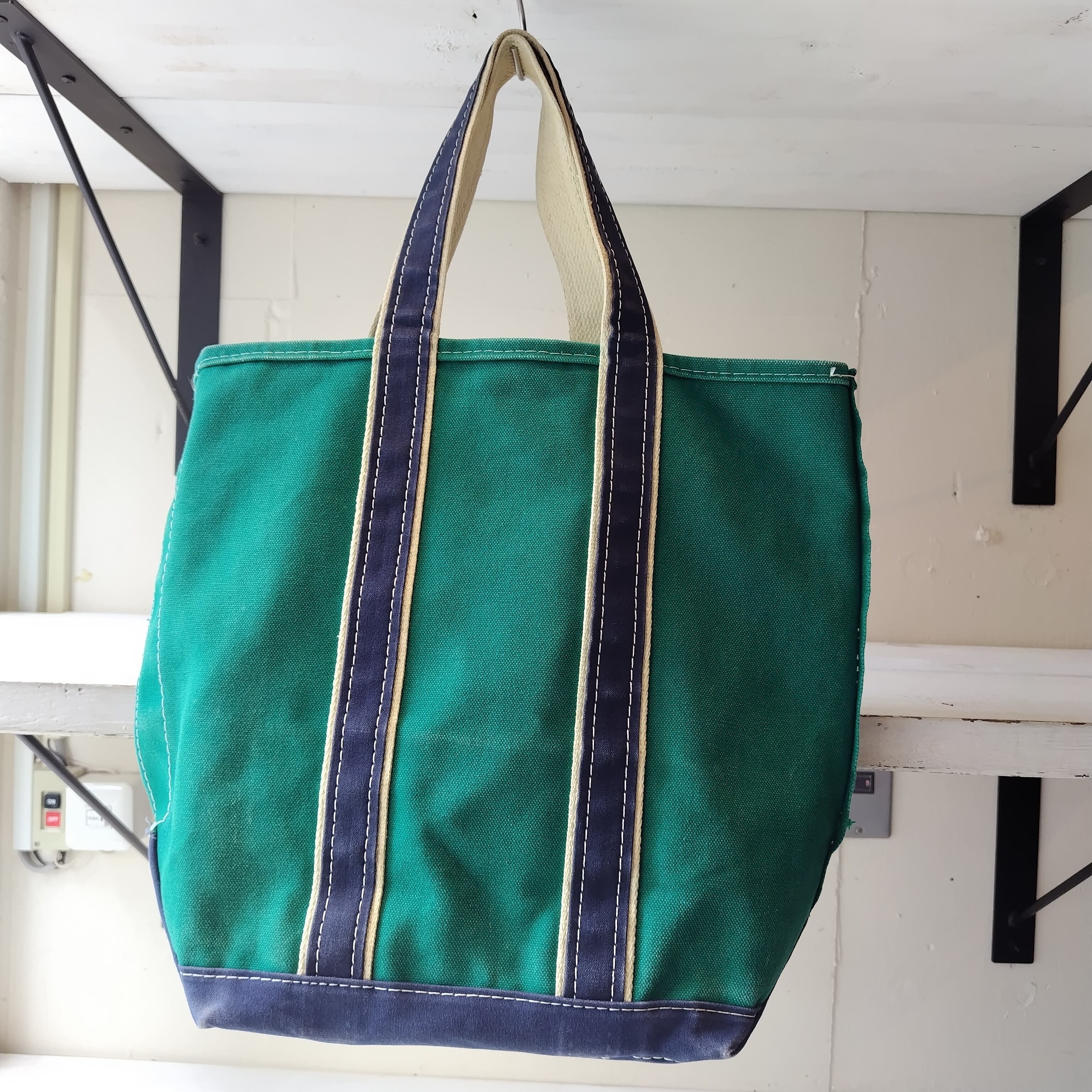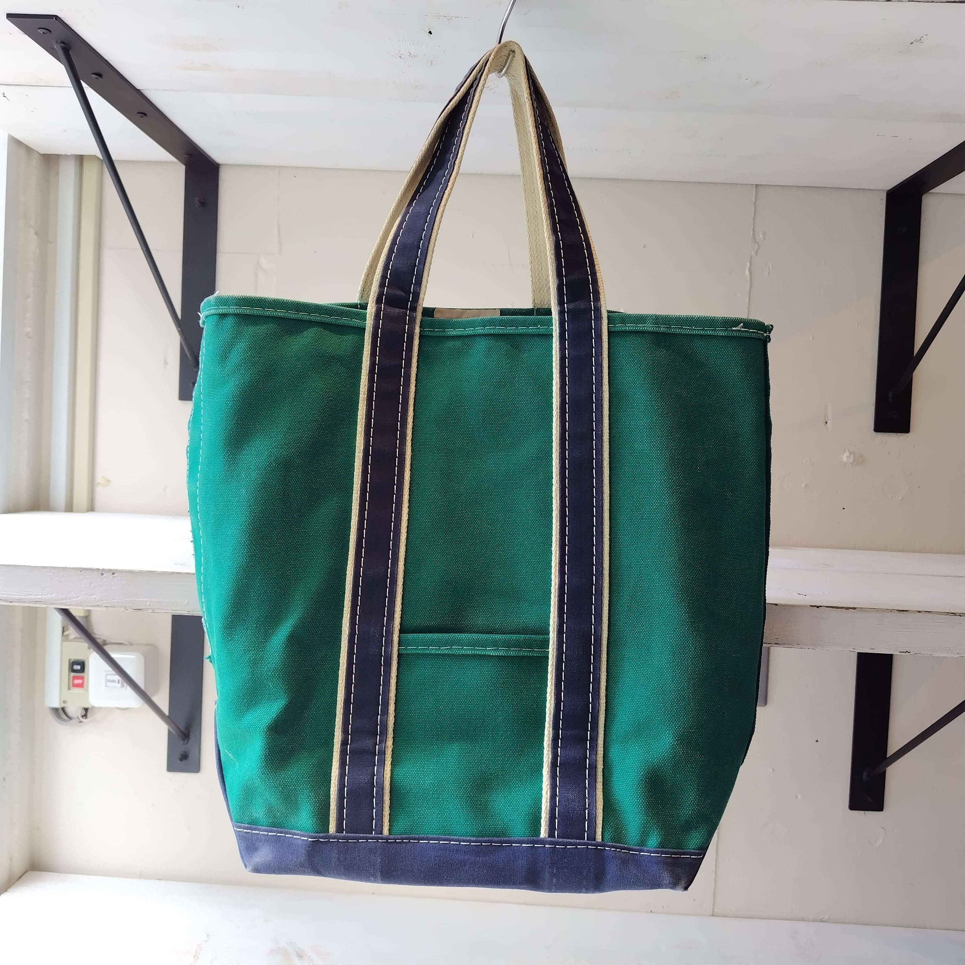 80s L.L.Bean GREEN x NAVY ハンドル デラックストートバッグになります!