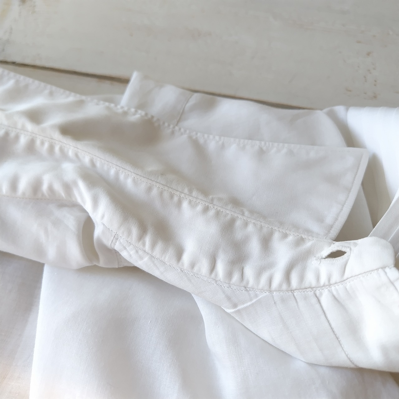 カフス仕様になりますので 一番上のボタン以外はホールのみになります。