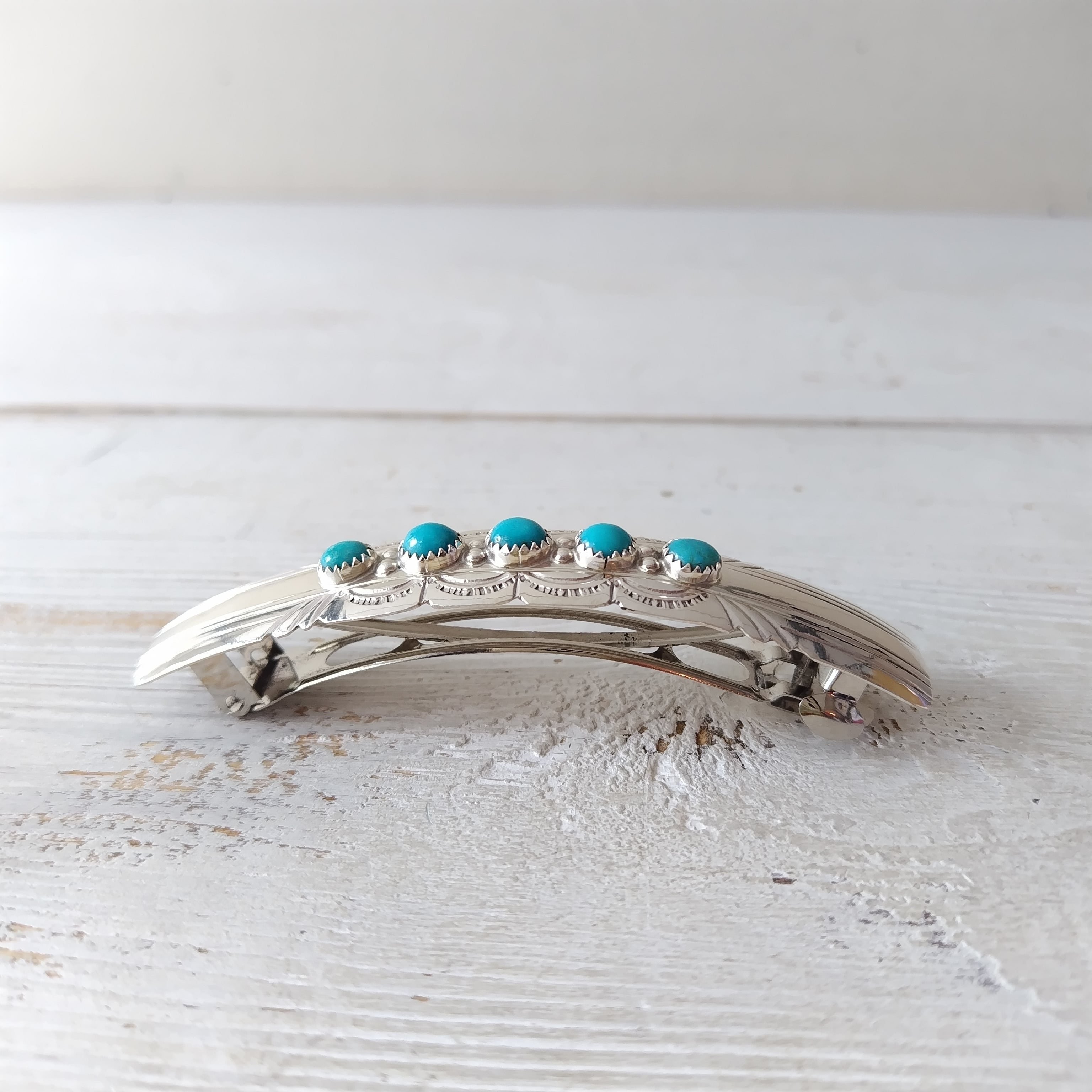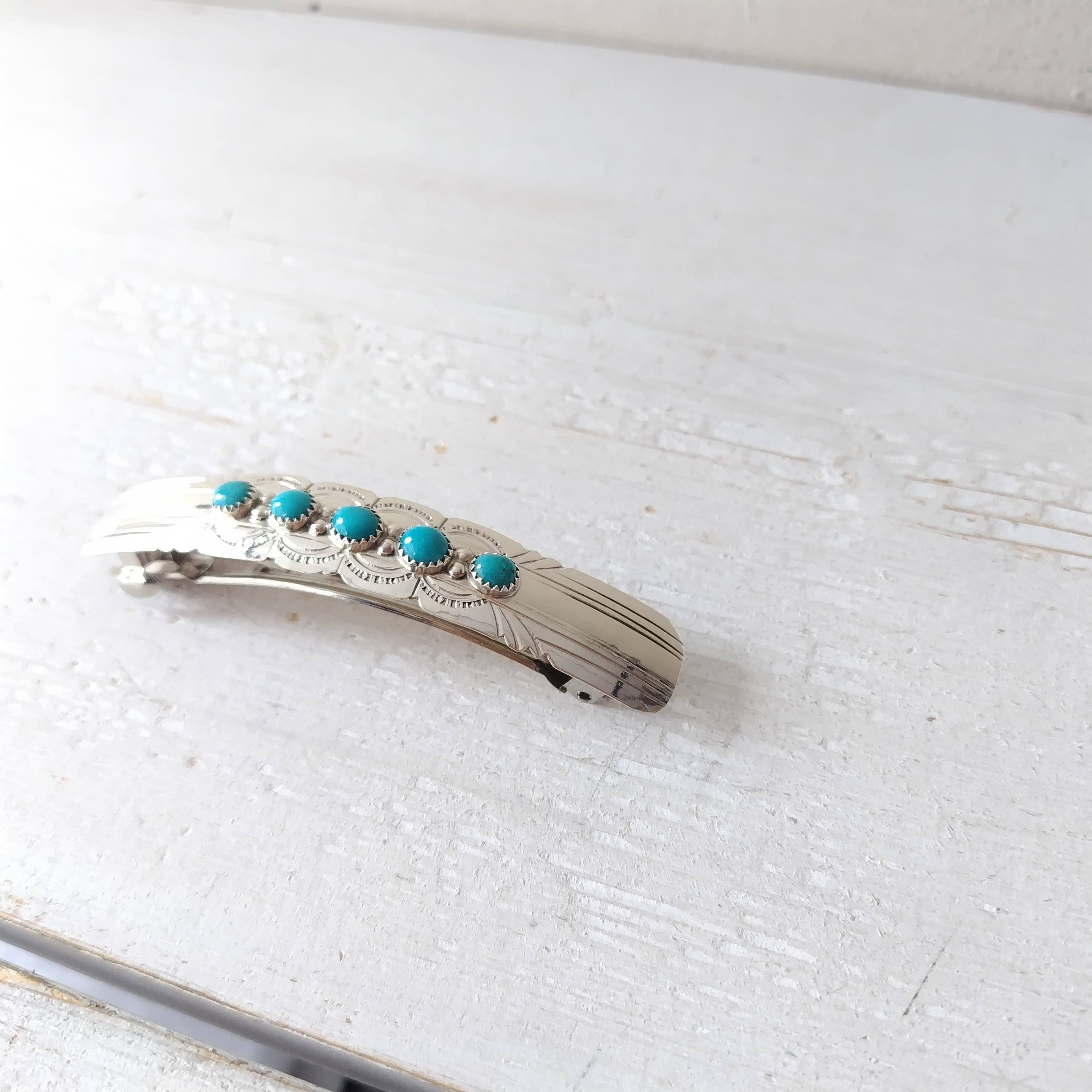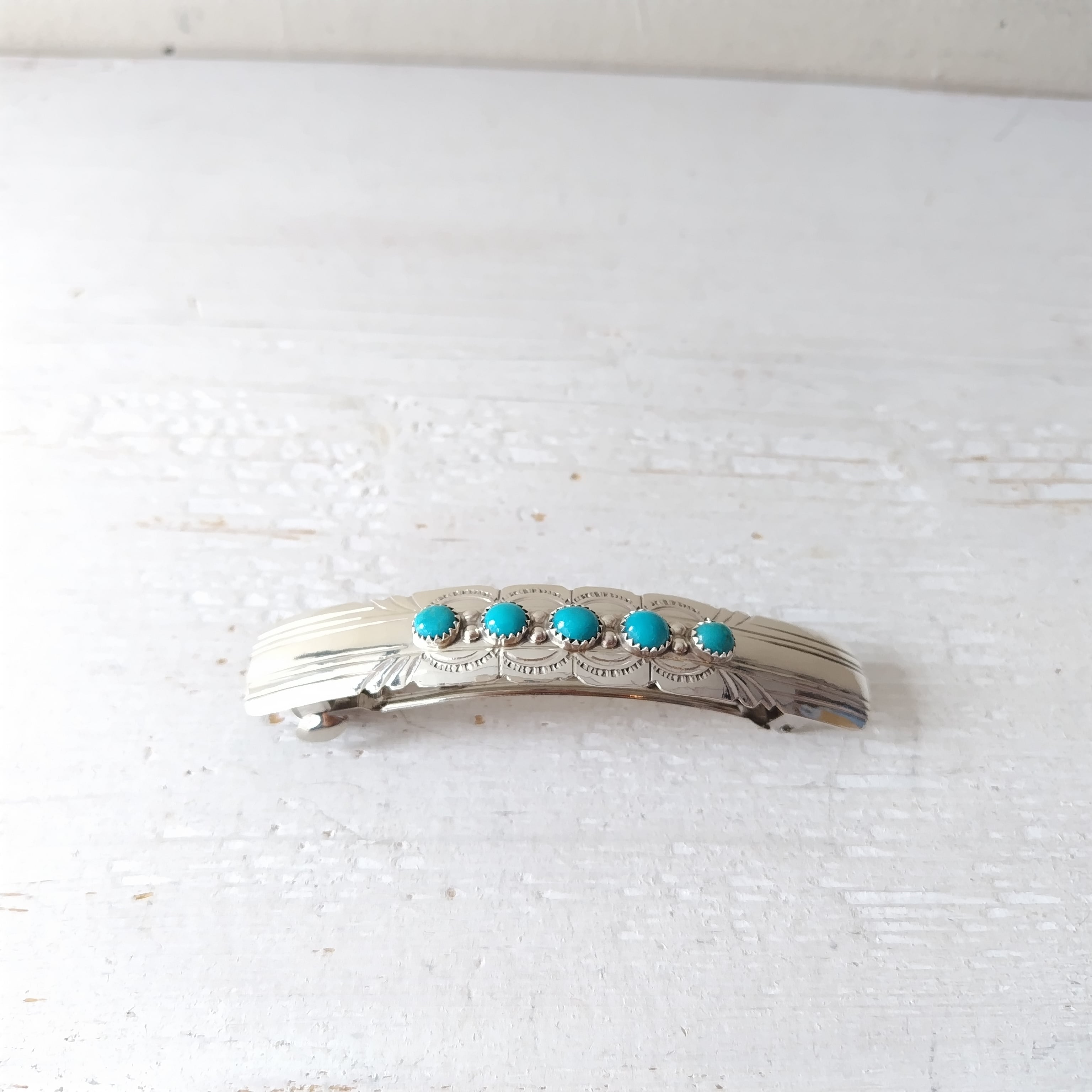 ナバホ ターコイズ シルバーバレッタ インディアンジュエリー