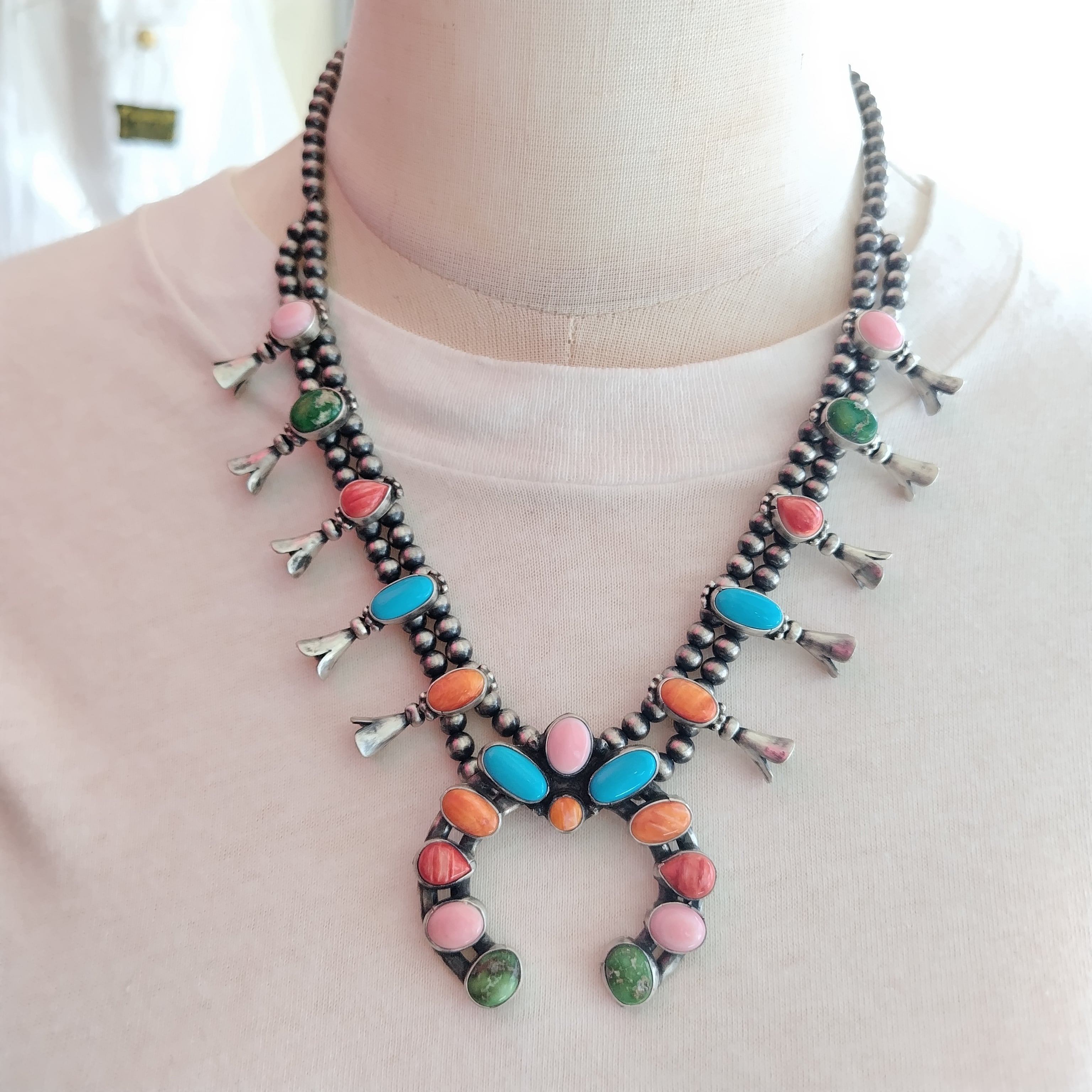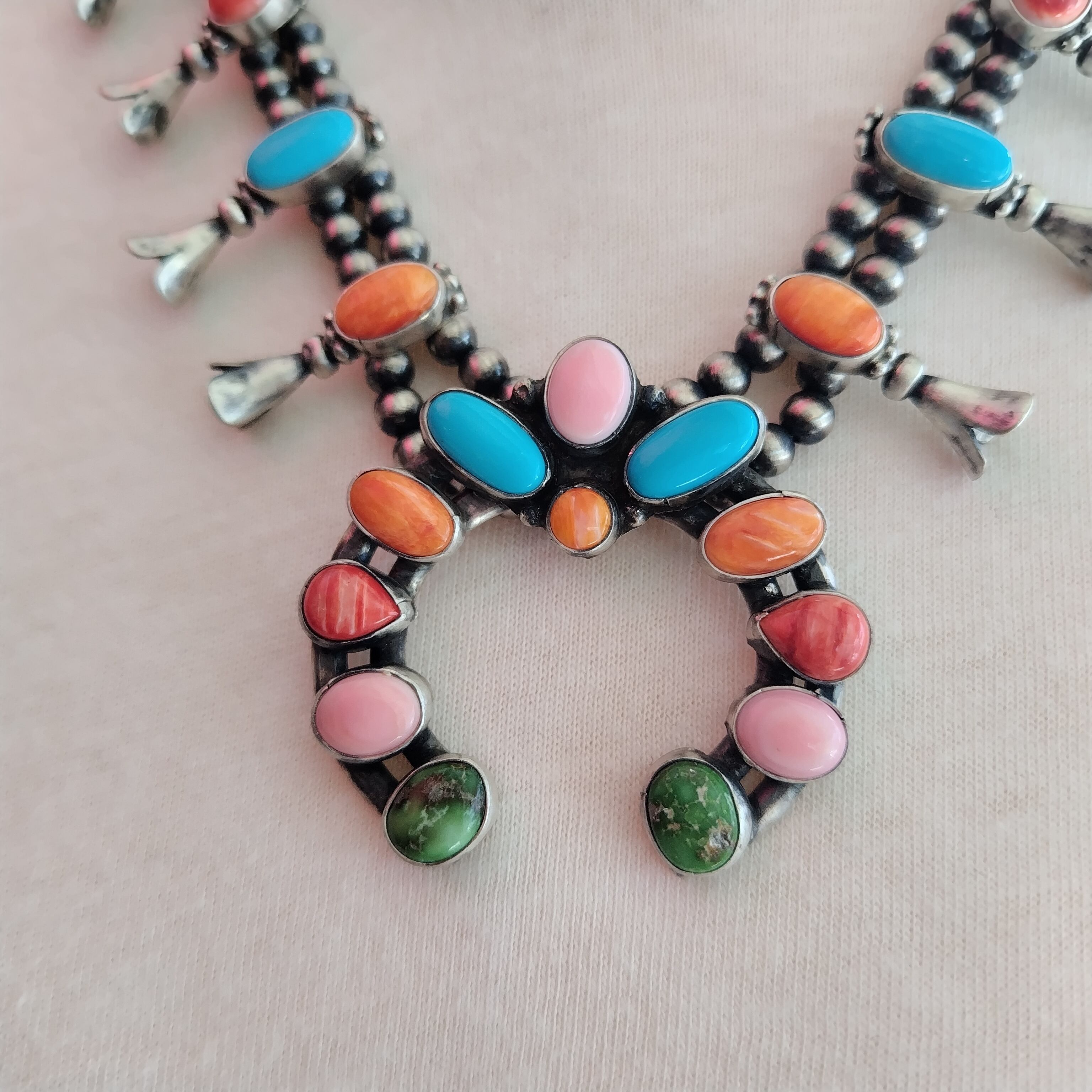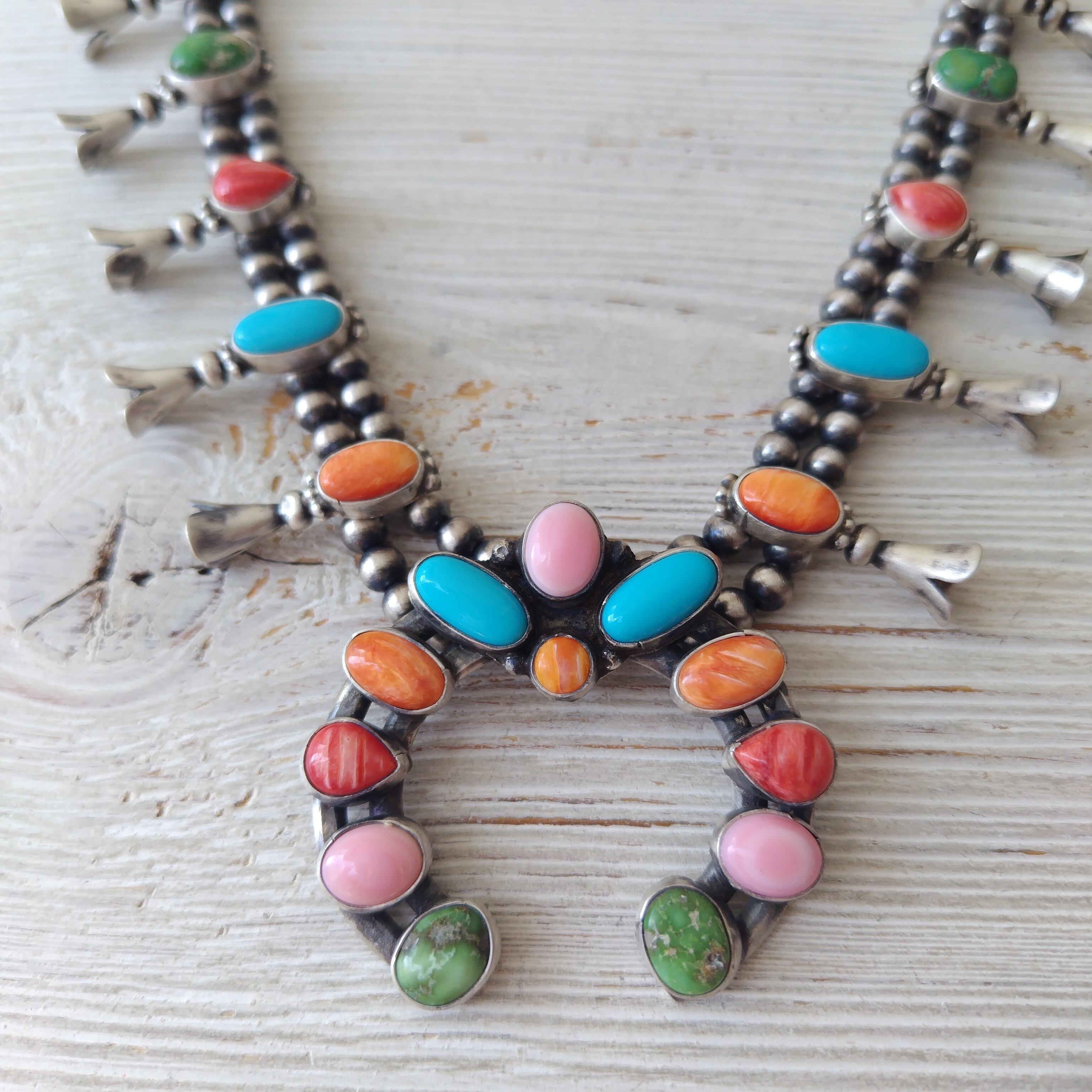 ナバホ ナジャ ターコイズ ピンクコンクシェル スパイニーオイスターシェル ミックス シルバー ネックレスになります!