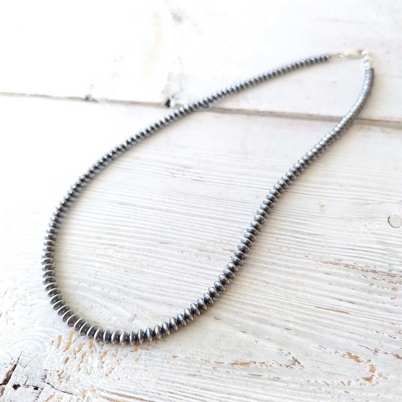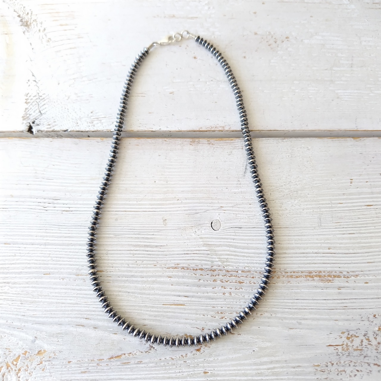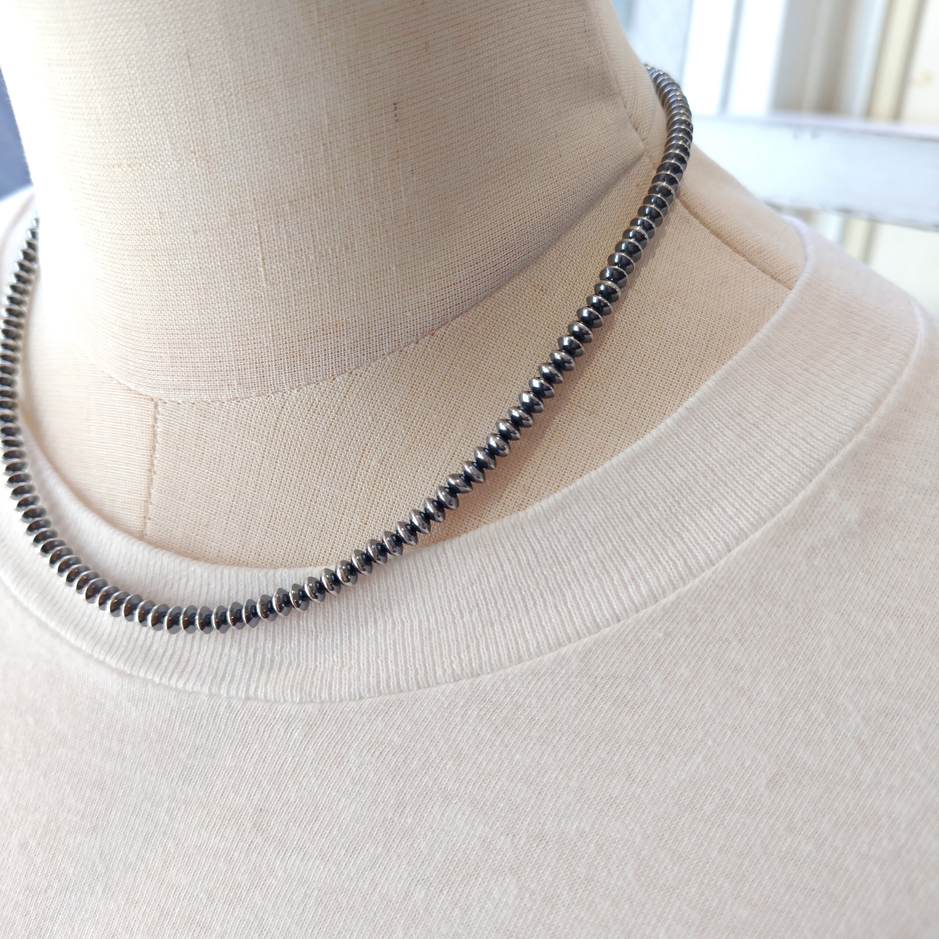 5mm玉 45cm ナバホ そろばん玉 燻 シルバーネックレス インディアンジュエリー