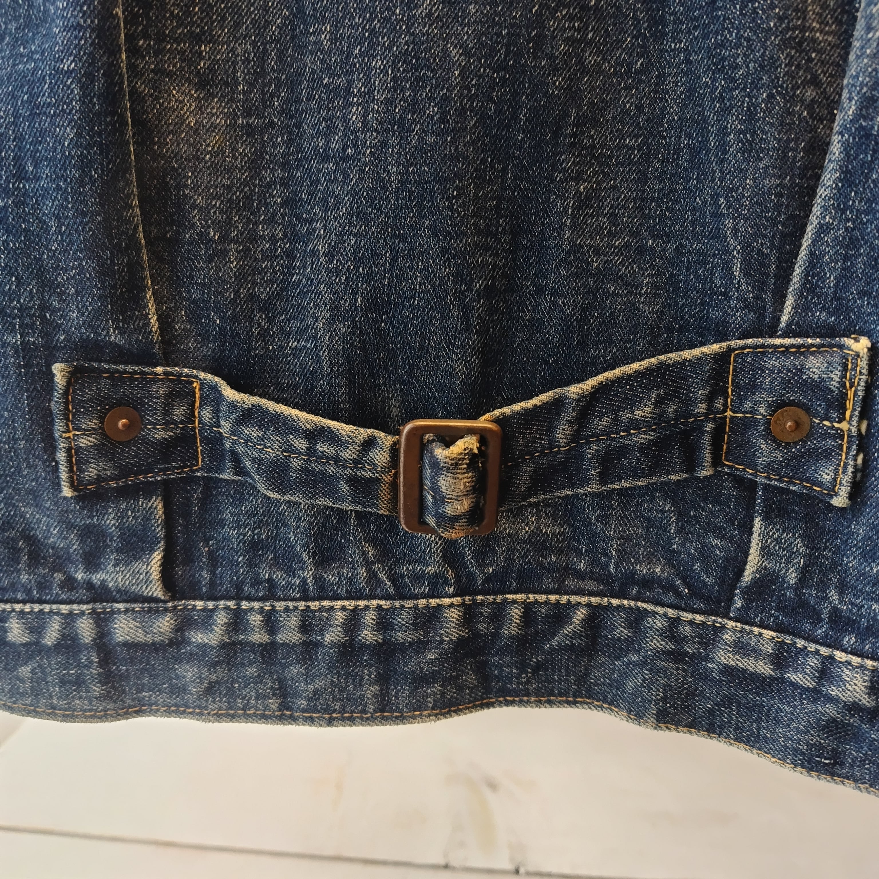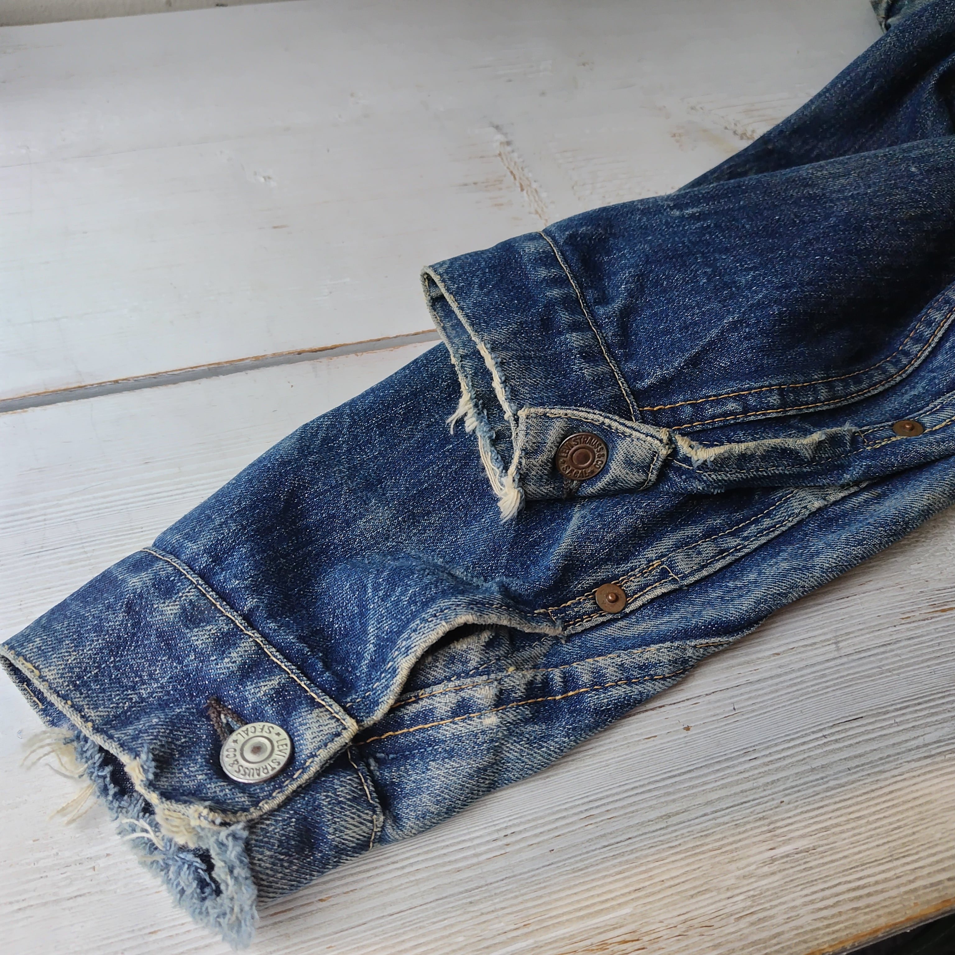 洗いこんだ感、フロントボックスステッチのほつれ、両袖口にダメージ、襟にダメージがございますが雰囲気とレア度が間違いなく勝ってるかと思います!!