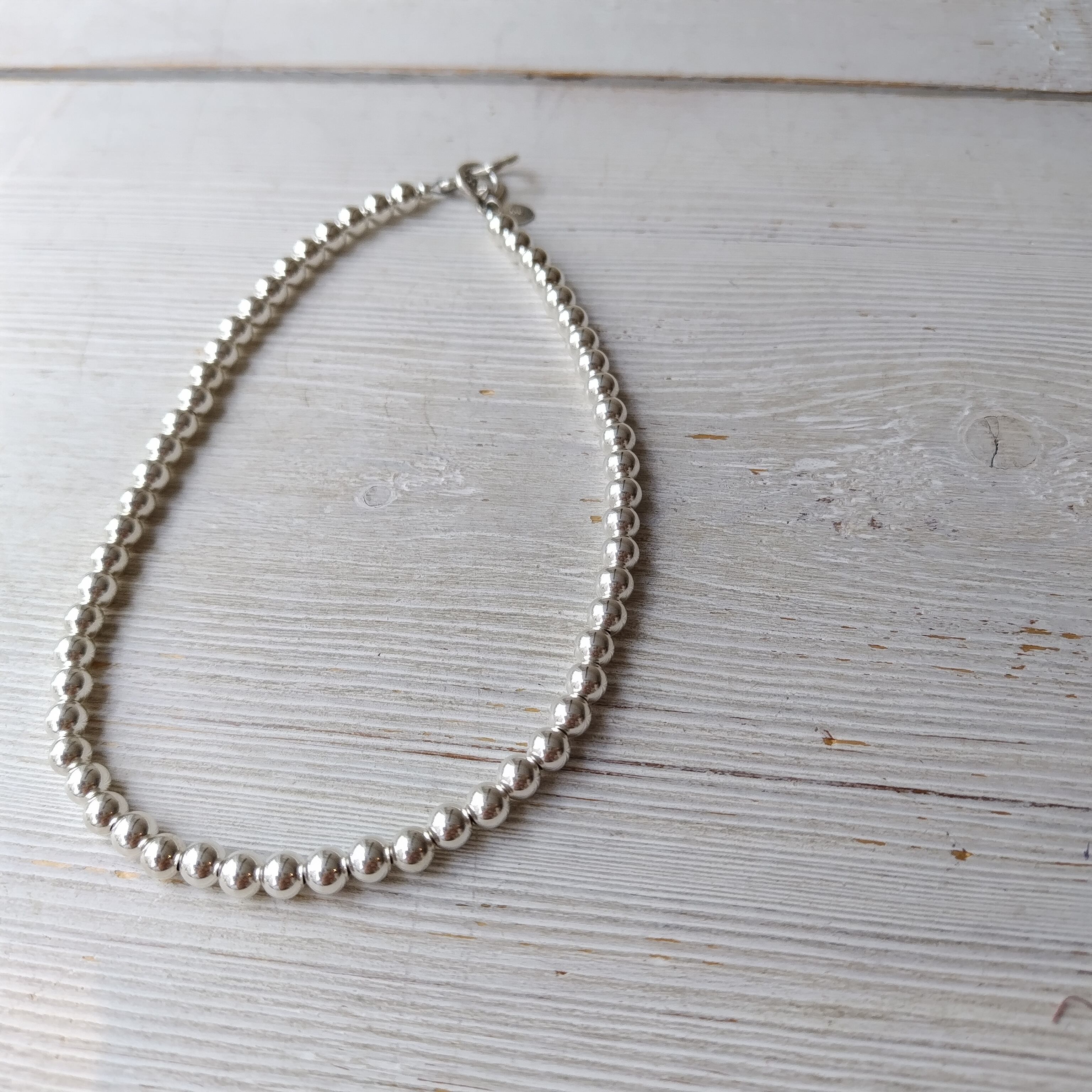 6mm玉 35cm ナバホパール シルバーネックレス インディアンジュエリー