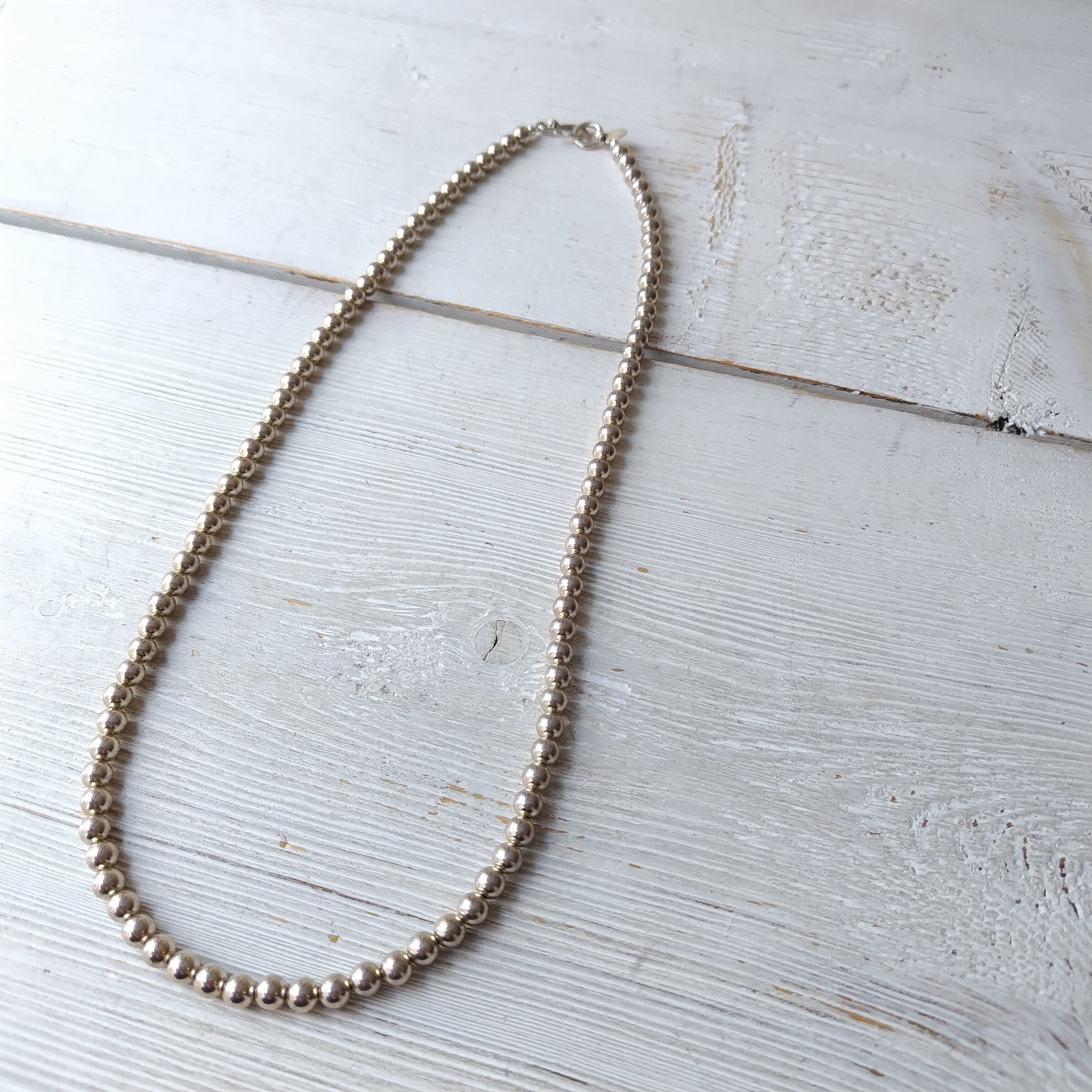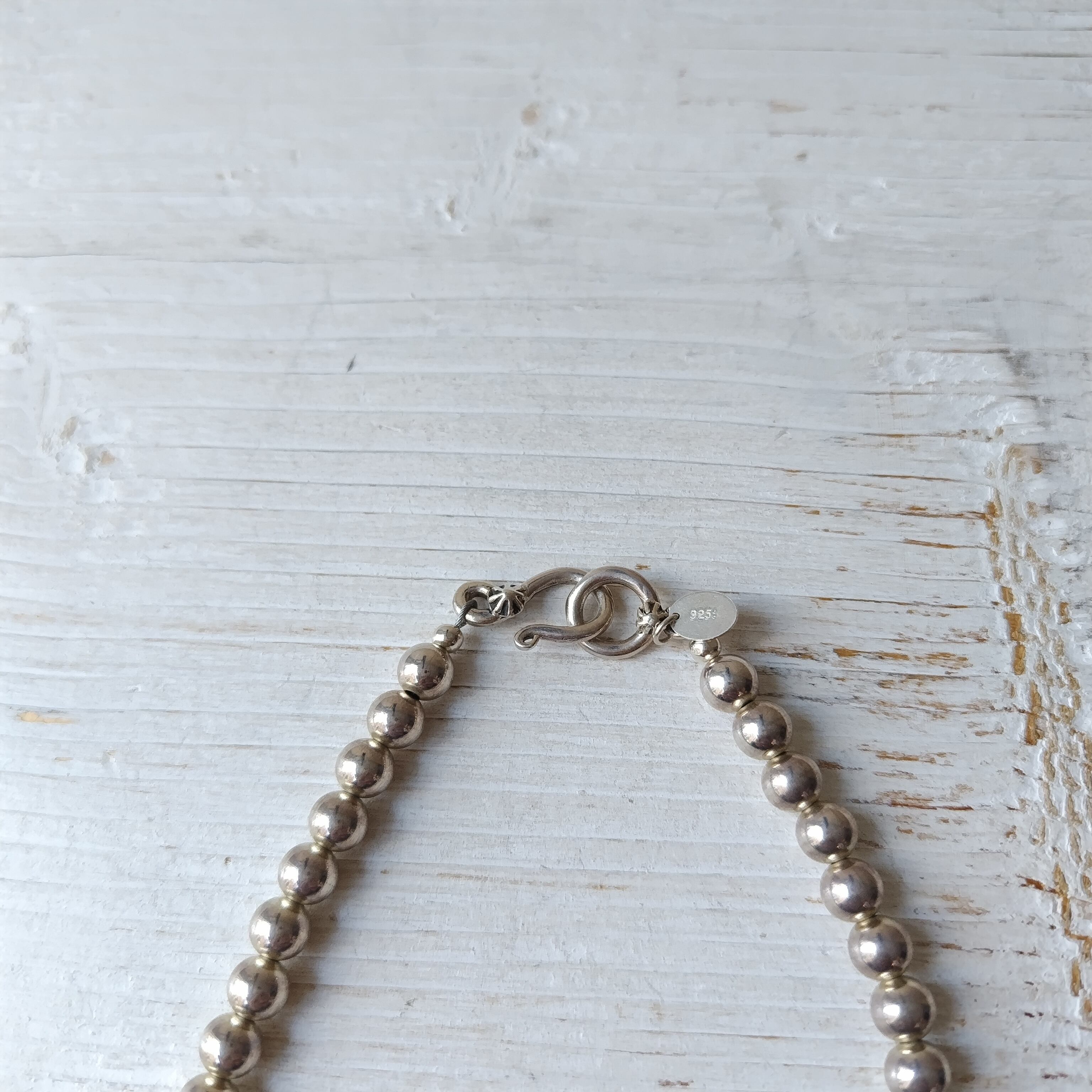 6mm玉 60cm ナバホパール シルバーネックレス インディアンジュエリー