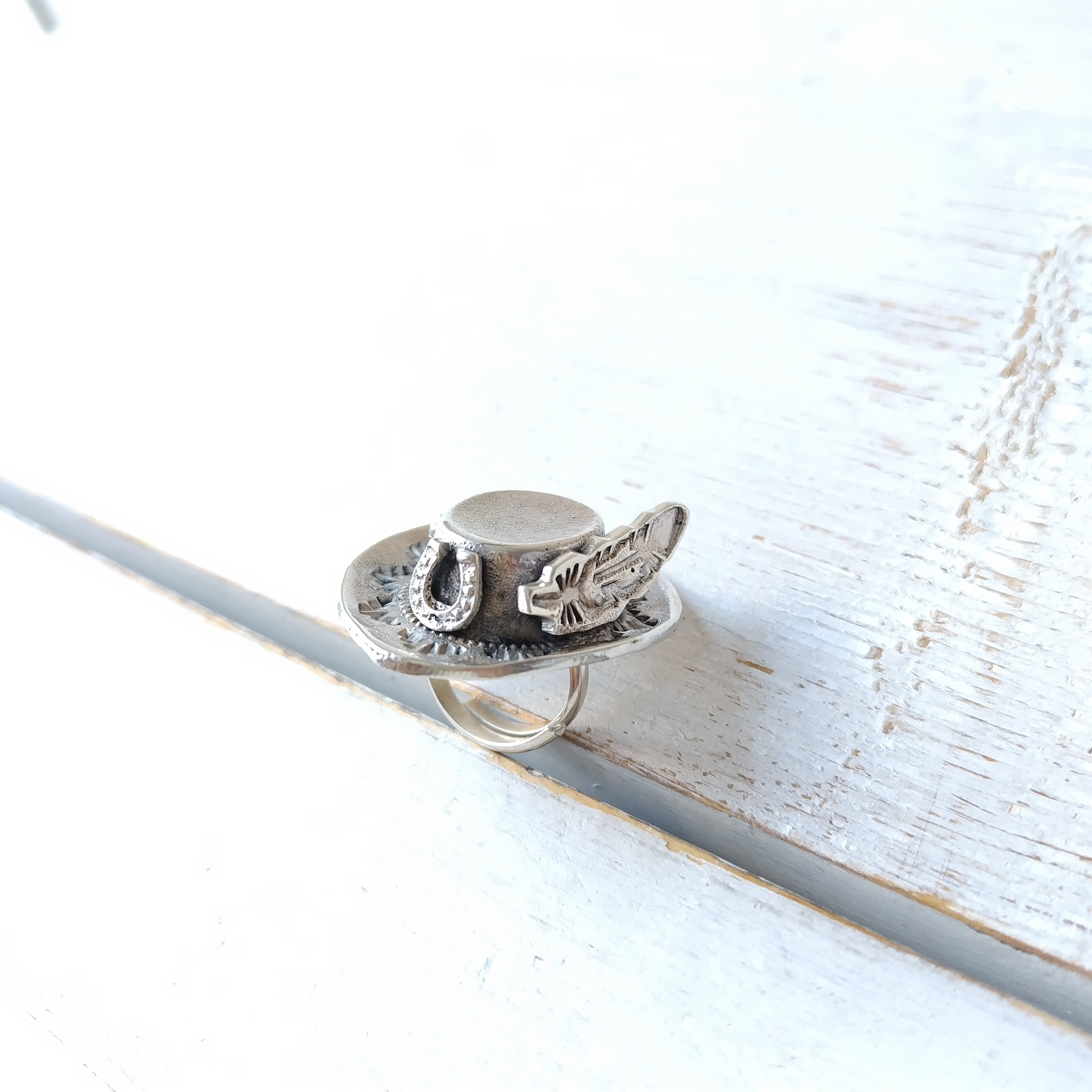 素晴らしいデザインの ナバホ ウエスタンハット シルバーリングになります!