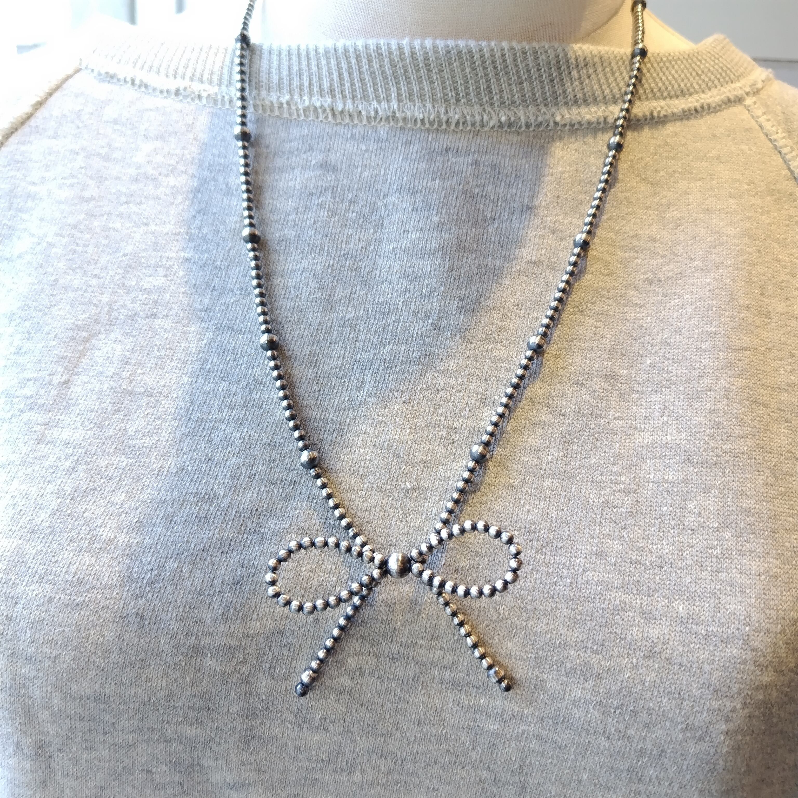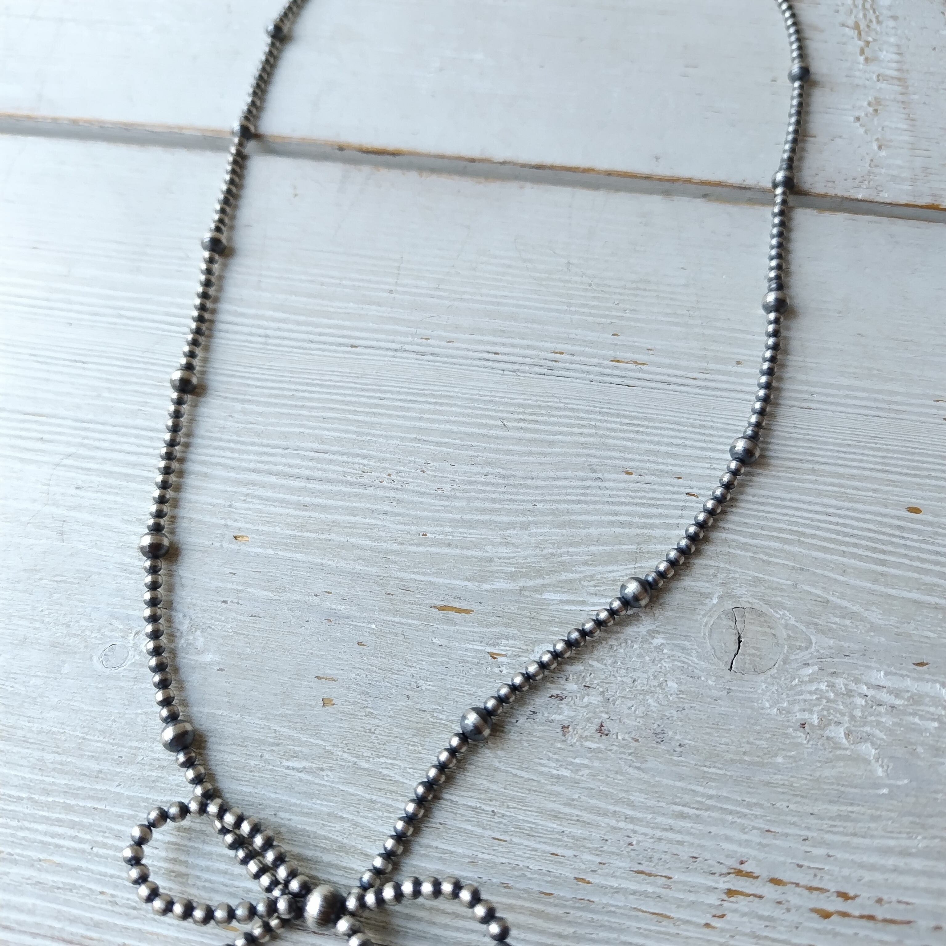 リボン ナバホパール シャイニー x 燻 シルバーネックレス インディアンジュエリー