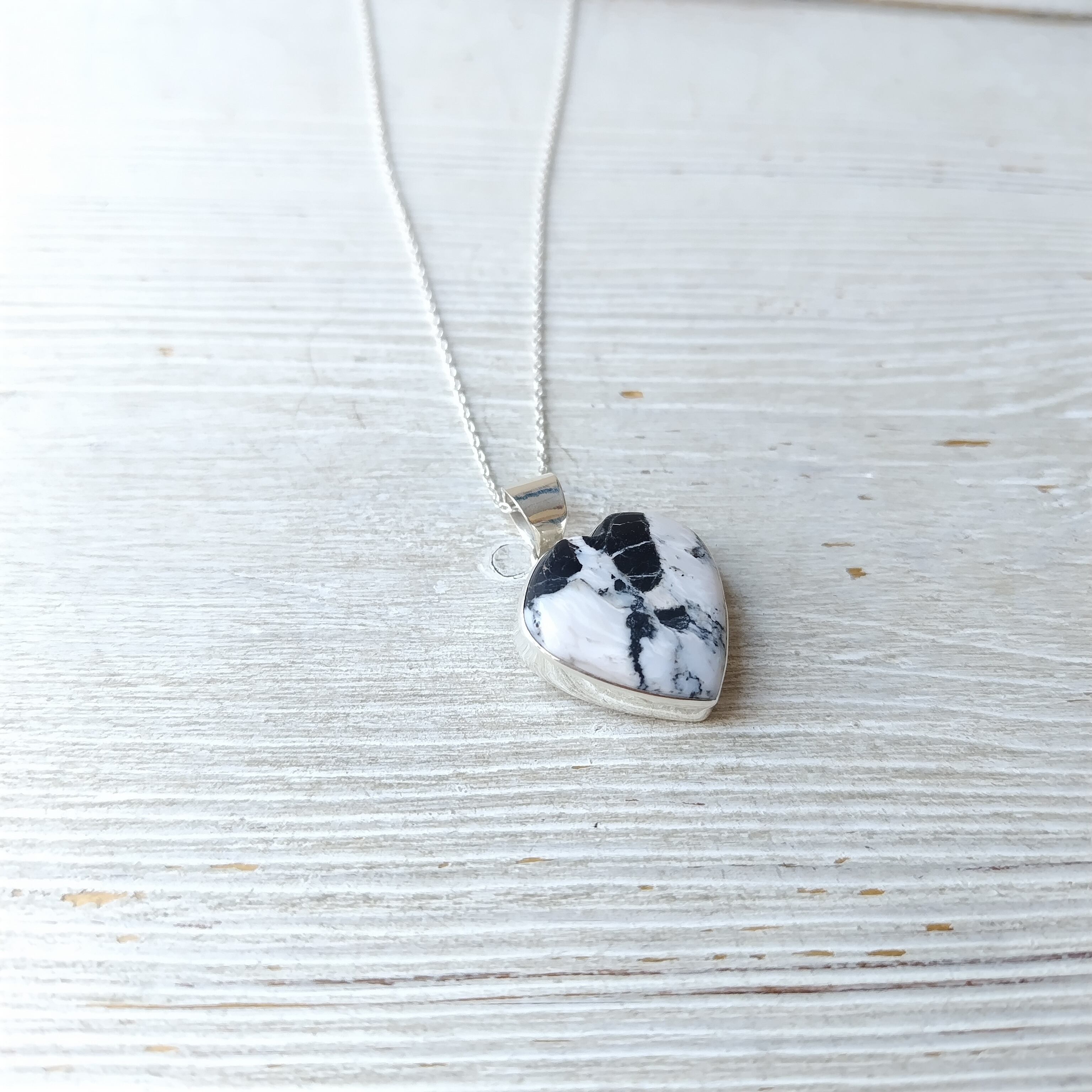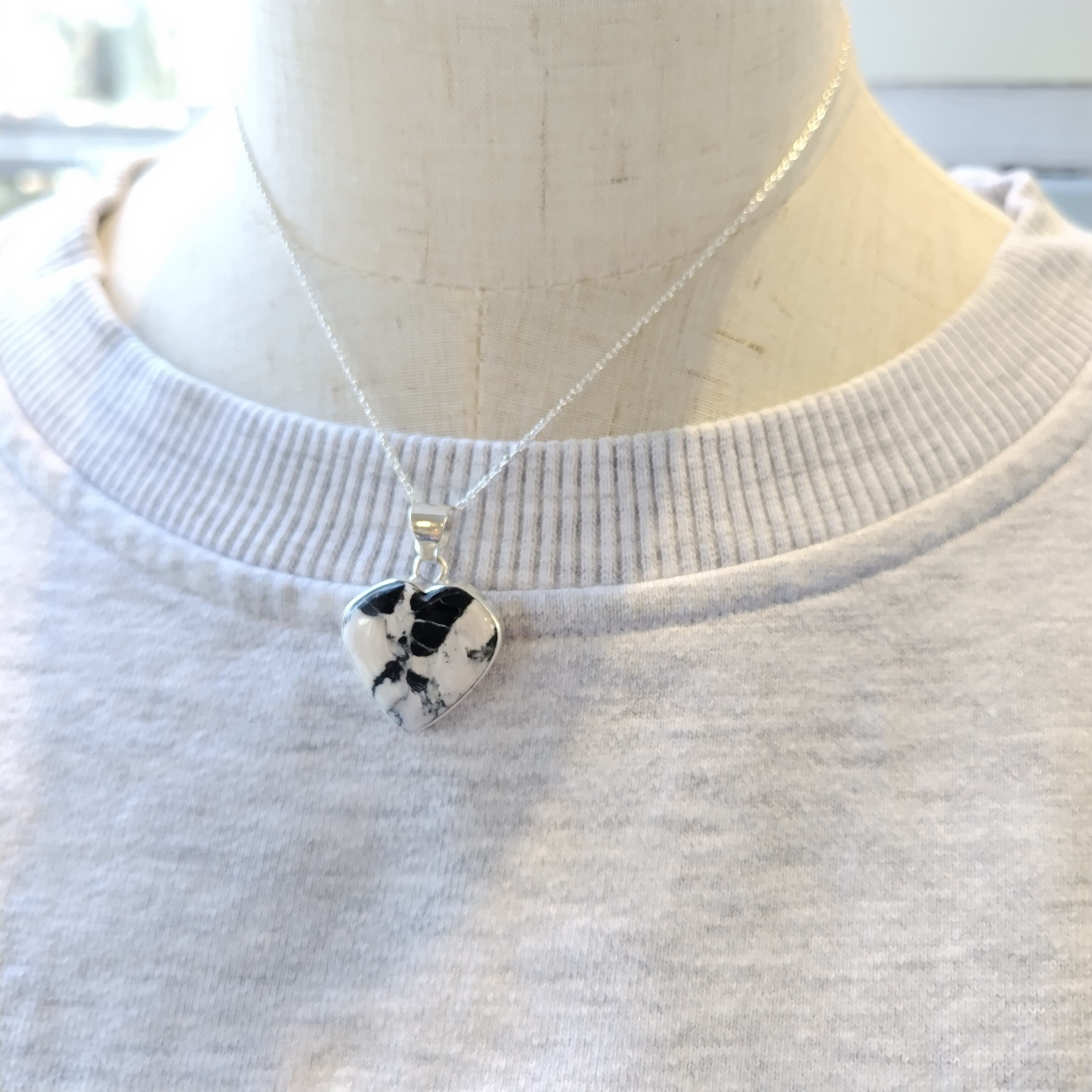 ナバホ ホワイトバッファロー ハート シルバーネックレス インディアンジュエリー 40cm チェーン付