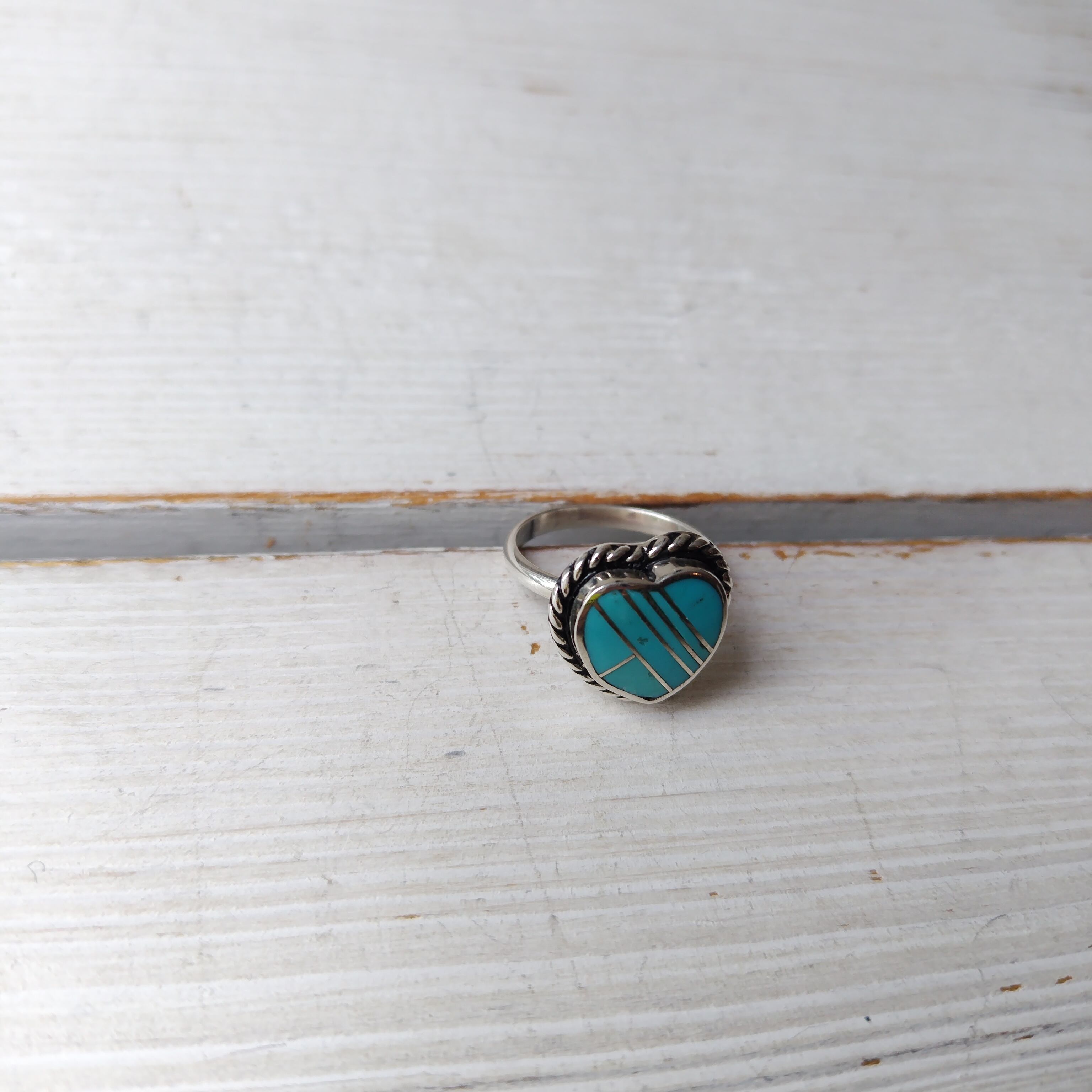 ナバホ ハートターコイズ シルバーリング 10号 インディアンジュエリー