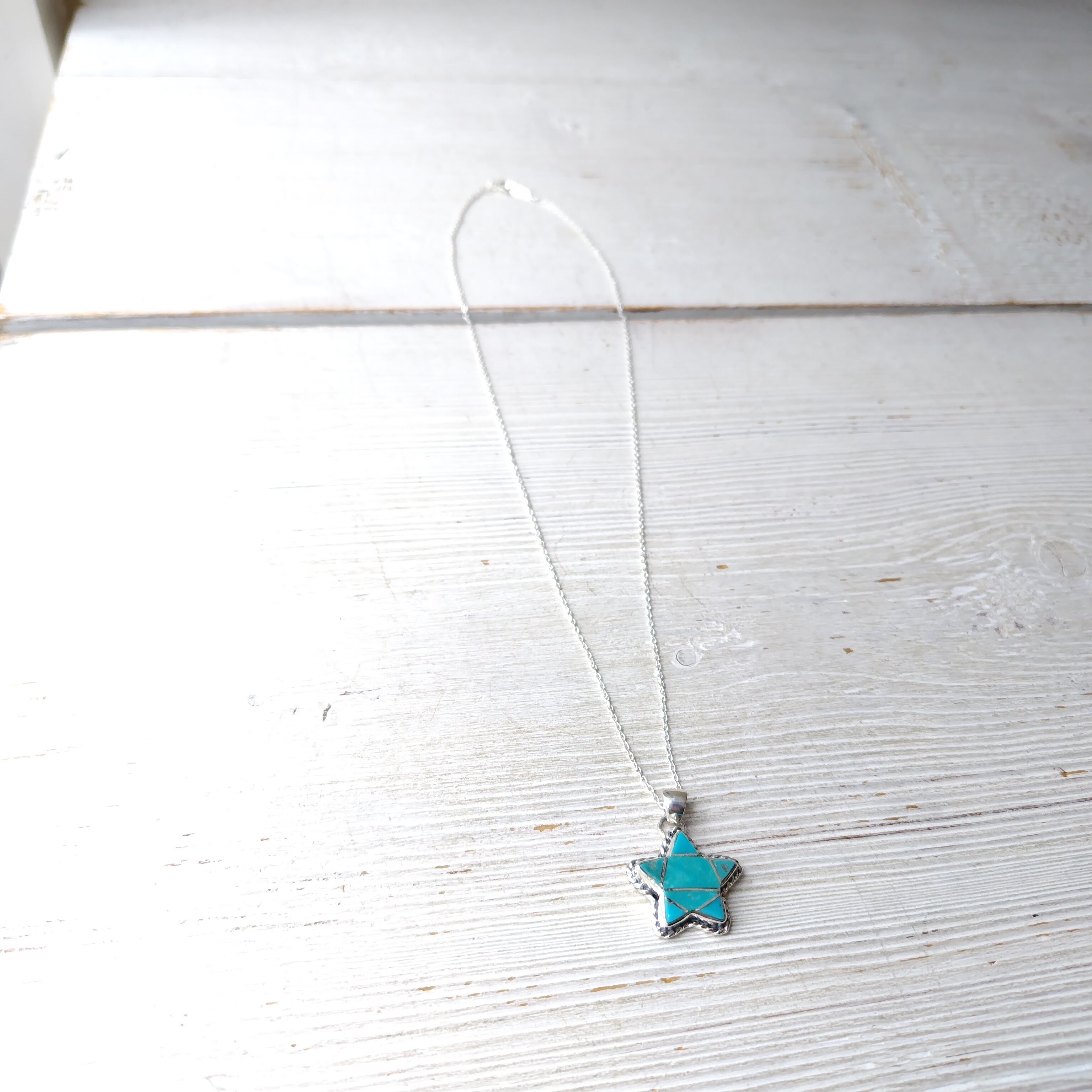 素晴らしいデザインの ナバホ スターターコイズ シルバー ネックレスになります!