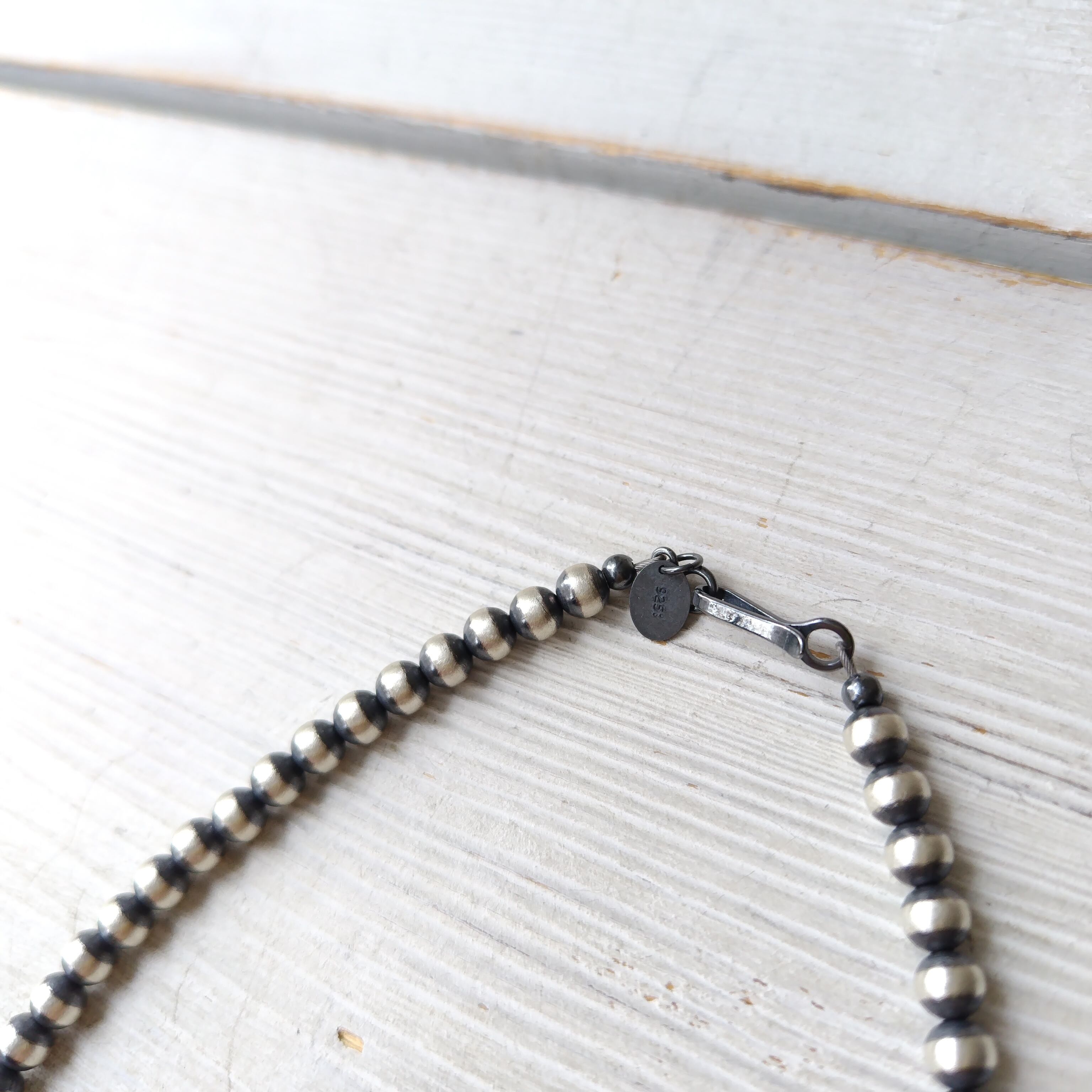 5mm玉 35cm ナバホパール シャイニー x 燻 シルバーネックレス インディアンジュエリー