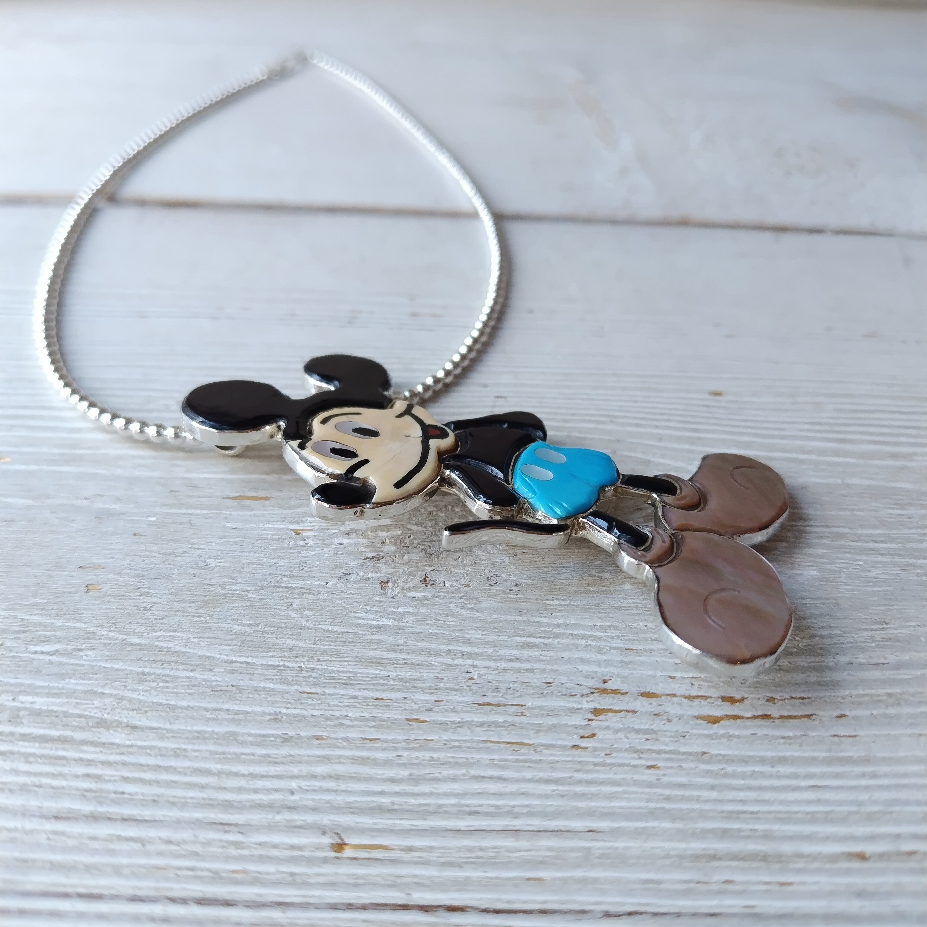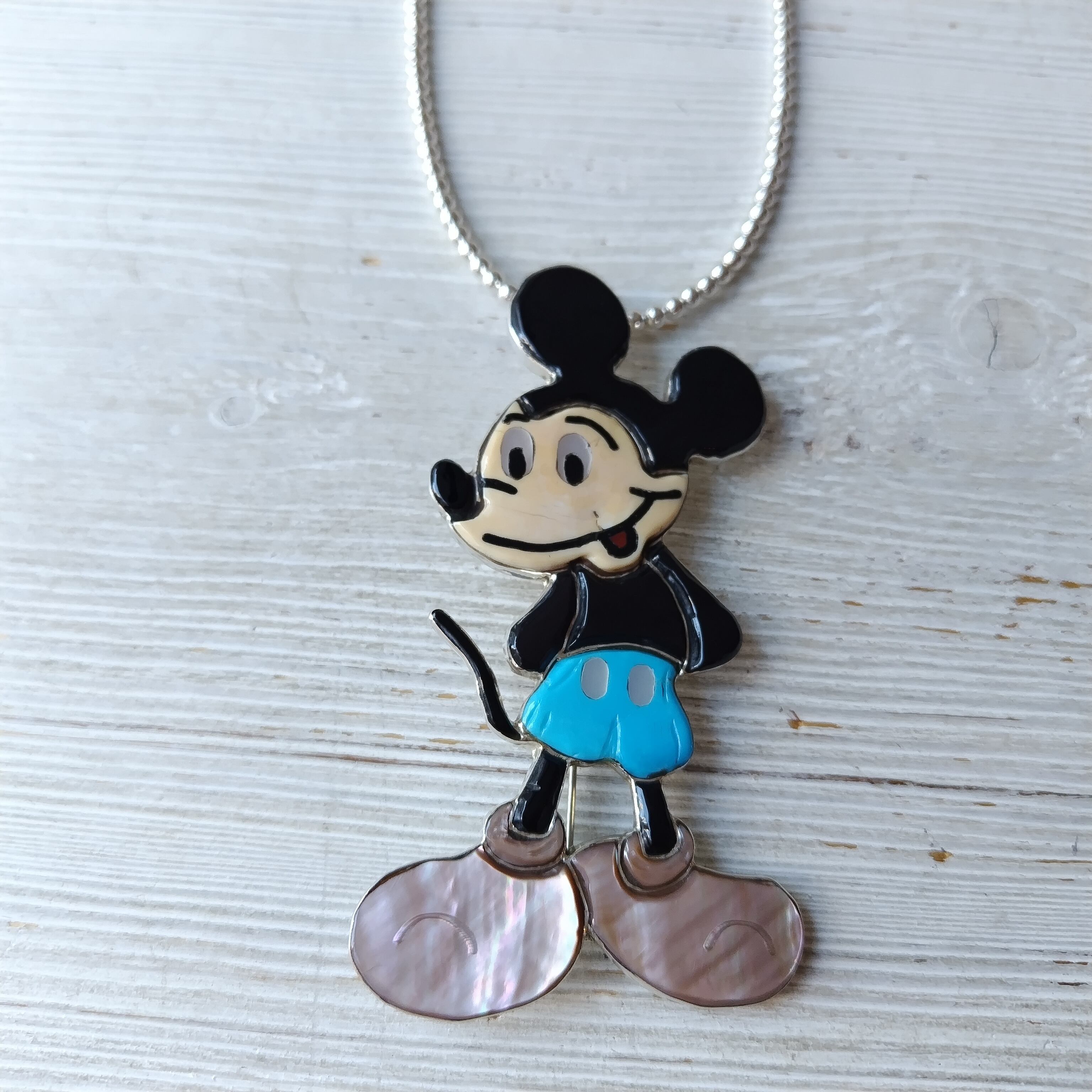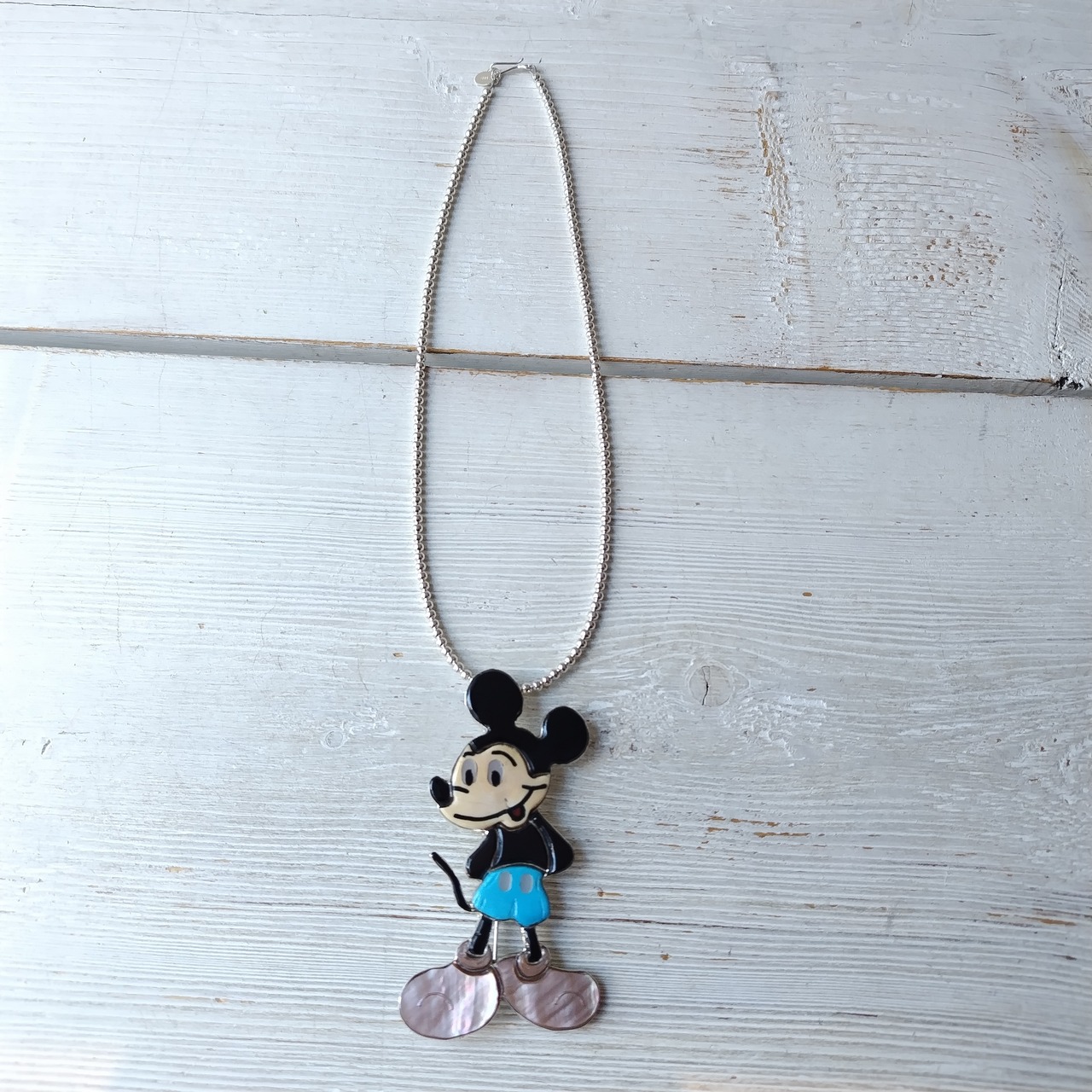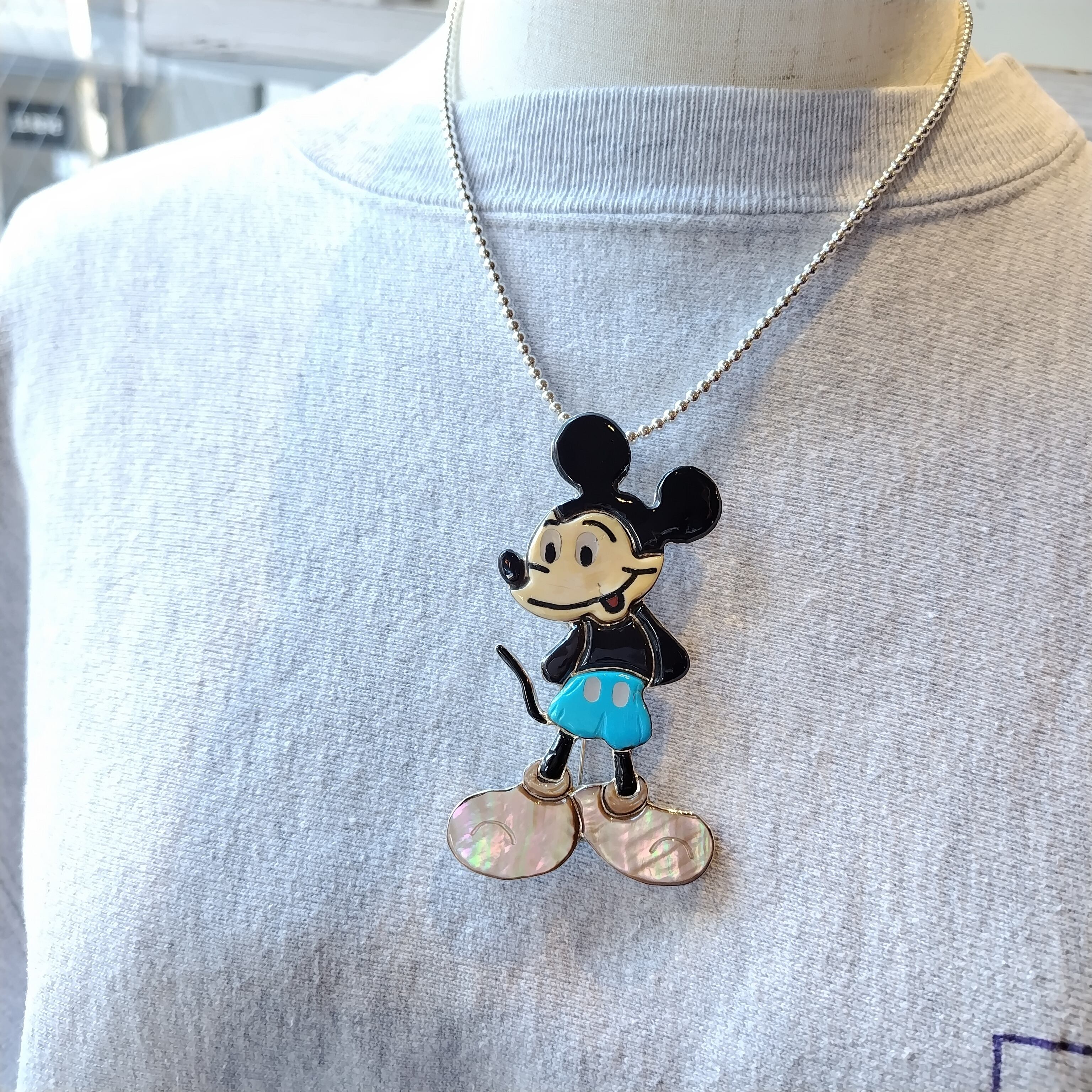 ZUNI Andrea Lonjose インレイ シルバートップ + ブローチ x ナバホパール シルバーネックレス 3mm 玉 45cm インディアンジュエリー