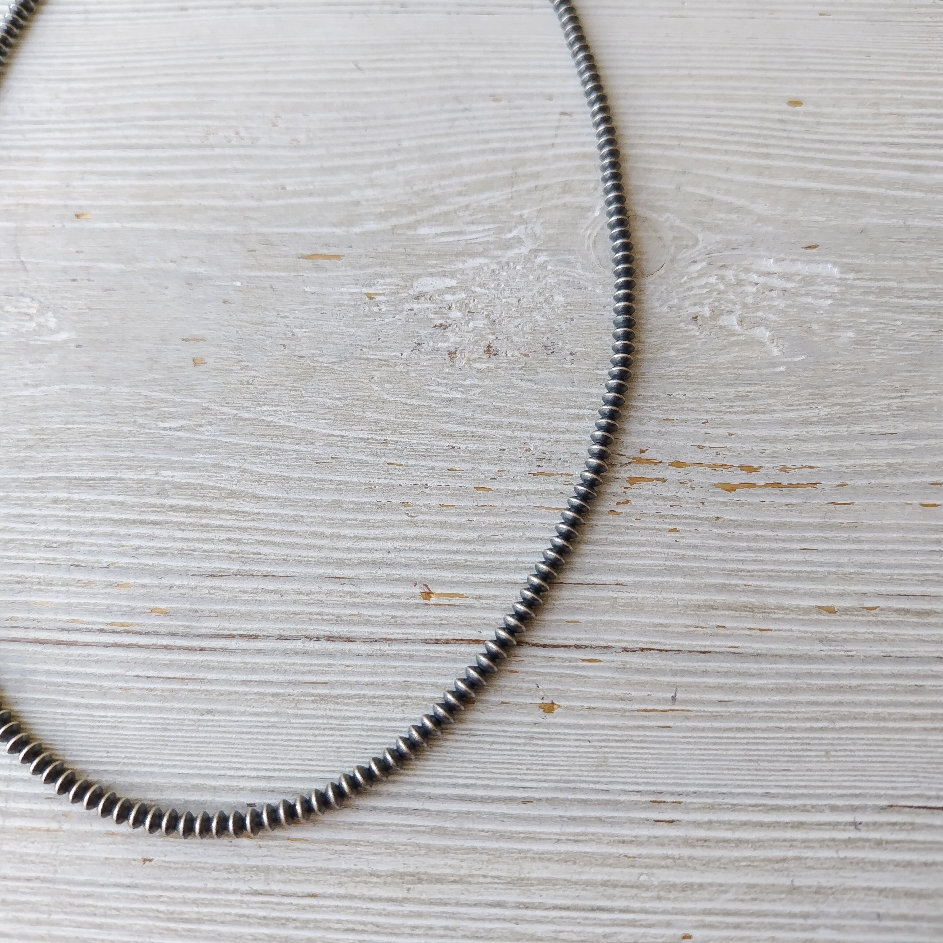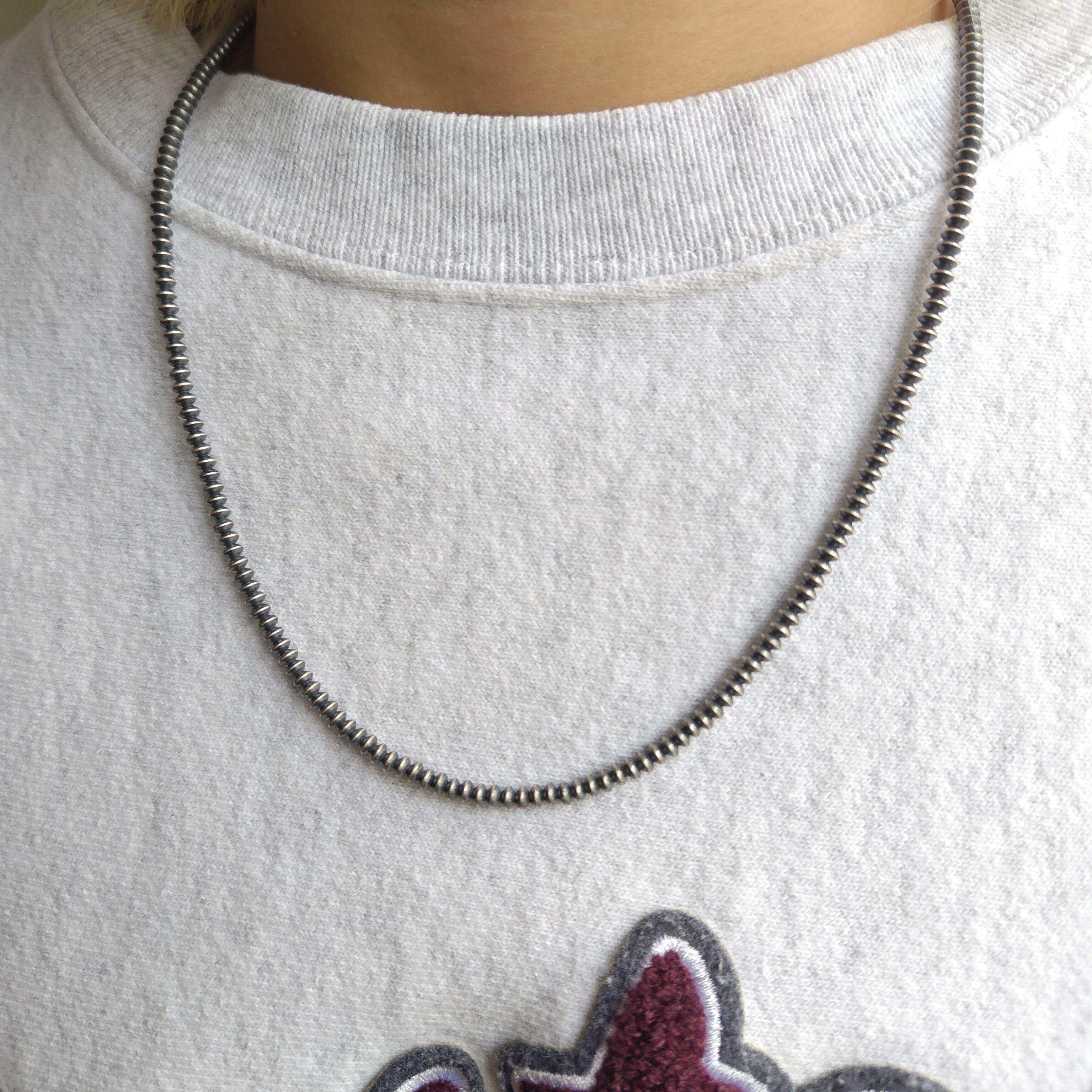 3mm玉 50cm ナバホ そろばん玉 燻 シルバーネックレス インディアンジュエリー